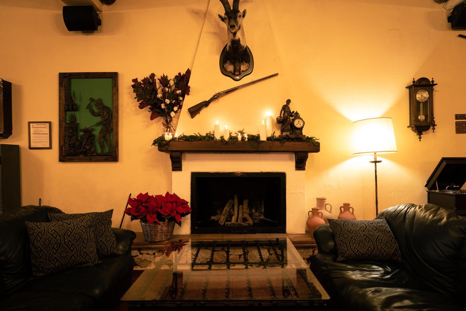 El entorno natural, los espacios interiores con chimenea, sillones. El patio central. La decoracion.
