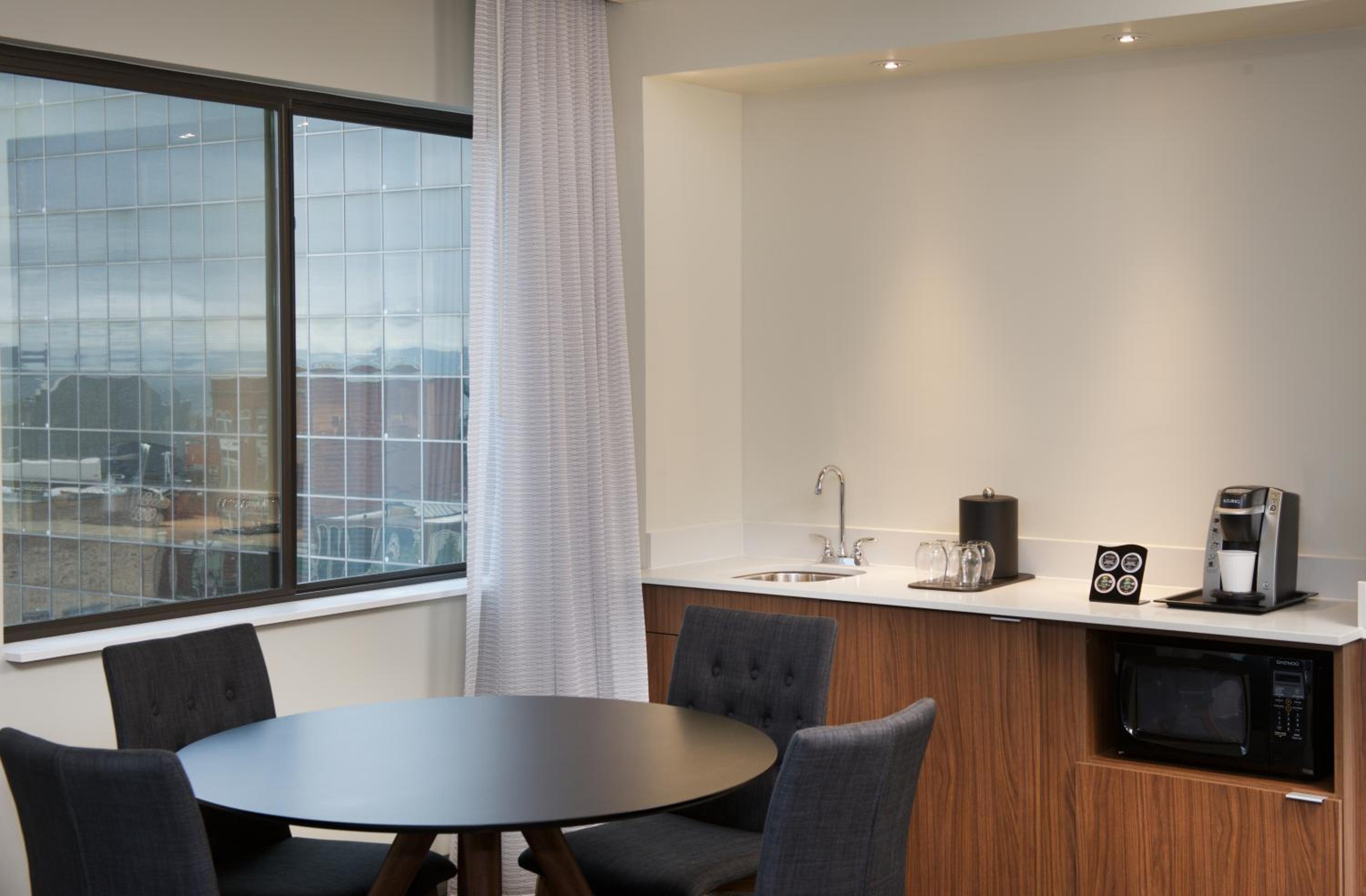 Everything was wonderful. The rooms were beautiful, the bed and pillows comfortable, and everything worked. The view was beautiful over the city.