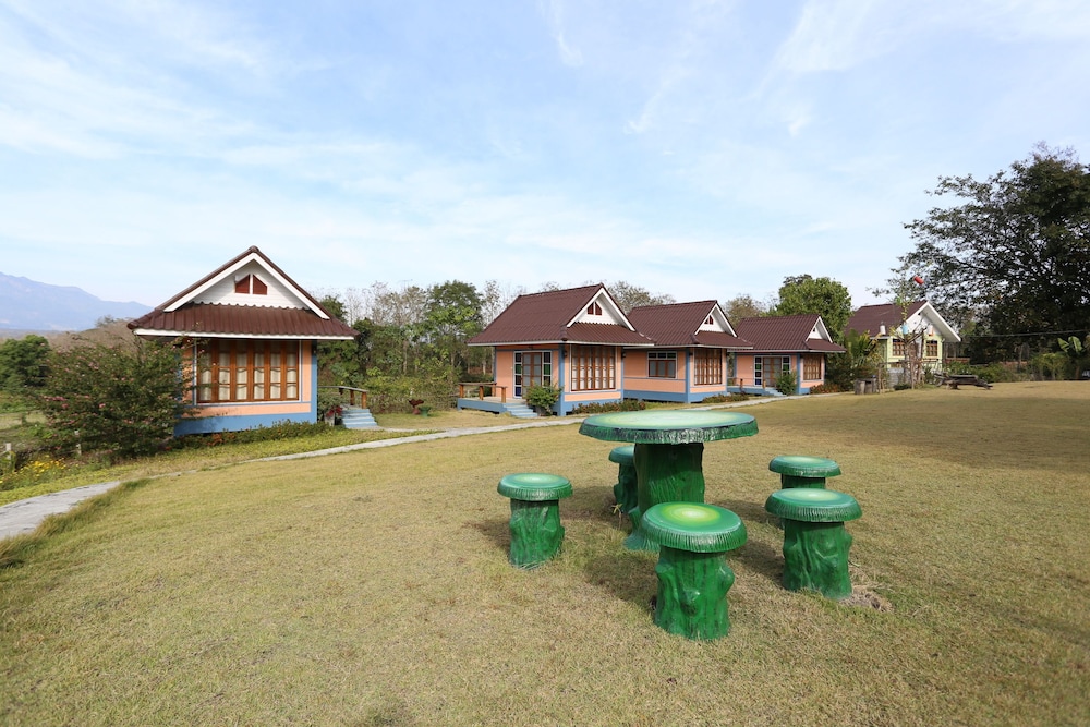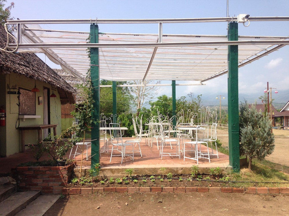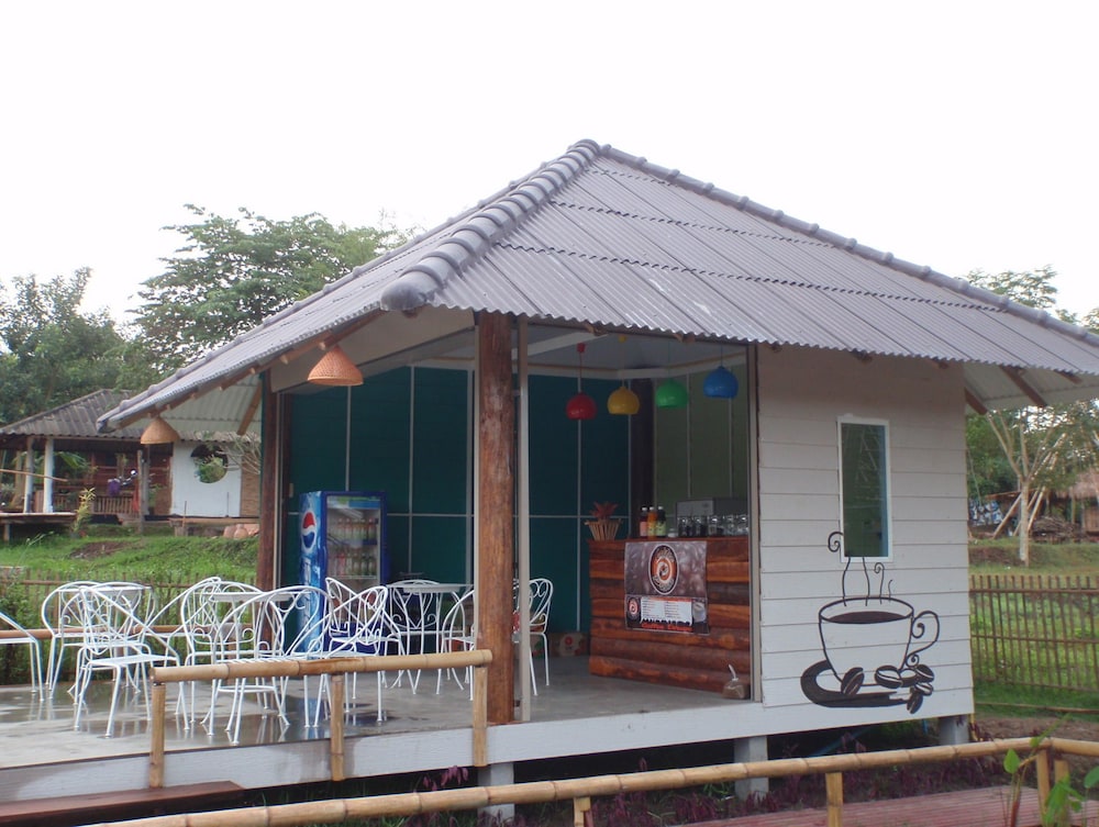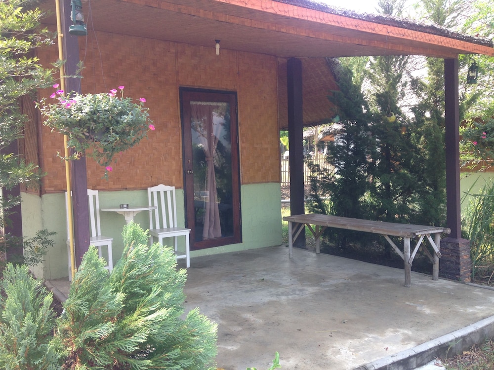 We stayed here for 3 nights and enjoyed it. We chose the cheaper room which was a 'bamboo' bungalow. On the inside though, only the bathroom was really bamboo and the rest was clay. The bed was very close to the floor so people with mobility issues may struggle a bit getting in and out of bed. There was a tv and fan in the room also. Be warned, the site said it had air con but these rooms did not. We hardly needed it though as it was not too hot. We also got breakfast included, this was only toast with jam, instant coffee and bananas, so nothing too special. The staff were extremely helpful and friendly and because it is on a small property outside of town it was peaceful and quiet. It was probably about a 3 min scooter ride into town. It would be a fair hike if you were to walk.Across the road was a field with waterbuffalo which I felt was nice to wake up to. If you stay here, Pai can be confusing with directions so I will try to explain- go to almost the end of Walking street and turn right just after the Gelato shop. follow this road to the end and go left over a bridge. Take the first left and follow the road for about 2km and it is on the left. Enjoy!