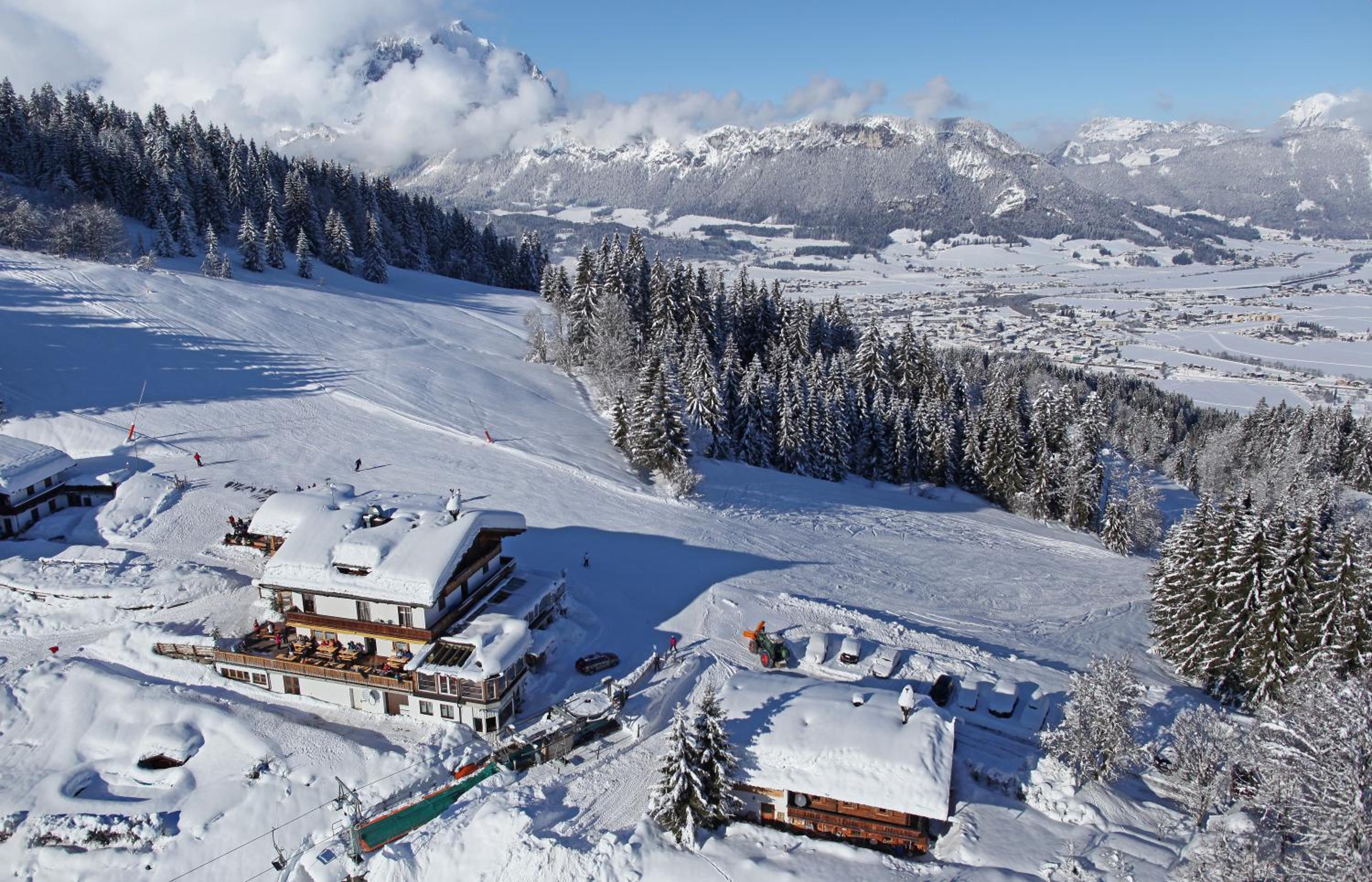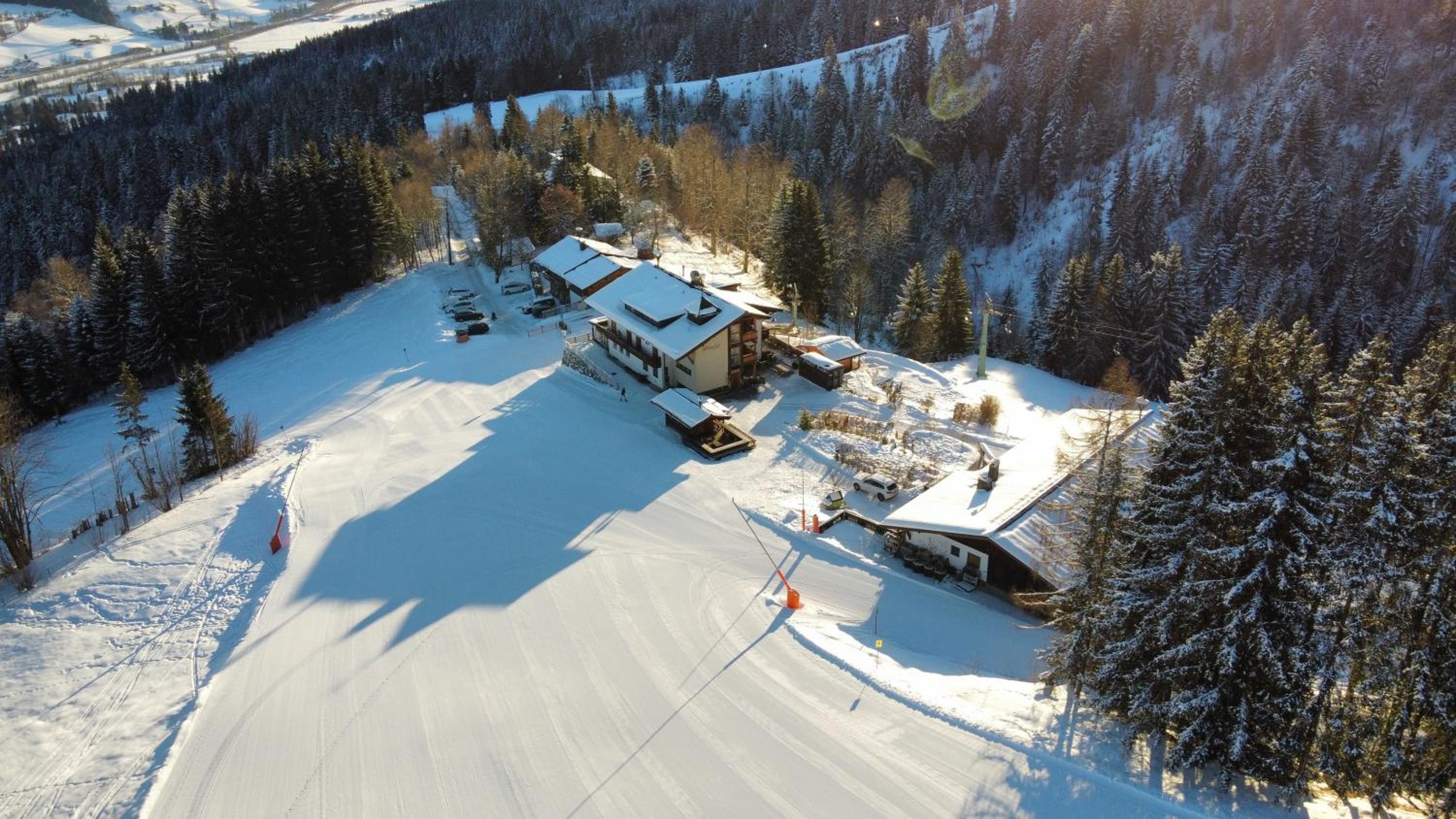 Lage direkt an der Skipiste mit wunderbarem Blick ins Tal; während des Hahnenkamm-Wochenendes noch ein Zimmer zu einem erschwinglichen Preis ergattert, gut abendgegessen, Frühstück völlig in Ordnung