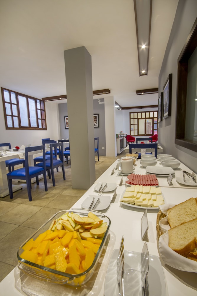 Very clean hotel, spacious rooms, decent bathrooms with shower. Our rooms on the third floor overlooked street below and had great view of the ocean. There is a nice common patio on the second floor. Made-to-order breakfast was included. In center of town, near all tour meeting spots, restaurants etc. Good value.