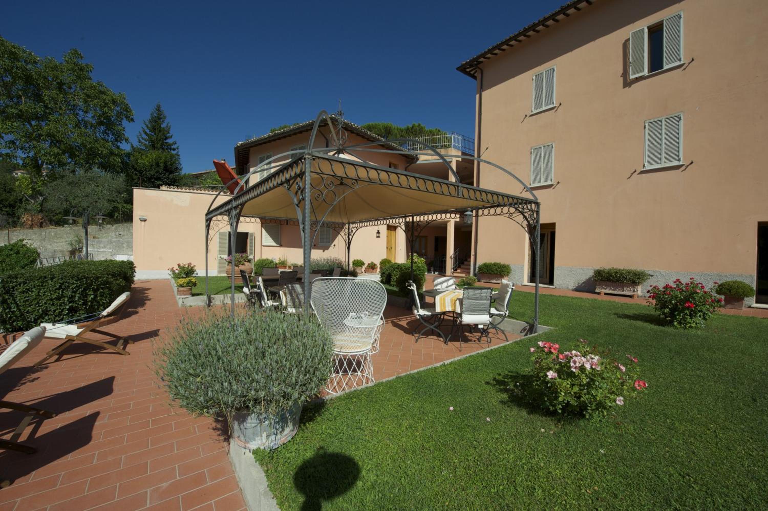 La struttura è circondata da suggestive colline e boschi che rendono il paesaggio naturale e l'atmosfera del giardino esterno in struttura veramente rilassanti.