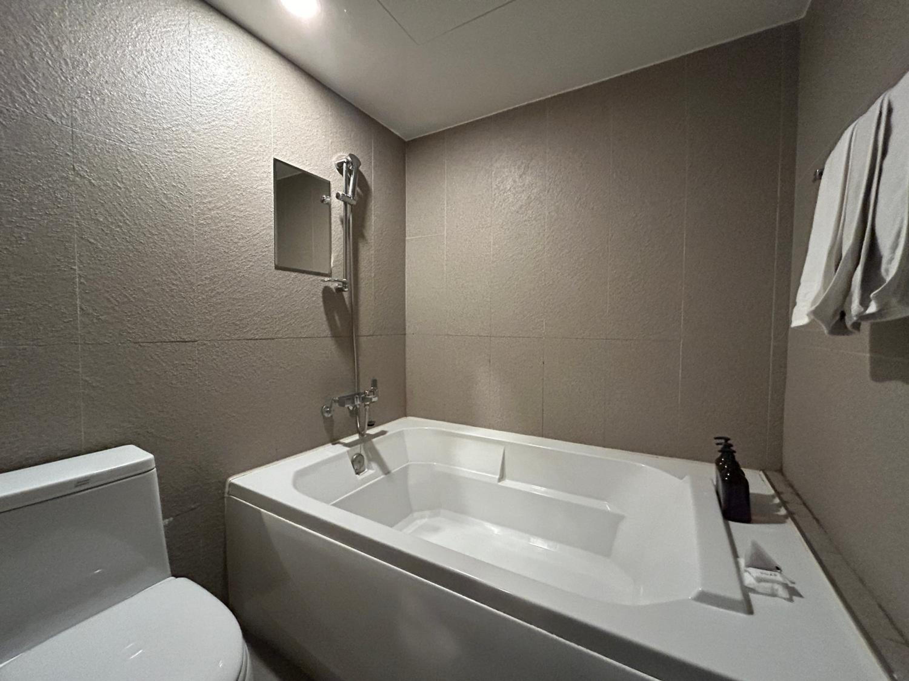 양산 통도환타지아를 가기 위해 이래저래 검색하다가 예약하였습니다. 부산에 볼일이 있어 밤늦게 도착한 숙소는 유흥업소가 많았습니다.(단점) 하지만 소란스러운 동네는 아니여서 주차 후 들어가자마자 카운터 매너저님 아이들 2명 보시곤 물2병 이불자리 여유분을 가따준 친절함 그기에다가 숙소 사이즈 업까지~ 너무 너무 친절하여 감사하였고, 침대의 높이가 낮아서 아이들이 위험하지 않아 더더욱 좋았습니다. 다음에 또 양산에 볼일 있어 간다면 재이용하겟습니다^^(특히 샤워기 최고에요)