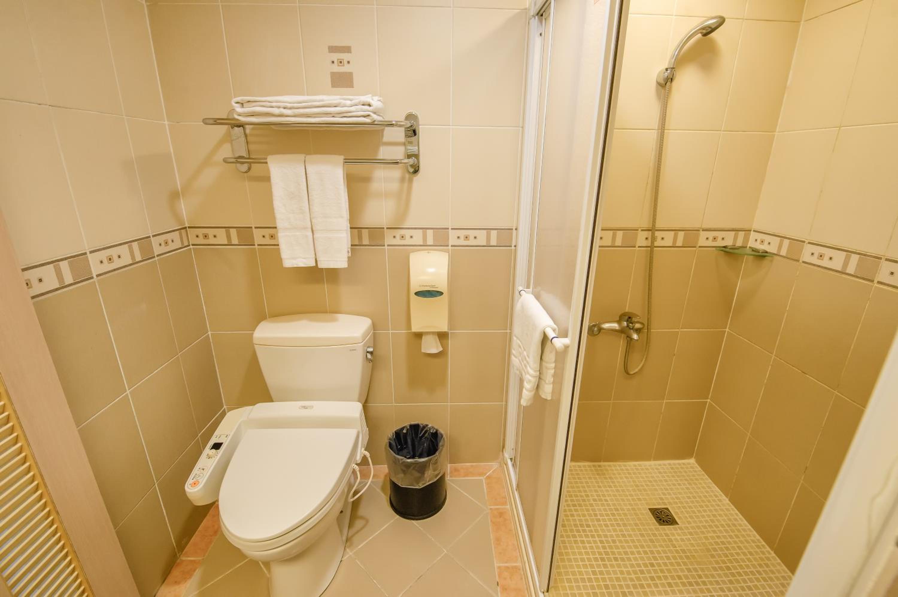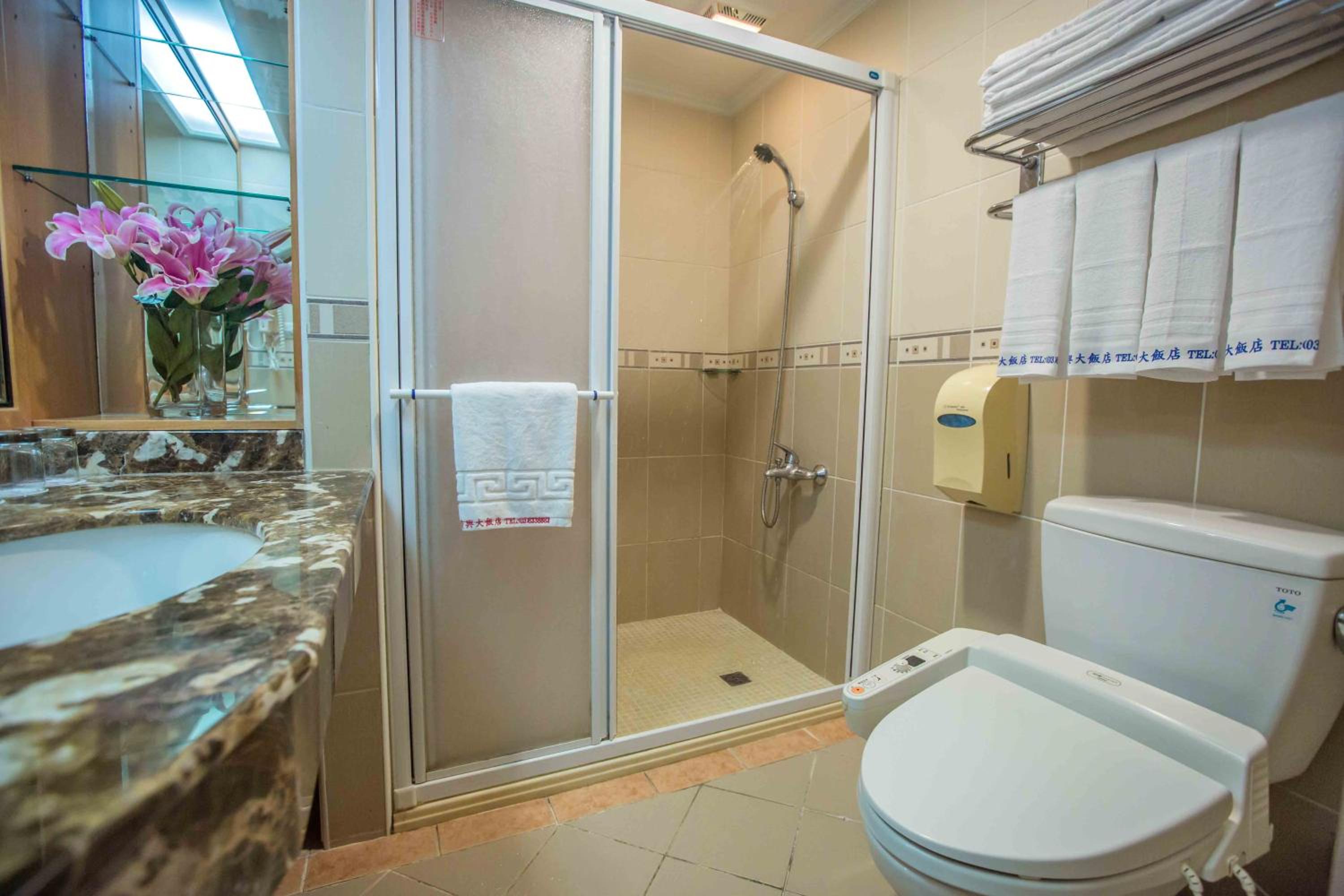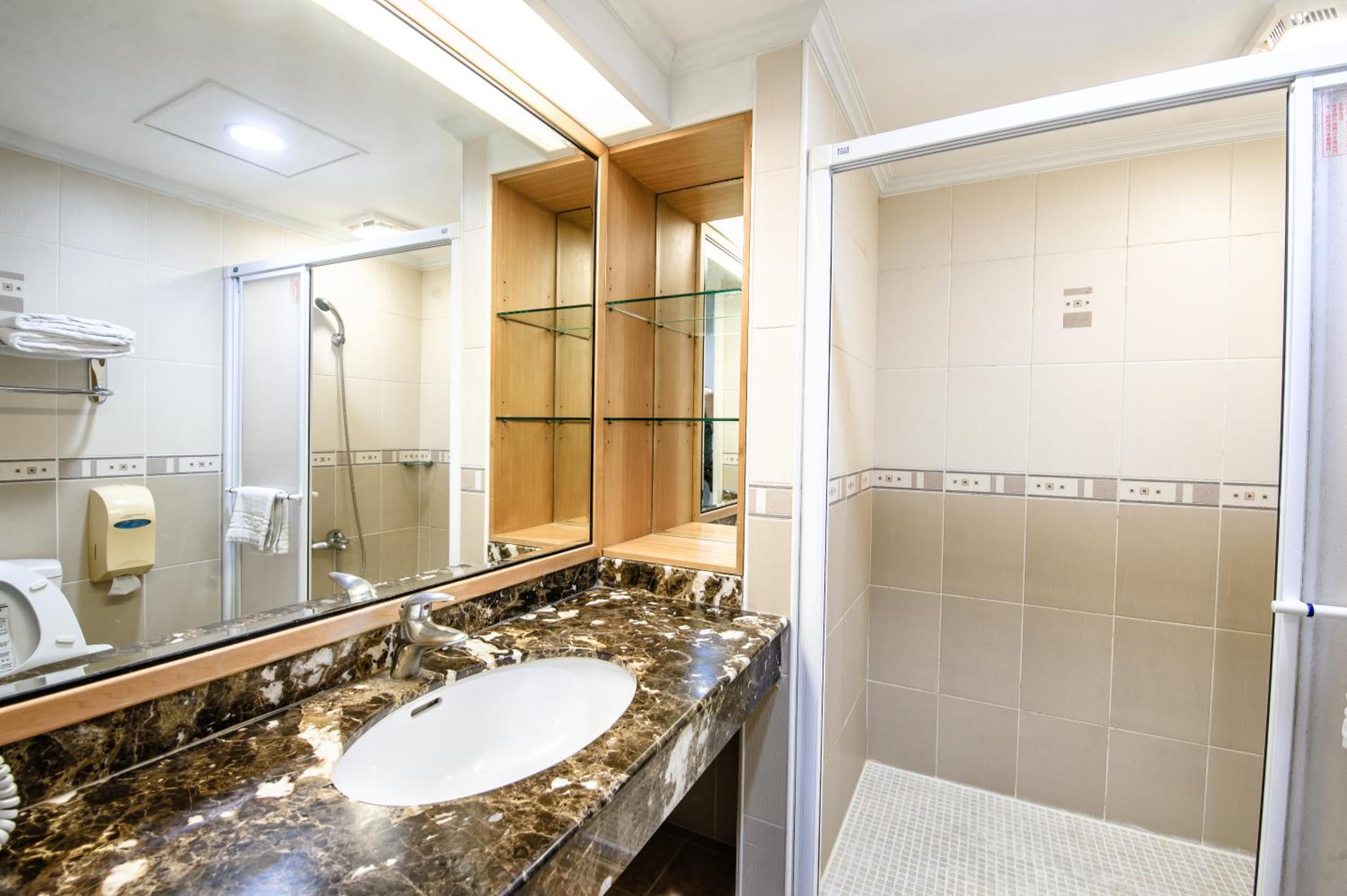 房間寬敞,大小毛巾齊備,房內有小冰箱,浴室乾濕分離,水量熱又大,而且不是電熱式,不用擔心洗太久水溫會下降,電視是全頻道第四台,這樣的價位還提供地下停車場,非常超值