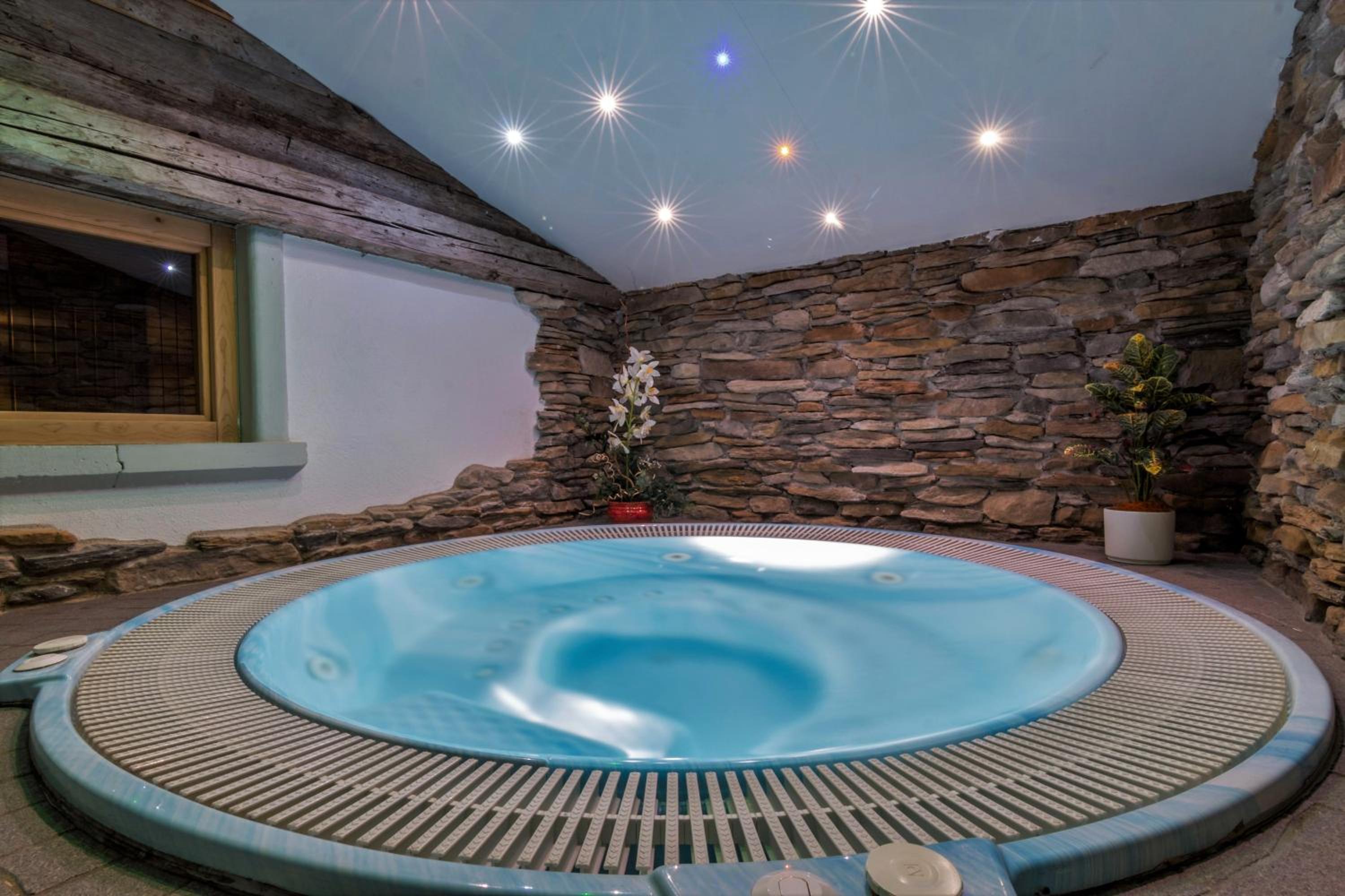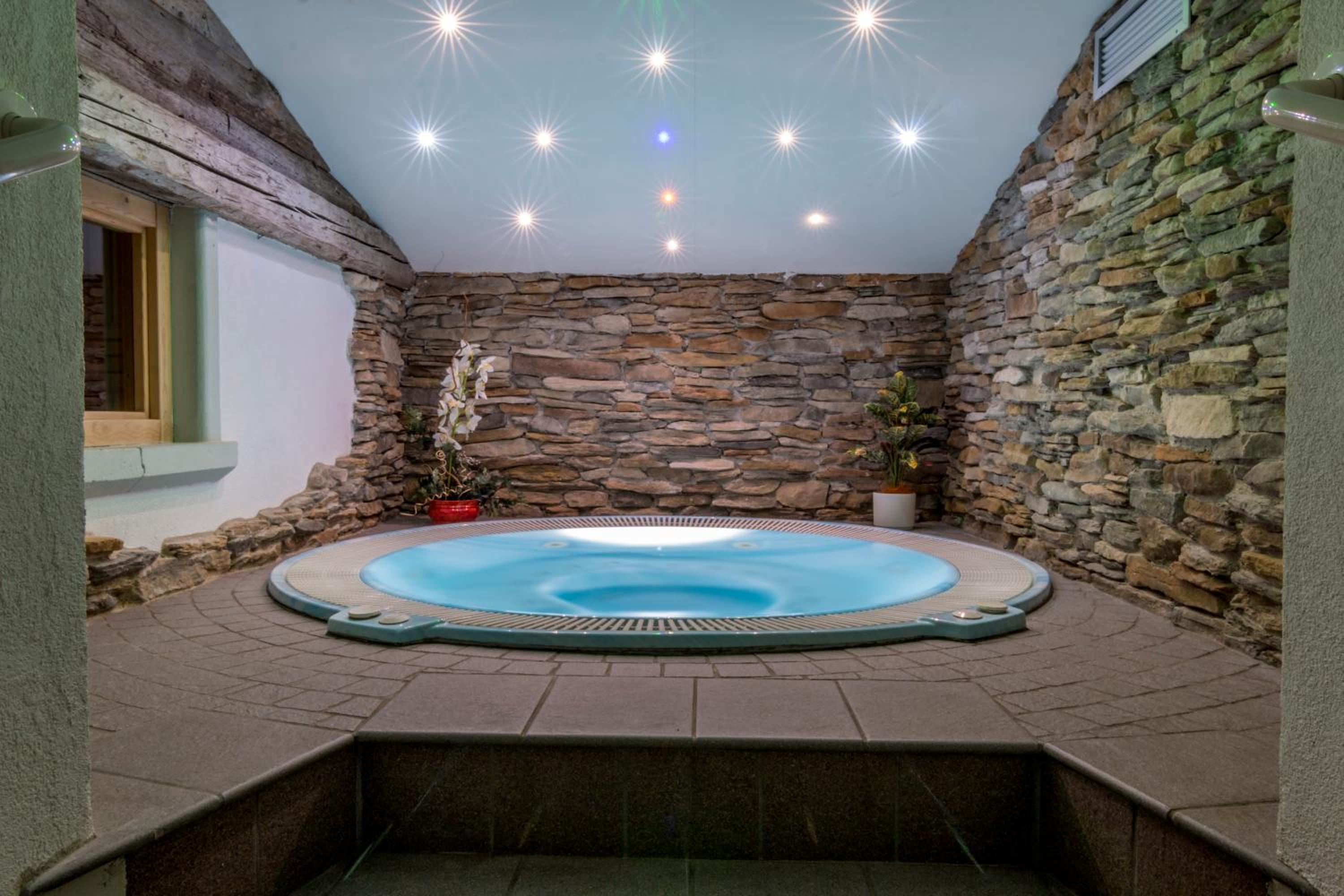 Indulge in relaxation at our private wellness center with a sauna, hot tub, Turkish bath, and chromotherapy showers. Unwind in style during your stay.