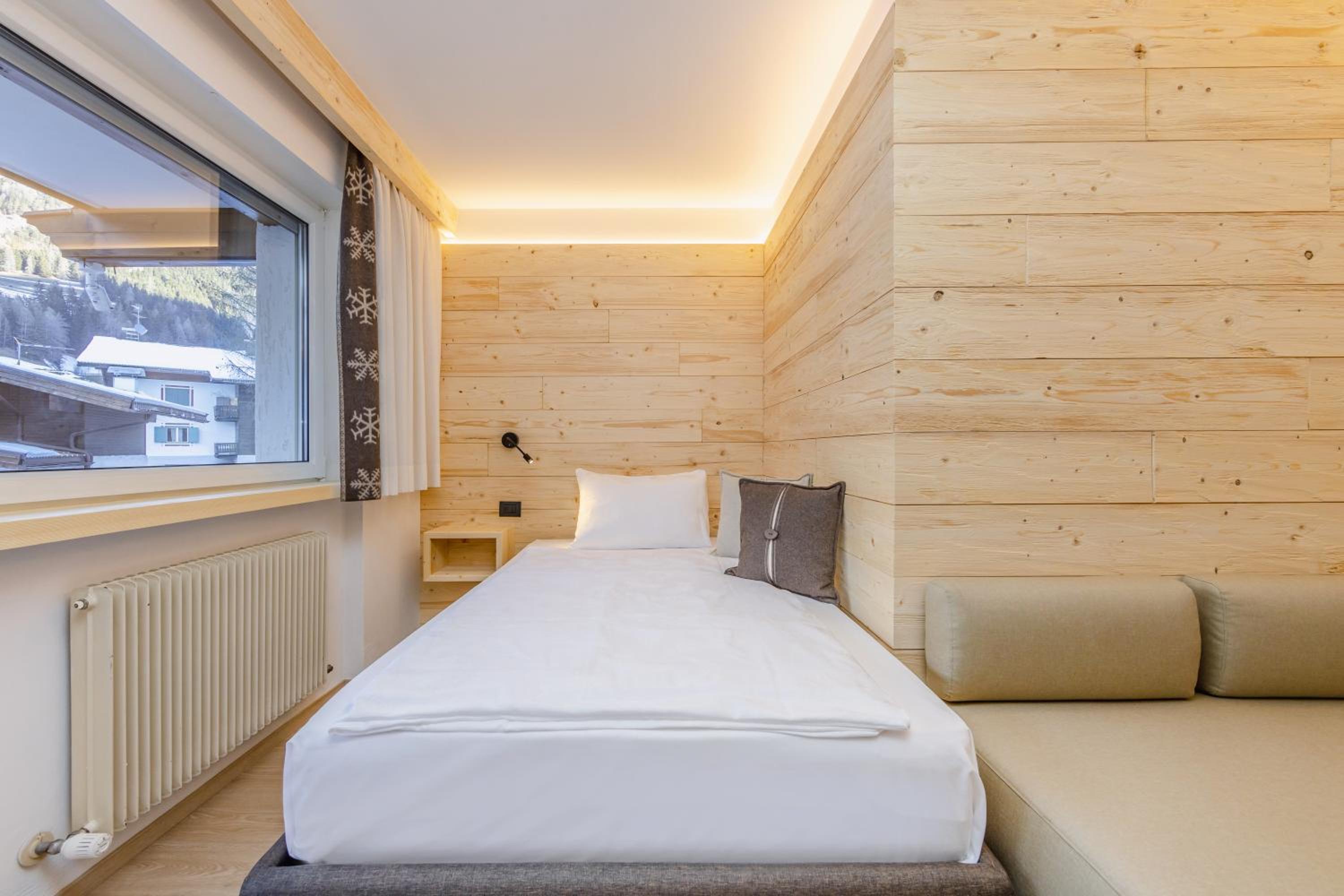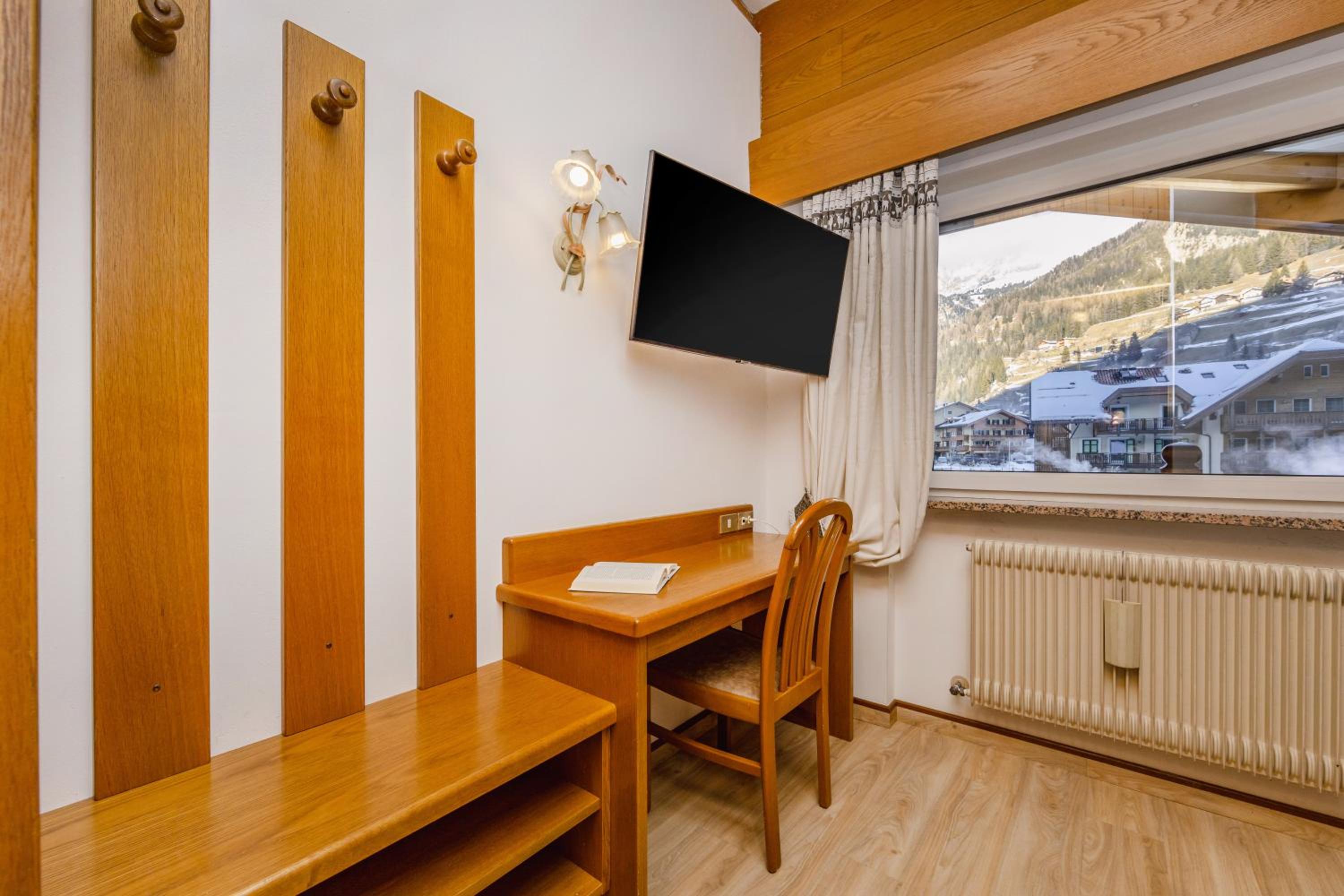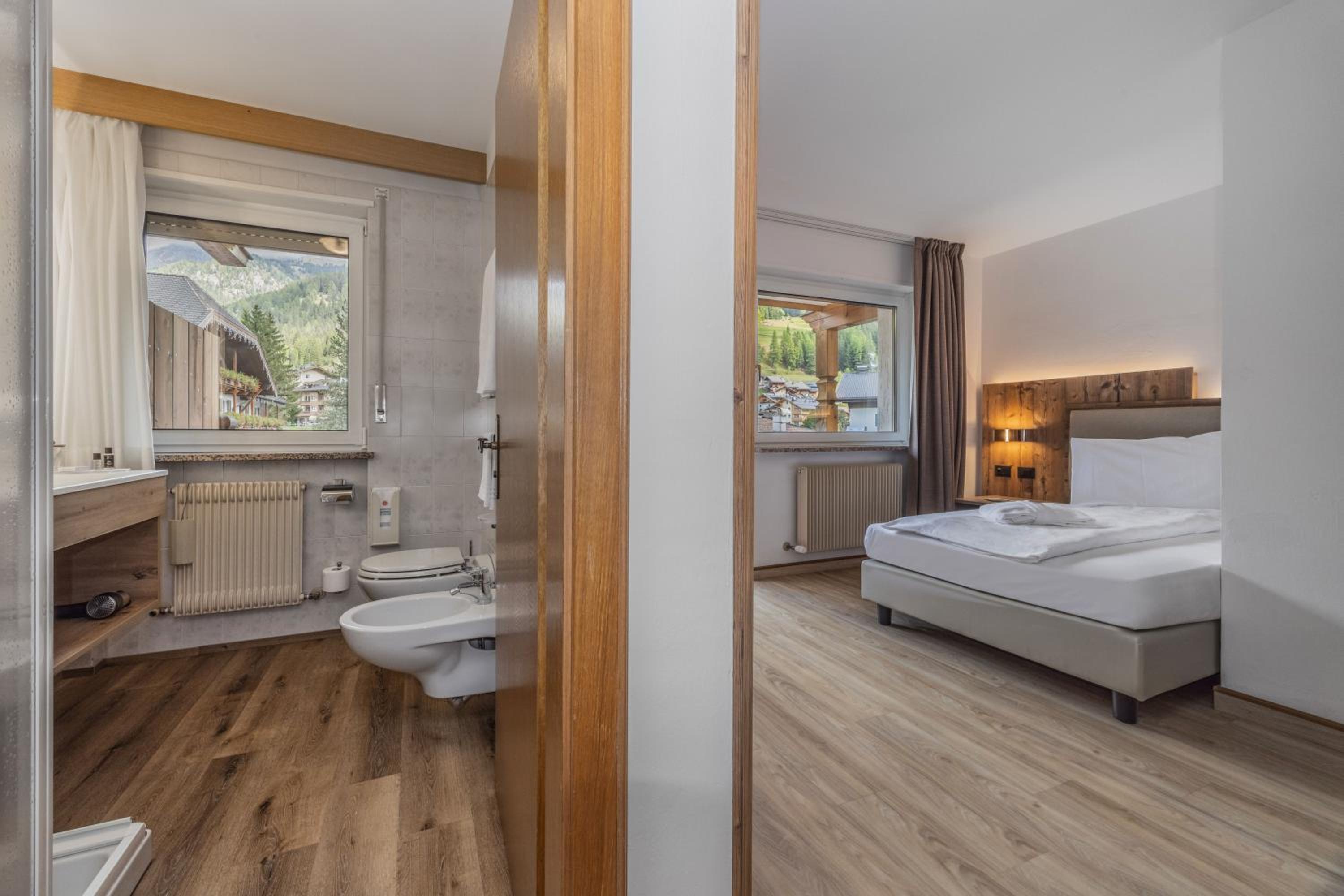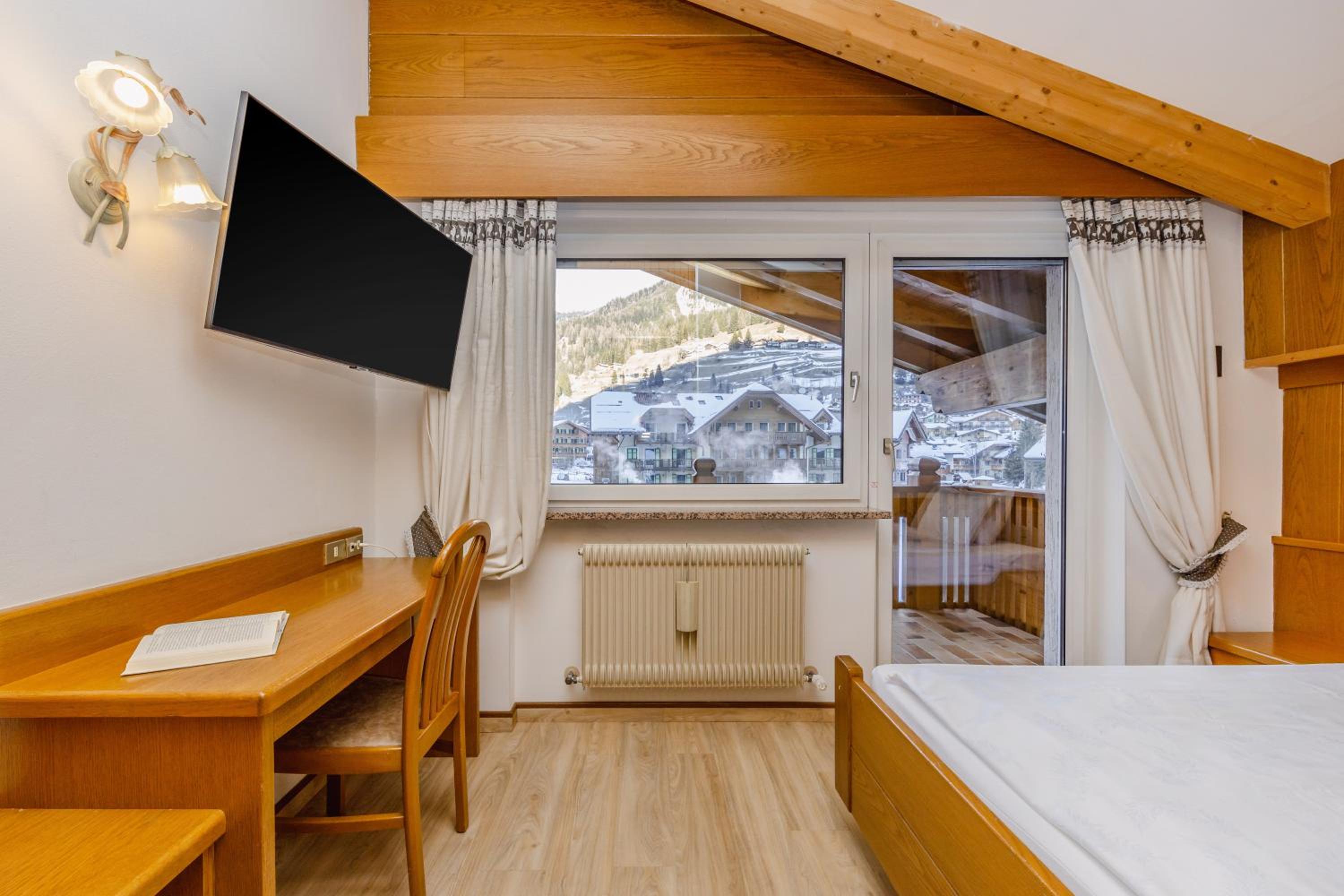 Spettacolare la vista dalla finestra. Graditissimo il balcone sul Sasso Lungo. Finalmente un hotel dove la temperatura della camera non è troppo alta! Personale gentilissimo, sia alla reception, sia nella sala colazione. Pulizia accurata. Piacevole la spa. In camera si trovano accappatoi e salviettoni da utilizzare per la spa. Prodotti da bagno di buona qualità. Bollitore, acqua di cortesia, frigo. Armadio spazioso, anche se senza ante. Prese e luci in abbondanza. Colazione ottima, varia e abbondante, in una saletta deliziosa. Vicinissimo agli impianti. Che dire di più?