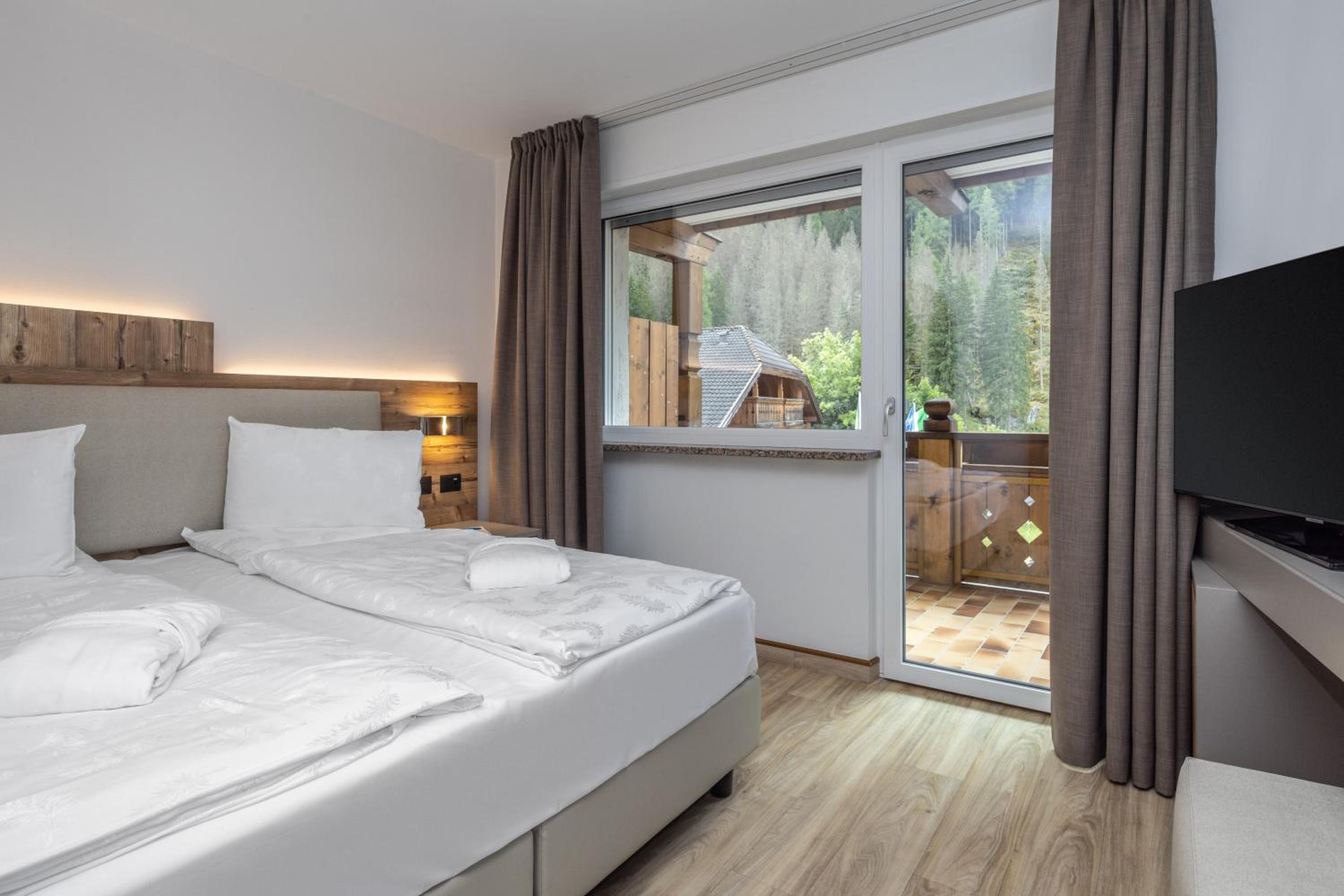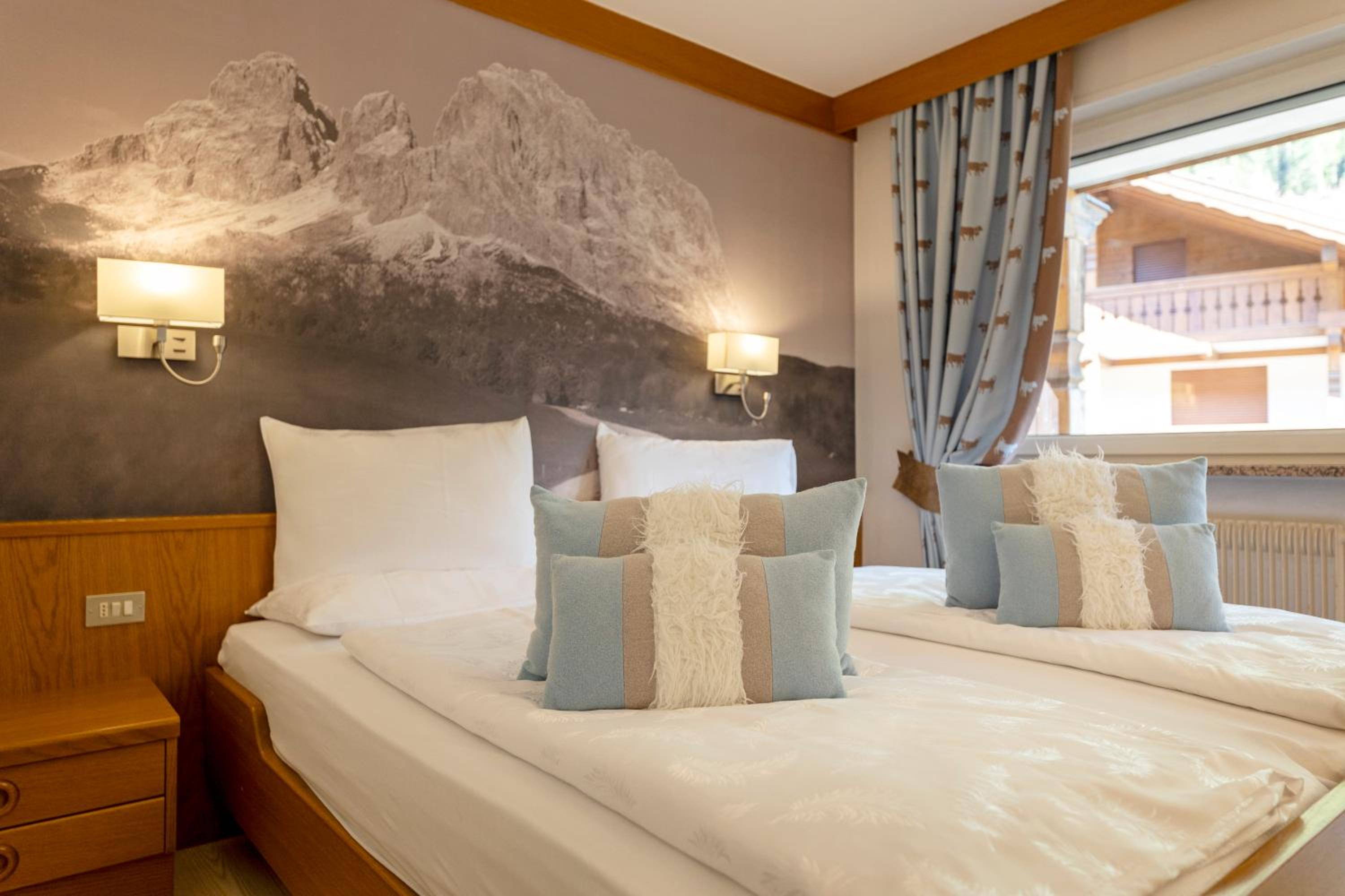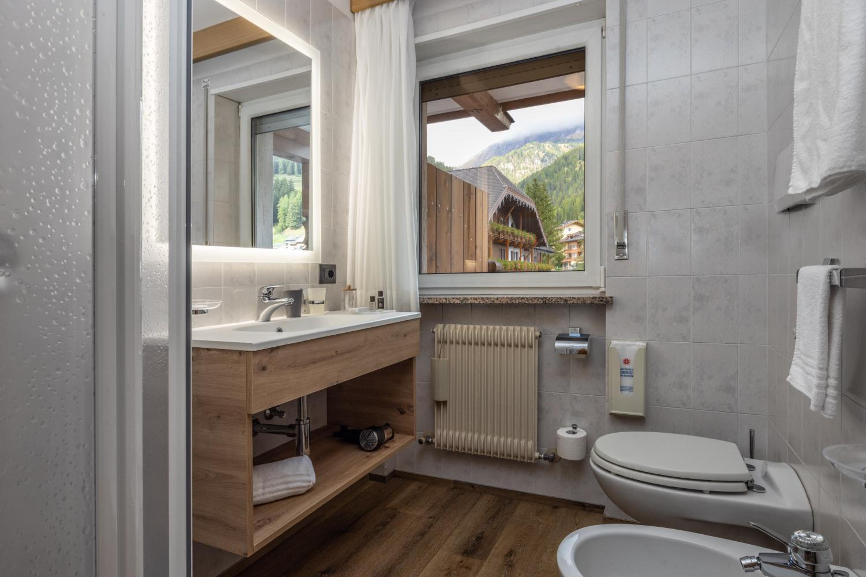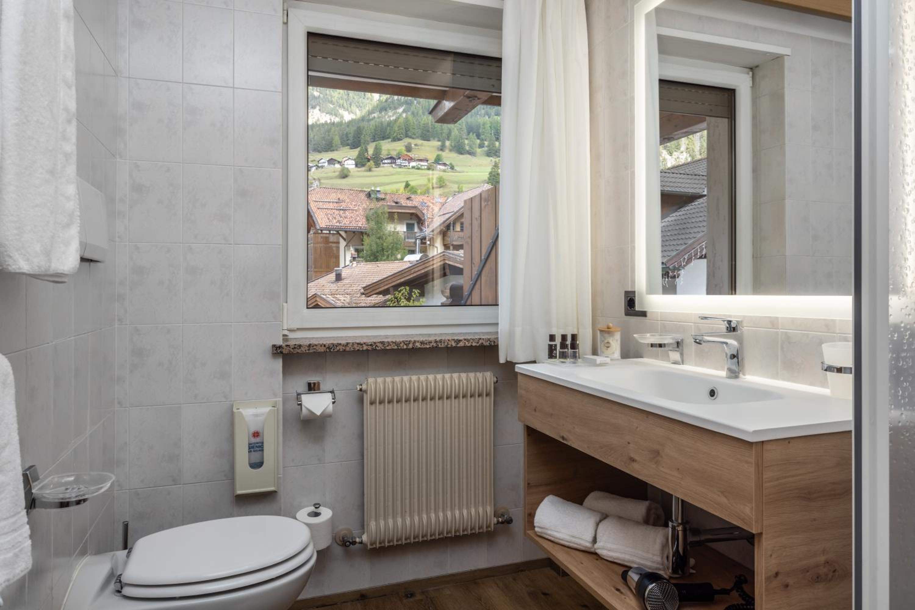 Spettacolare la vista dalla finestra. Graditissimo il balcone sul Sasso Lungo. Finalmente un hotel dove la temperatura della camera non è troppo alta! Personale gentilissimo, sia alla reception, sia nella sala colazione. Pulizia accurata. Piacevole la spa. In camera si trovano accappatoi e salviettoni da utilizzare per la spa. Prodotti da bagno di buona qualità. Bollitore, acqua di cortesia, frigo. Armadio spazioso, anche se senza ante. Prese e luci in abbondanza. Colazione ottima, varia e abbondante, in una saletta deliziosa. Vicinissimo agli impianti. Che dire di più?