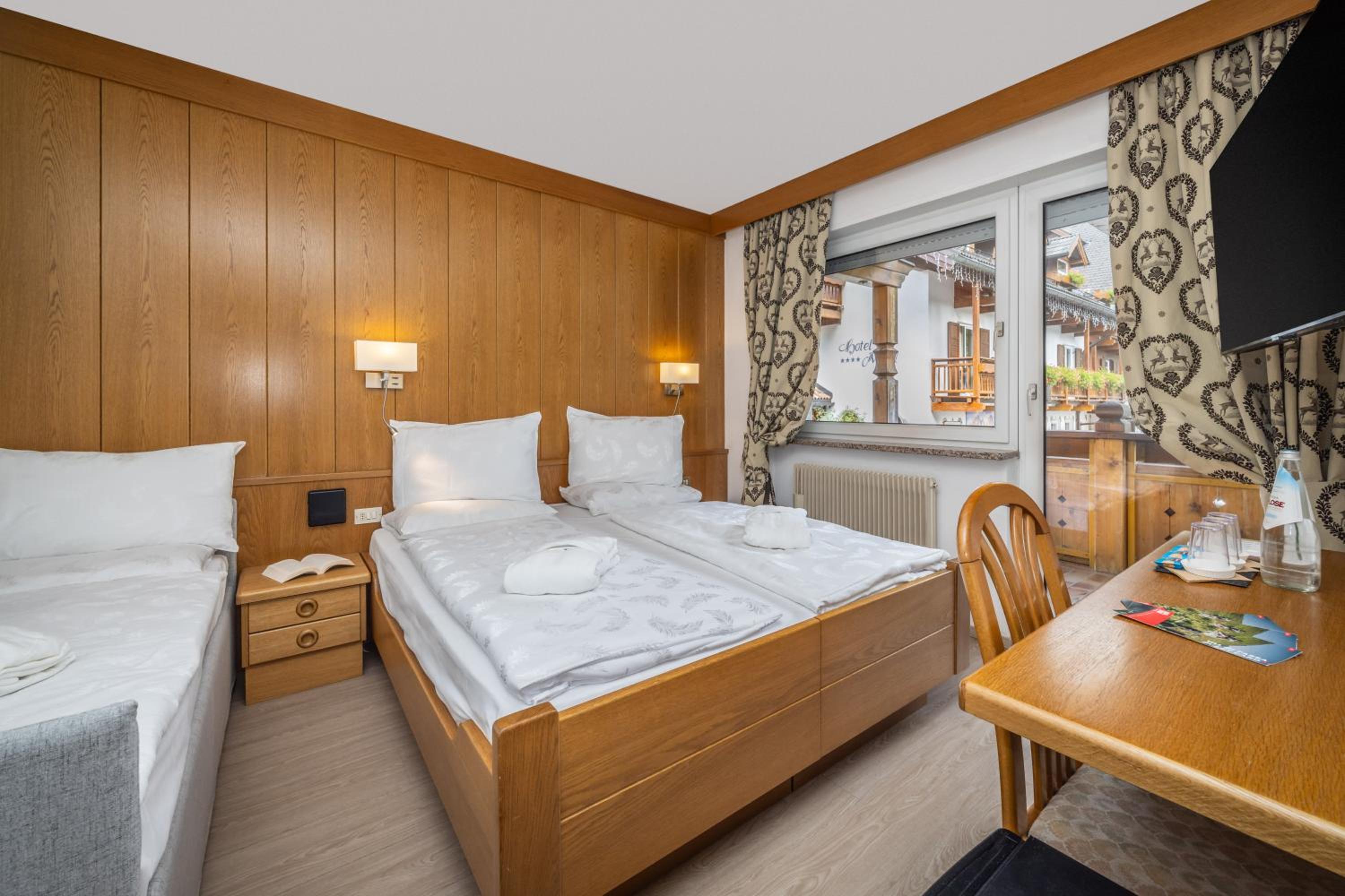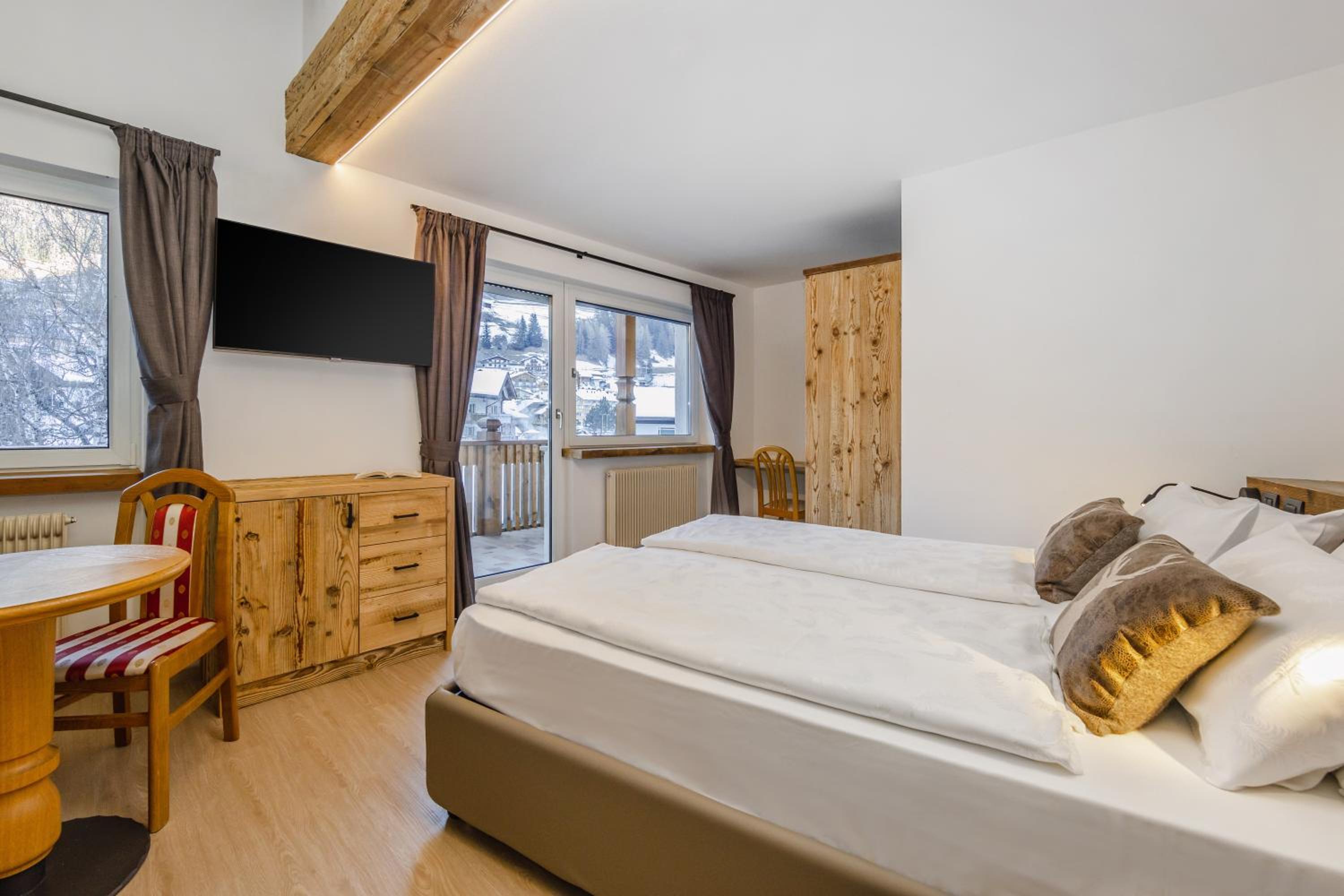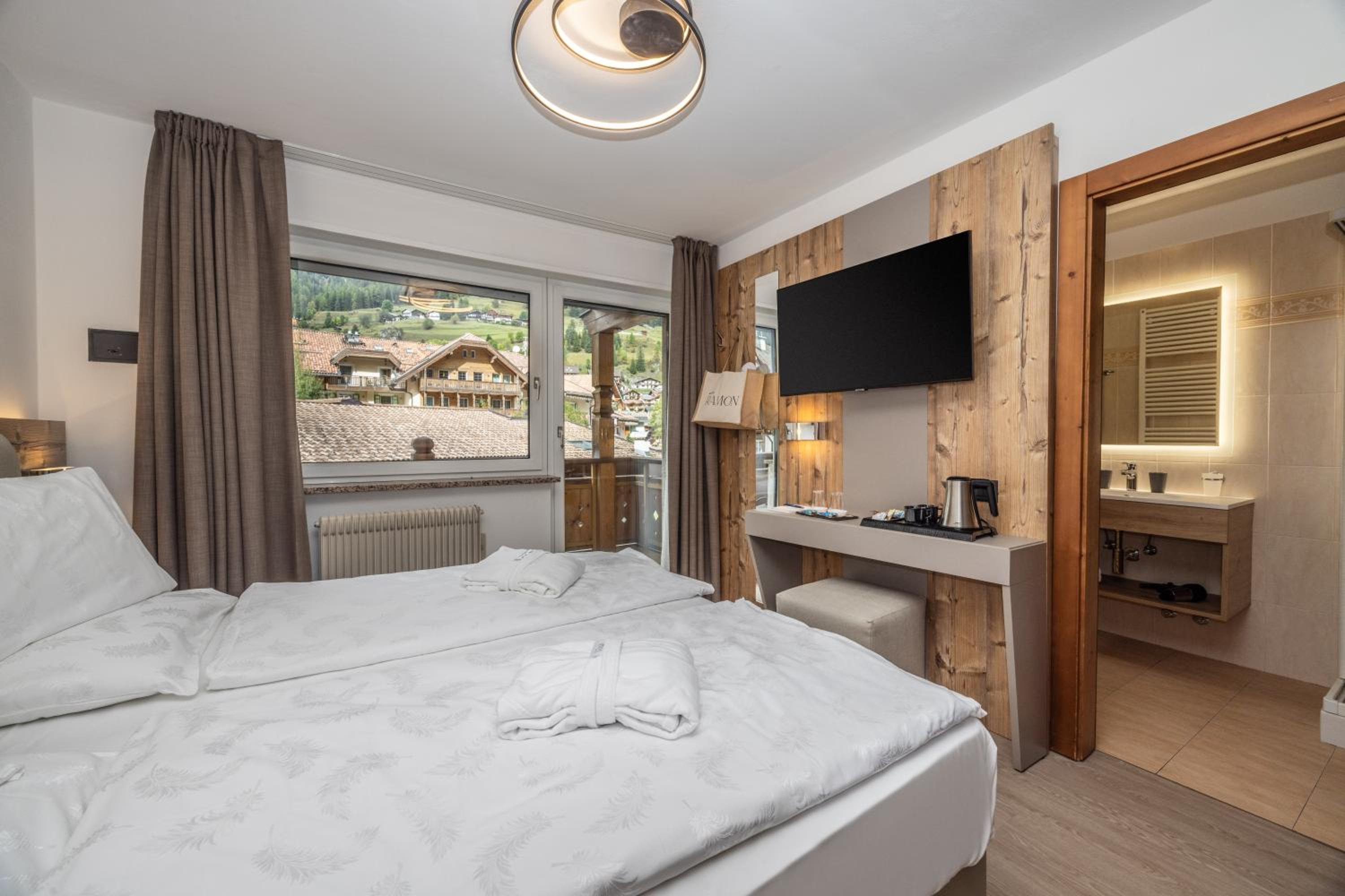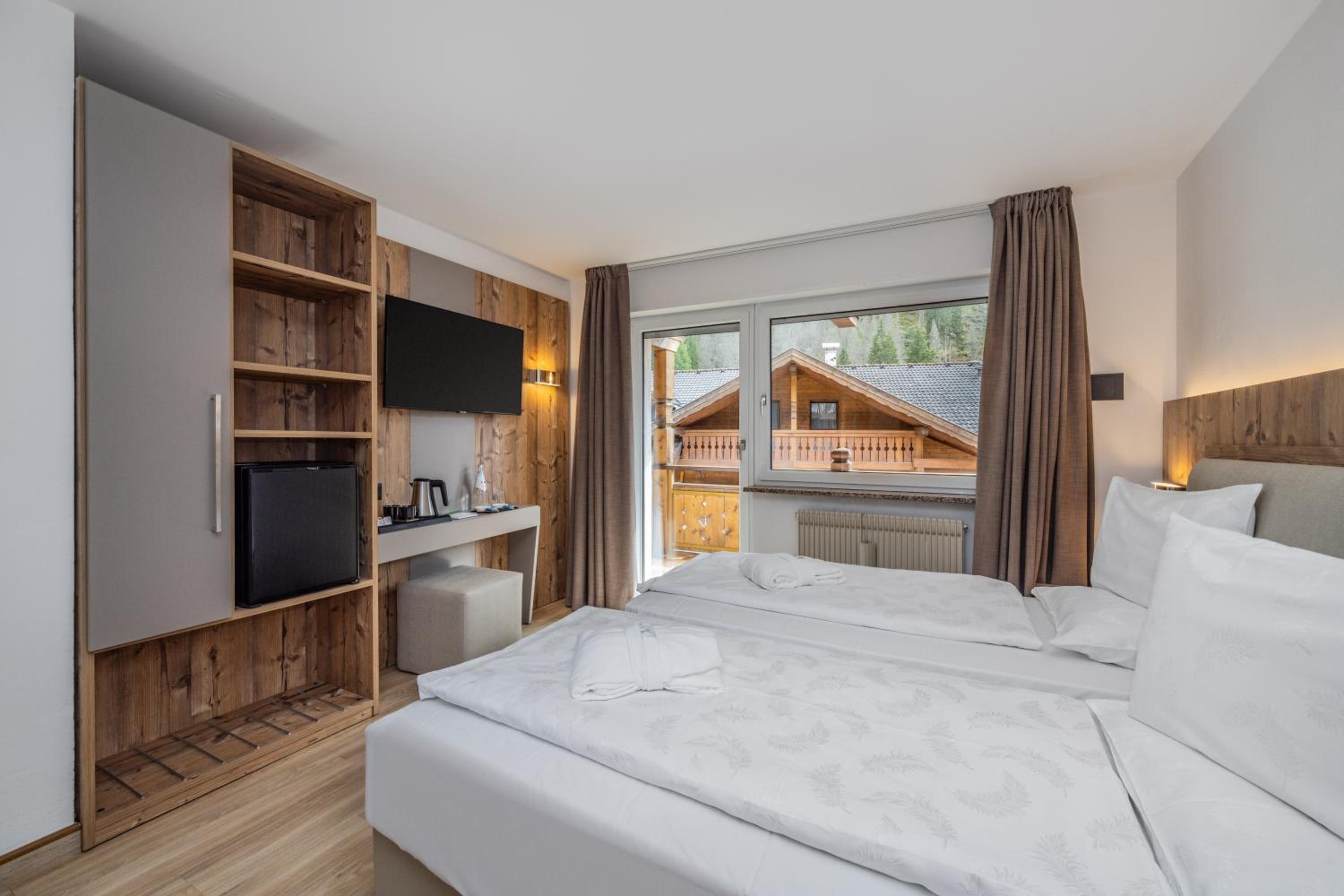 Spettacolare la vista dalla finestra. Graditissimo il balcone sul Sasso Lungo. Finalmente un hotel dove la temperatura della camera non è troppo alta! Personale gentilissimo, sia alla reception, sia nella sala colazione. Pulizia accurata. Piacevole la spa. In camera si trovano accappatoi e salviettoni da utilizzare per la spa. Prodotti da bagno di buona qualità. Bollitore, acqua di cortesia, frigo. Armadio spazioso, anche se senza ante. Prese e luci in abbondanza. Colazione ottima, varia e abbondante, in una saletta deliziosa. Vicinissimo agli impianti. Che dire di più?