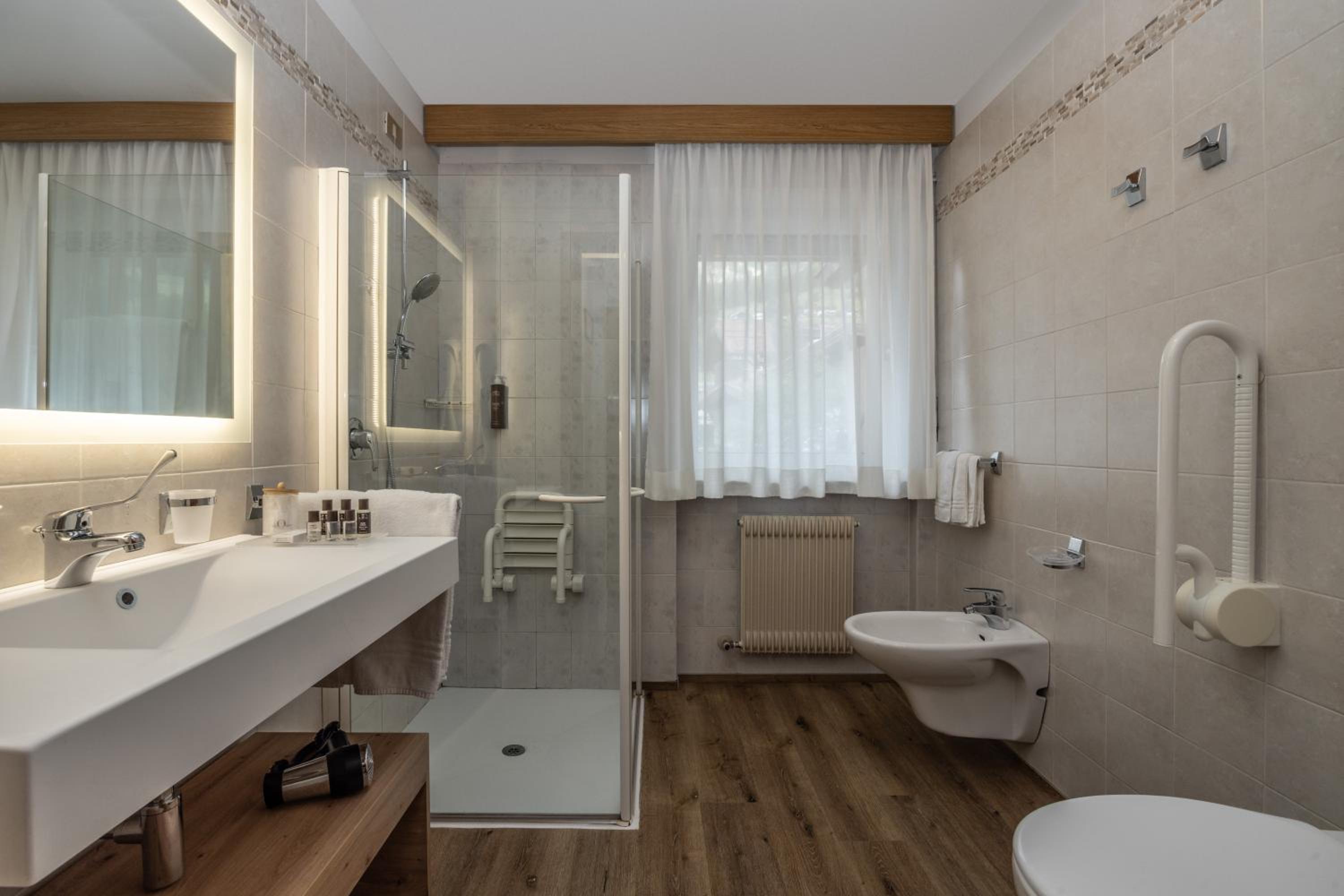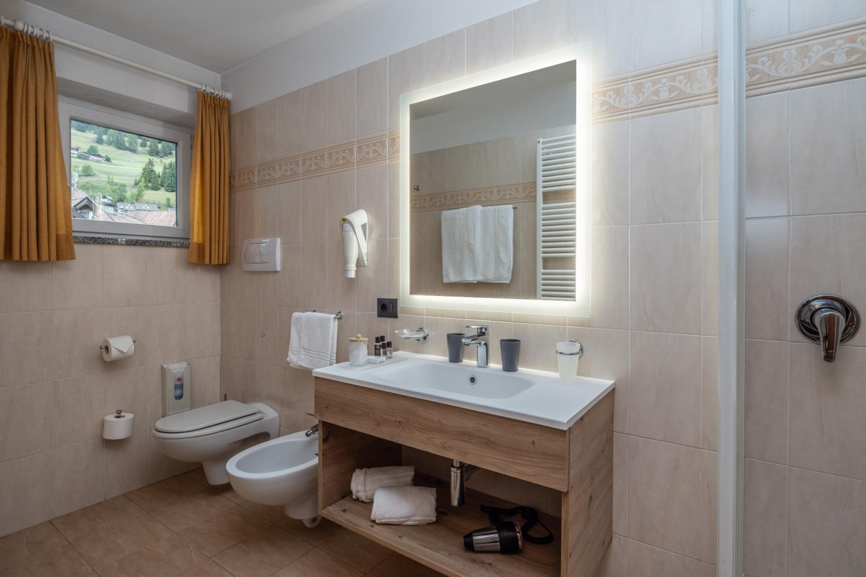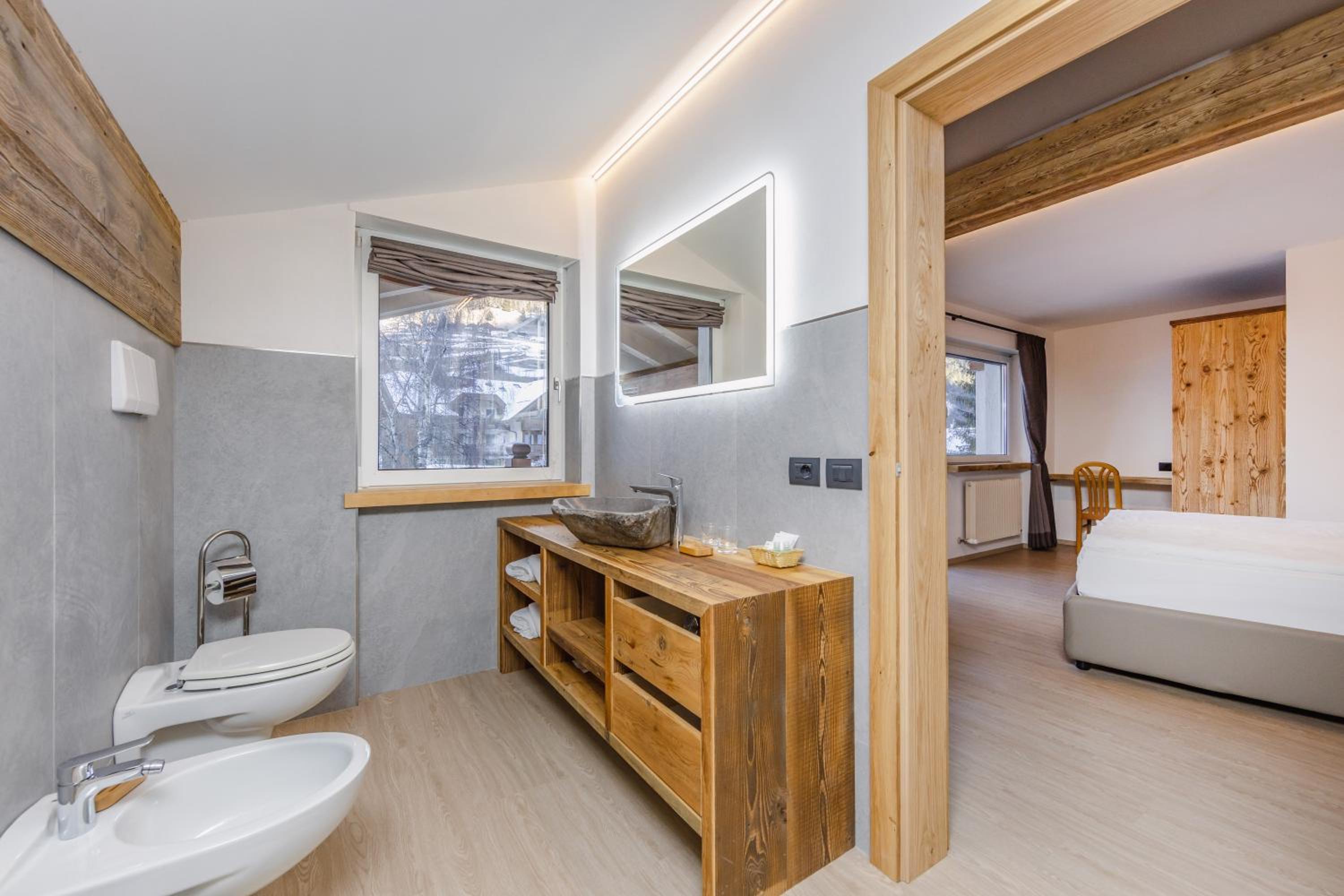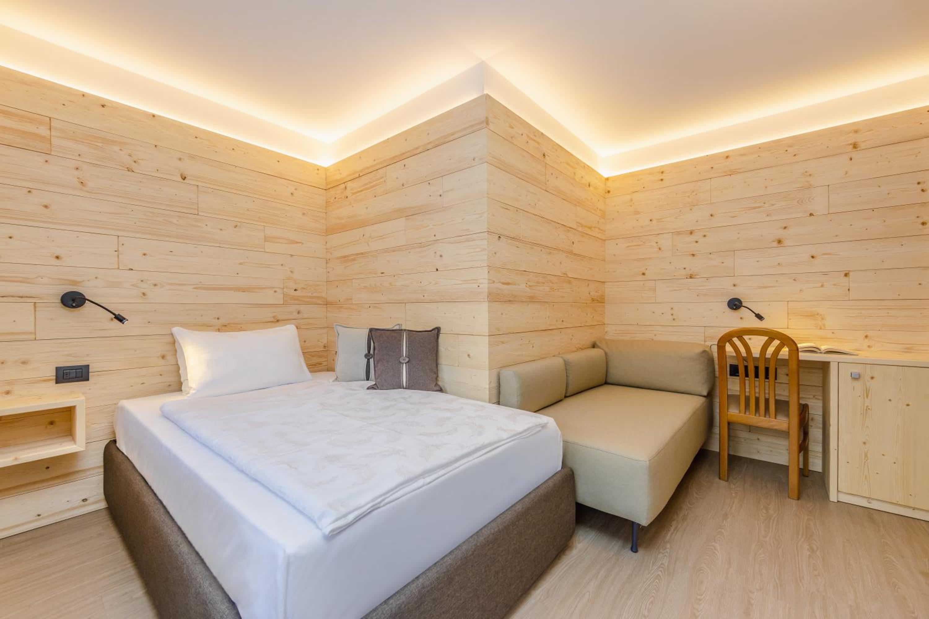 Spettacolare la vista dalla finestra. Graditissimo il balcone sul Sasso Lungo. Finalmente un hotel dove la temperatura della camera non è troppo alta! Personale gentilissimo, sia alla reception, sia nella sala colazione. Pulizia accurata. Piacevole la spa. In camera si trovano accappatoi e salviettoni da utilizzare per la spa. Prodotti da bagno di buona qualità. Bollitore, acqua di cortesia, frigo. Armadio spazioso, anche se senza ante. Prese e luci in abbondanza. Colazione ottima, varia e abbondante, in una saletta deliziosa. Vicinissimo agli impianti. Che dire di più?