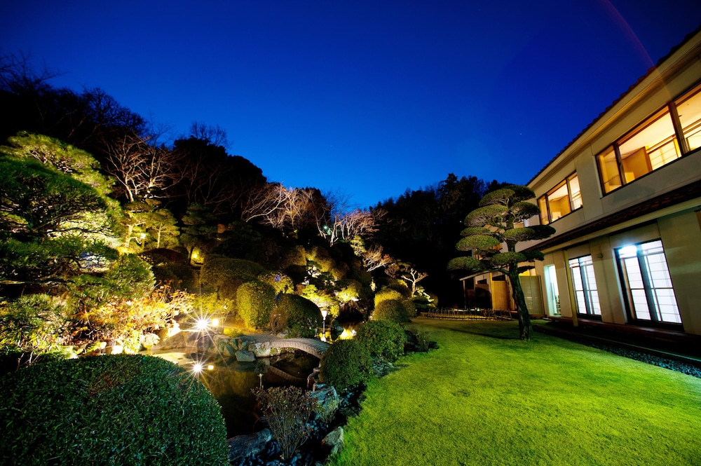 Indulge in hot springs and admire the serene garden views at Shougen Sansou.