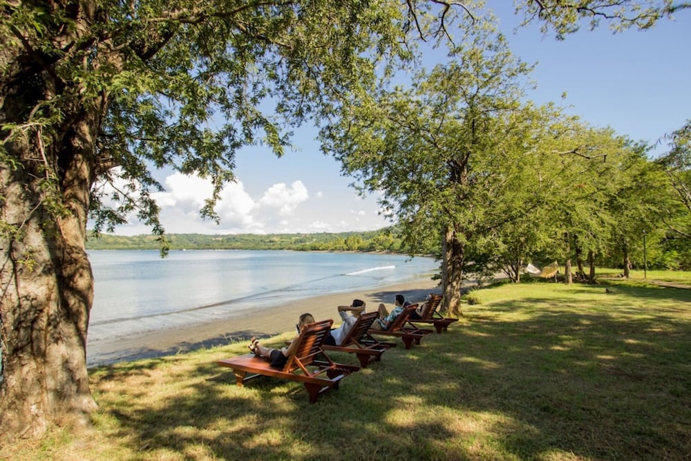 Paddleboards and kayaks for a modest fee (we did the latter). Decent beach you can walk for a couple miles on, without much in the way of waves so easy to swim. And nice and warm water (late Sept). Howler monkeys, iguanas and birds galore all right there. And beautiful gardens.