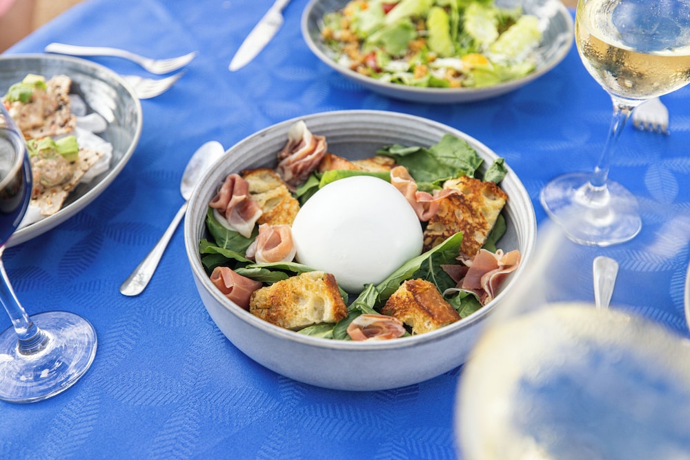 Food good - although a little pricey, but that is what you expect at a nice resort. There are a couple of places you can walk to (did for one lunch), but mainly just ate at their nice outdoor restaurant (has an air-conditioned section if you like, but we found al fresco rather enjoyable).