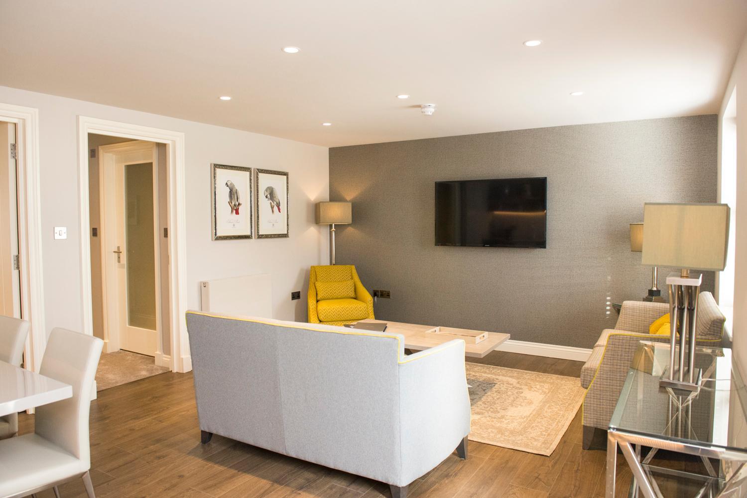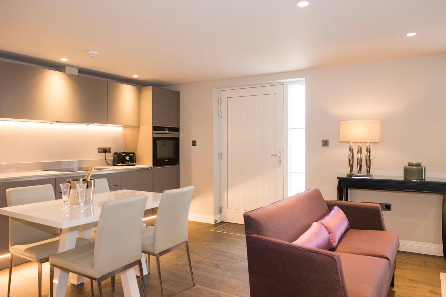 The self-catering Mews Apartments offer a contemporary stay with fully fitted kitchens, spacious living areas, and private decking for each bedroom.