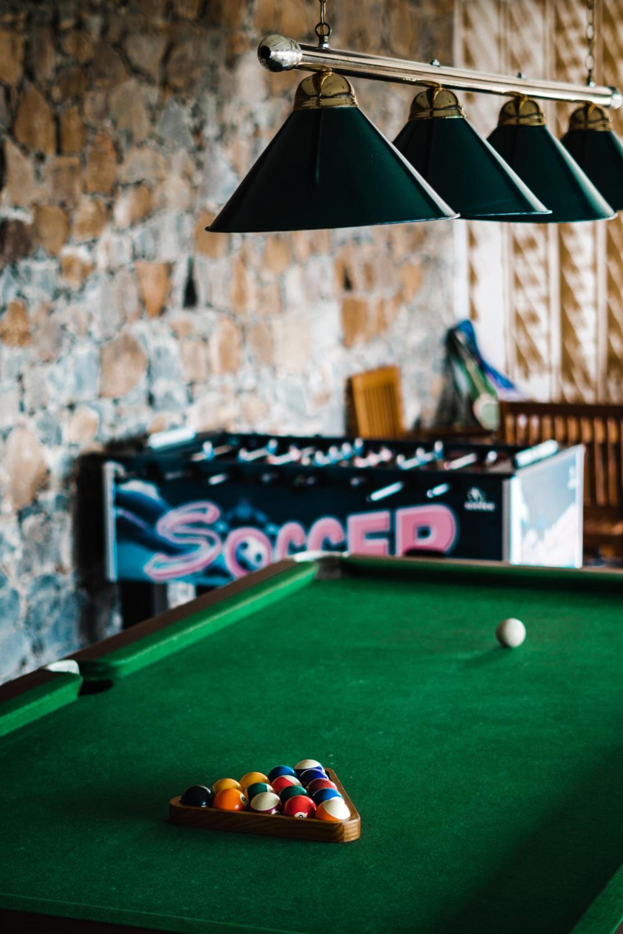 La salle de jeux avec le baby foot pour les enfants.