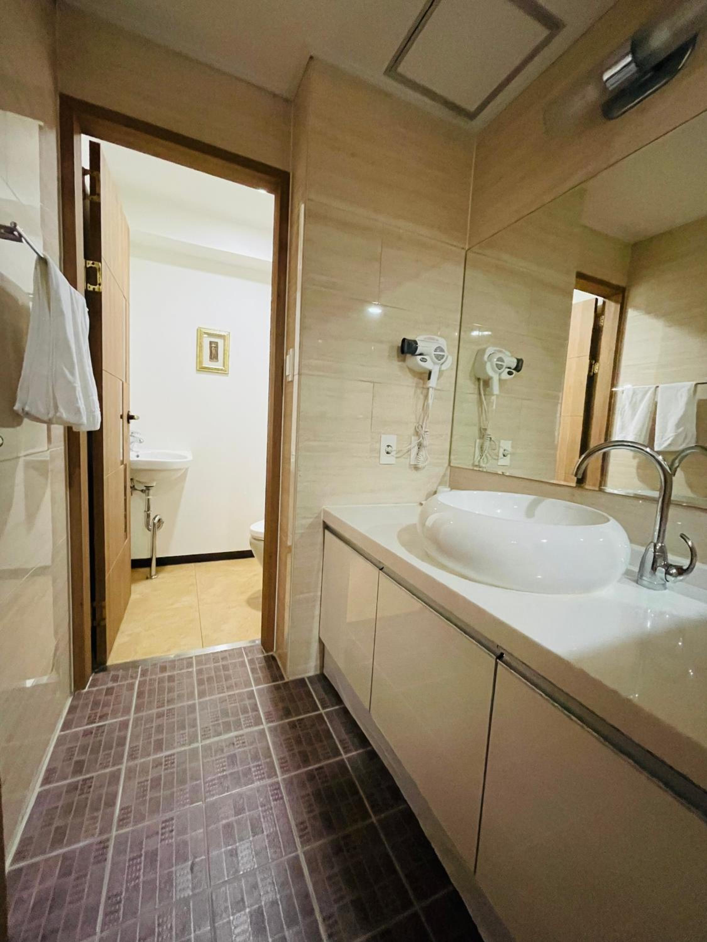 Room Amenities: Each room is equipped with modern amenities including air conditioning, a flat-screen TV, and a private bathroom with a bath and shower.