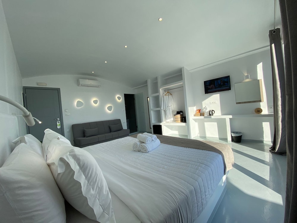 Die Unterkunft ist etwas abgelegen, aber das ist kein Minuspunkt, da es Absicht war eine Unterkunft in ruhiger Lage zu buchen. Das Bad ist kleiner als auf den Fotos. Frühstück bucht man extra und es ist nicht in Form eines Buffets, sondern man erhält zwar genug aber täglich das Gleiche. Wir konnten das Frühstück etwas variieren und es war gar kein Problem. Die Mitarbeiter sind supernett und geben ihr Möglichstes allen Wünschen zu entsprechen. Großes Lob an das Personal! Überall ist es sehr sauber! Strände gibt es in Santorin ohnehin nicht wirklich (Perissa ist zu empfehlen). Das Hotel organisiert auch ein Auto, das man anmieten kann und wird sogar ins Hotel gebracht. Ausflüge (Bootsausflüge) kann man auch buchen und wird dann auch abgeholt und zurückgebracht.
