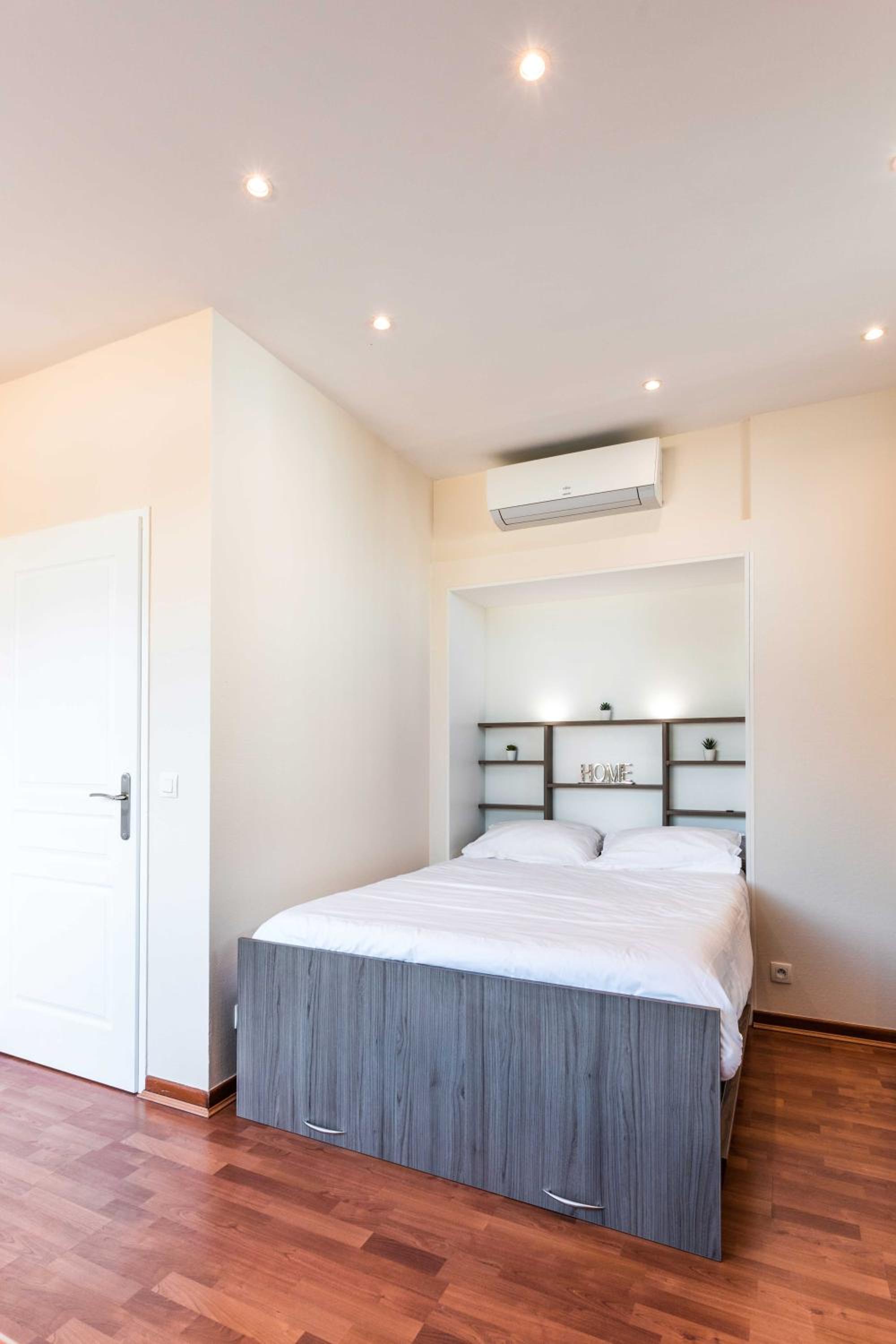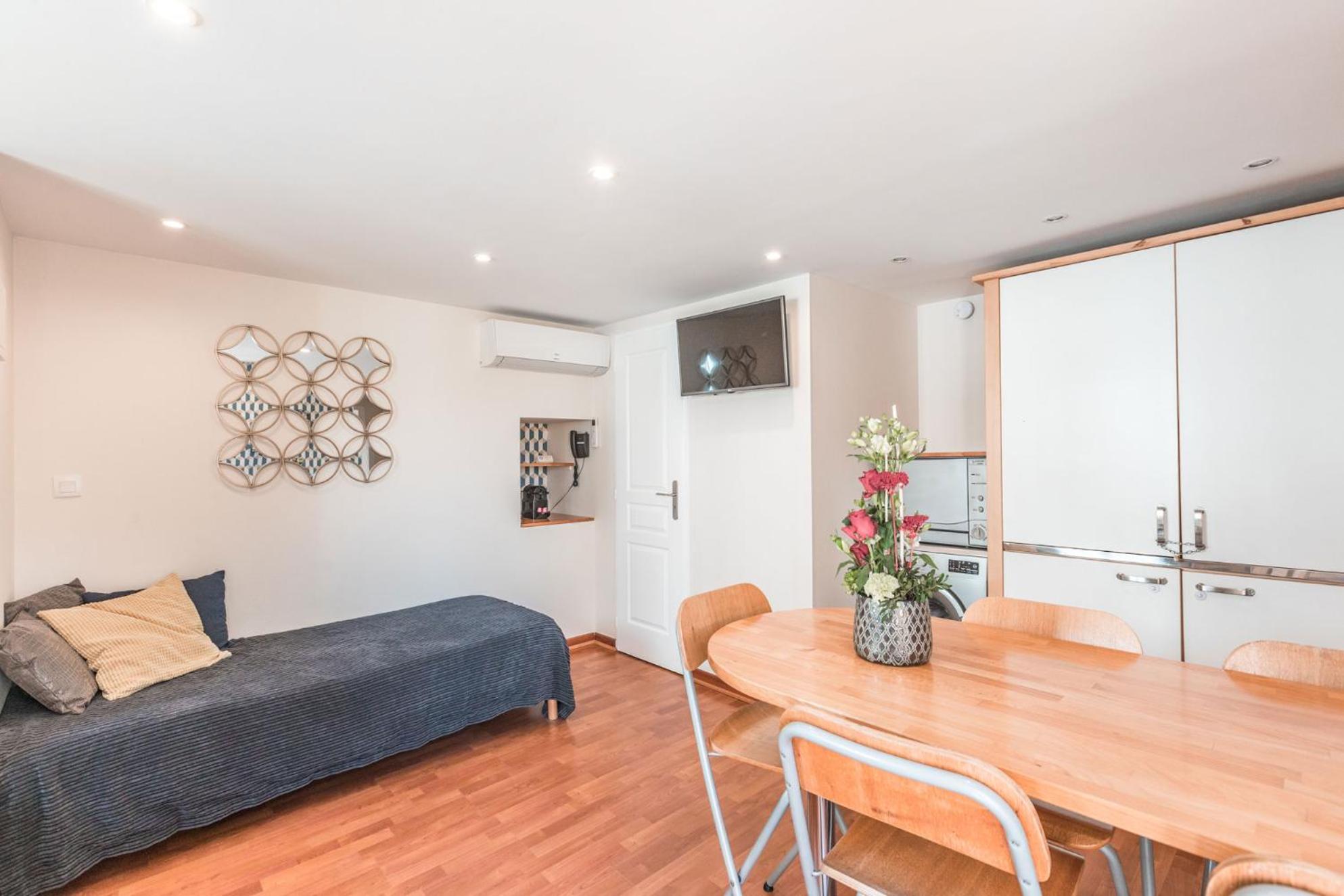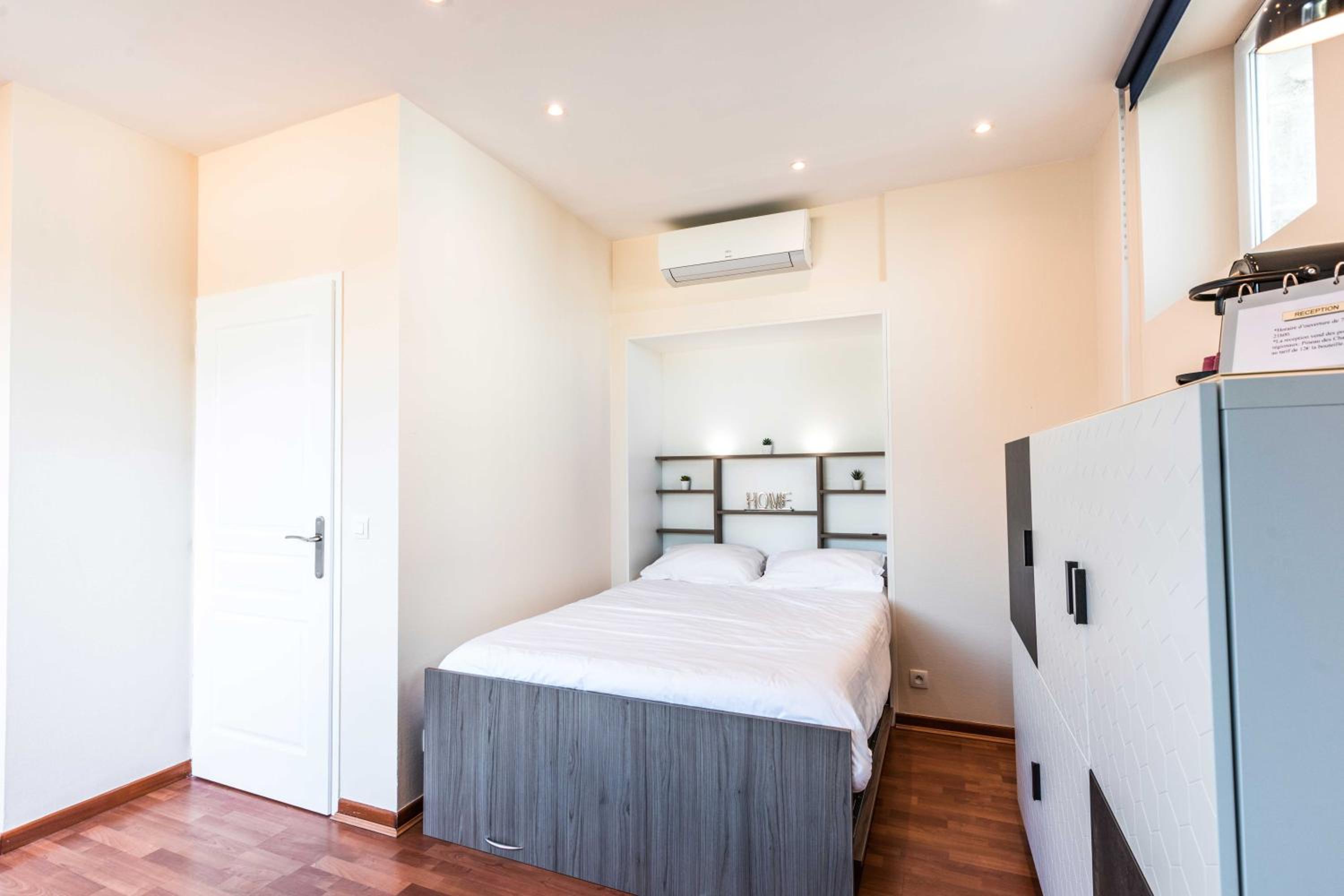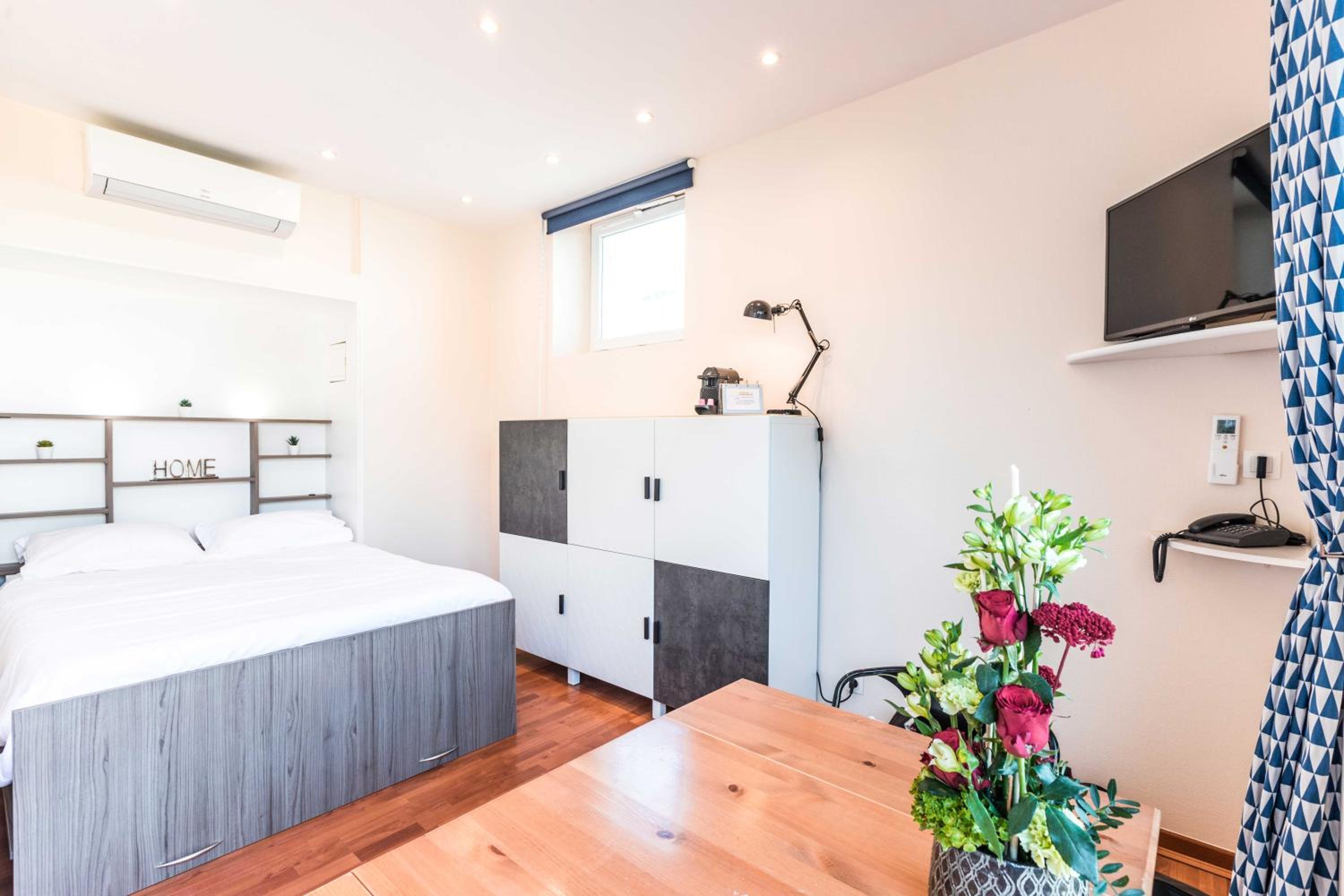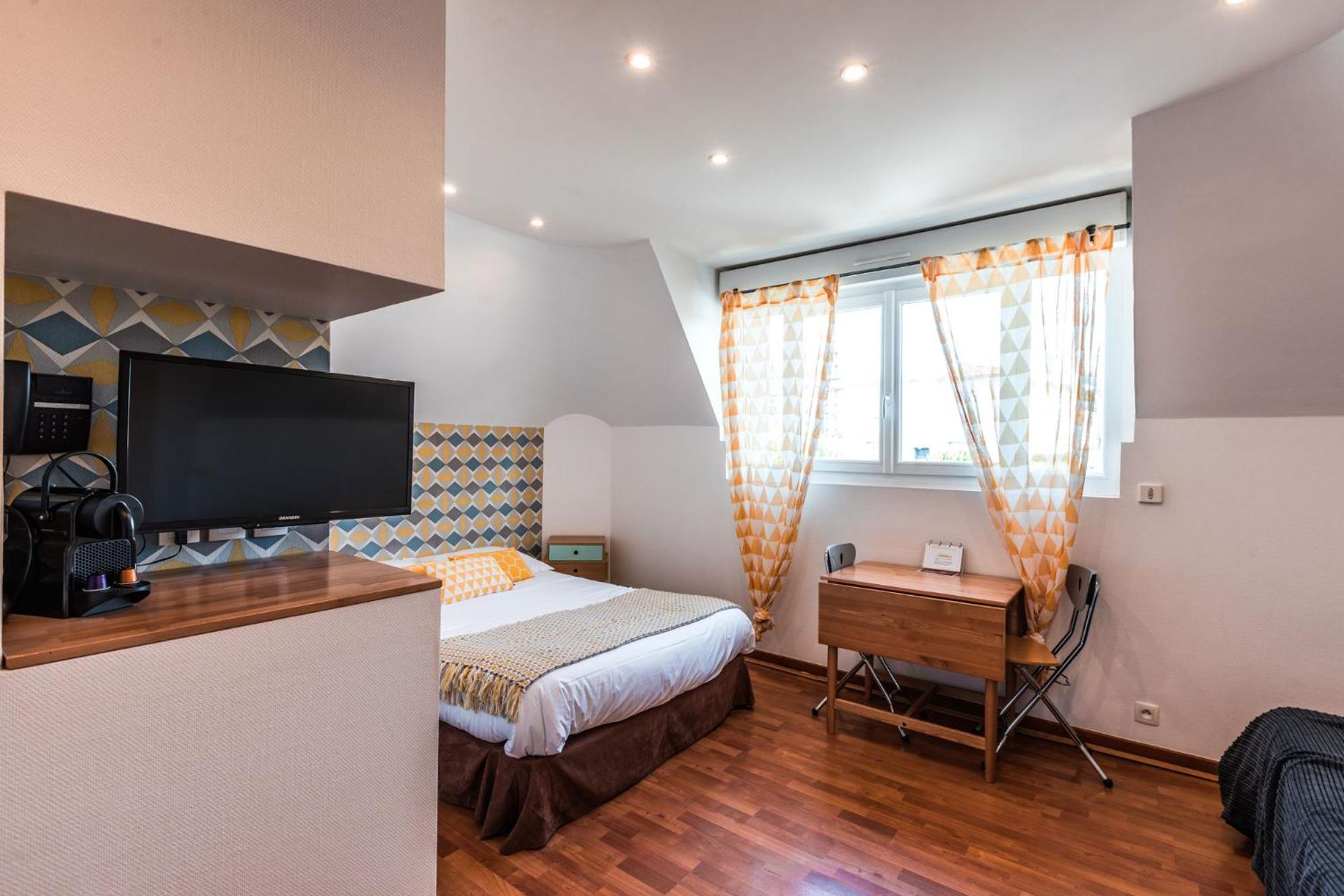 Chambre propre, bien équipée avec entre autre une cafetière, literie confortable.