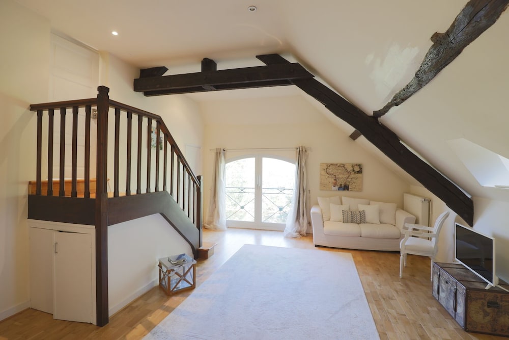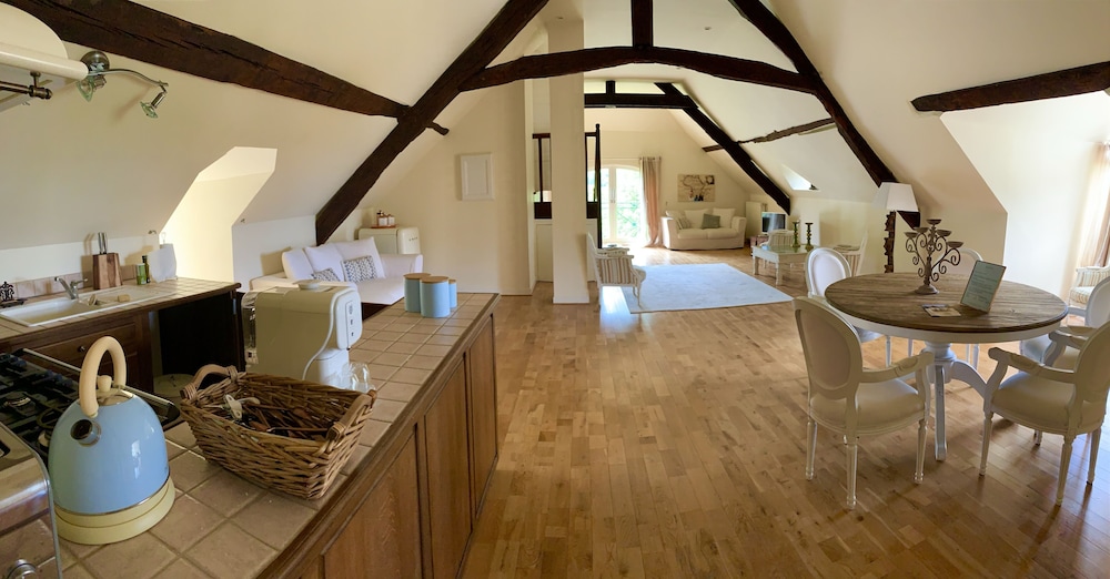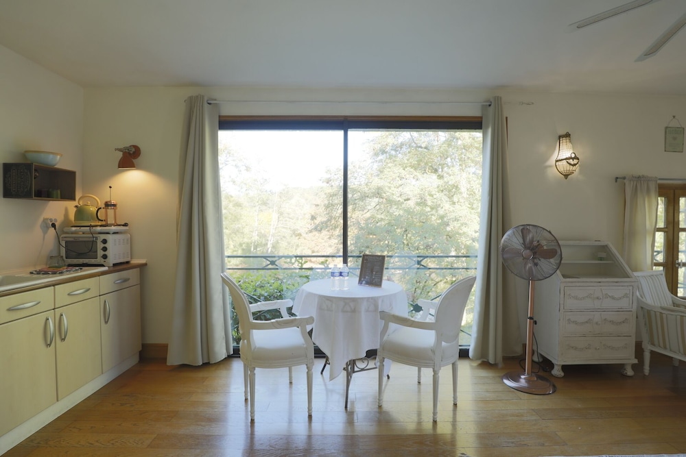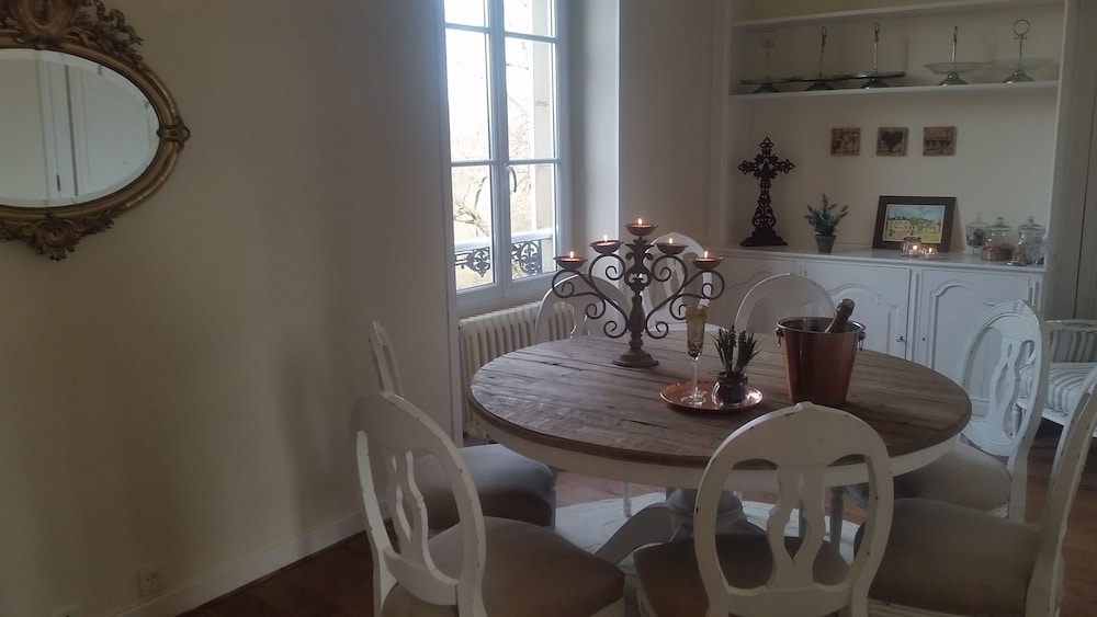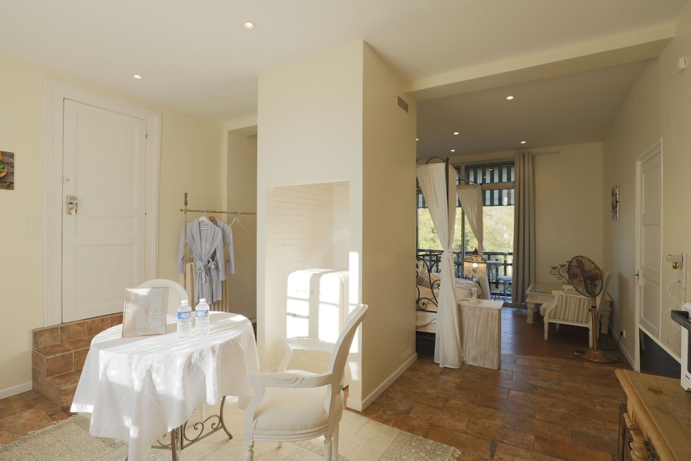 Wonderful family 2-night stay in the top floor family suite (2 adults 2 children). 2 interconnected rooms each with own bathroom and seating area (couch and coffee table). Coffee and tea making facilities and fridge in each room. Glass of wine and beer on arrival by the pool, which was lovely. Pool towels provided, which was great (pool open all day and very clean). Easy free parking too. Delicious breakfast buffet with freshly baked croissants and lots of other delicious items etc and seating on the terrace overlooking the river. Would recommend for a family stay as host was very welcoming and ensured we had everything we needed. Managed to choose the hottest two days (39 degrees) but fans provided in the rooms which made sleeping a lot easier.
