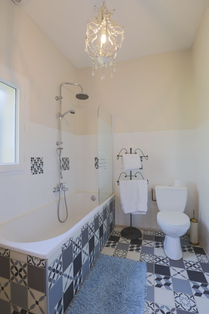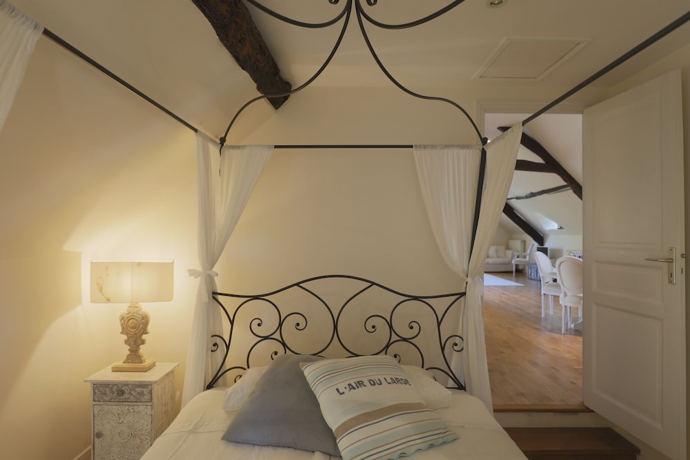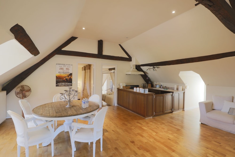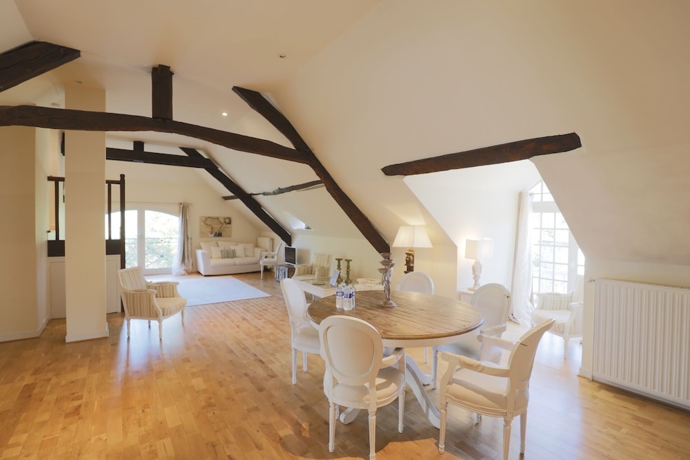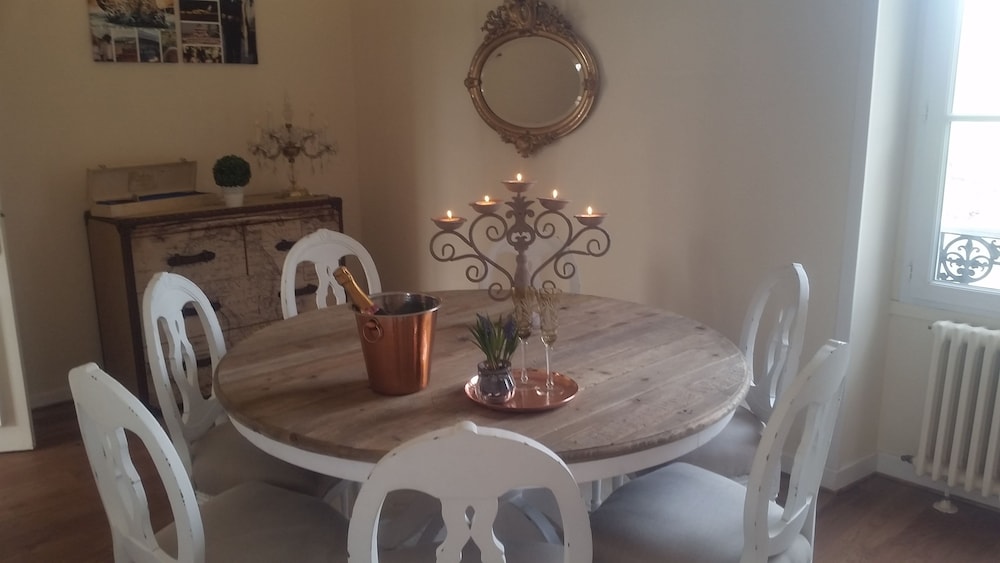 Wonderful family 2-night stay in the top floor family suite (2 adults 2 children). 2 interconnected rooms each with own bathroom and seating area (couch and coffee table). Coffee and tea making facilities and fridge in each room. Glass of wine and beer on arrival by the pool, which was lovely. Pool towels provided, which was great (pool open all day and very clean). Easy free parking too. Delicious breakfast buffet with freshly baked croissants and lots of other delicious items etc and seating on the terrace overlooking the river. Would recommend for a family stay as host was very welcoming and ensured we had everything we needed. Managed to choose the hottest two days (39 degrees) but fans provided in the rooms which made sleeping a lot easier.
