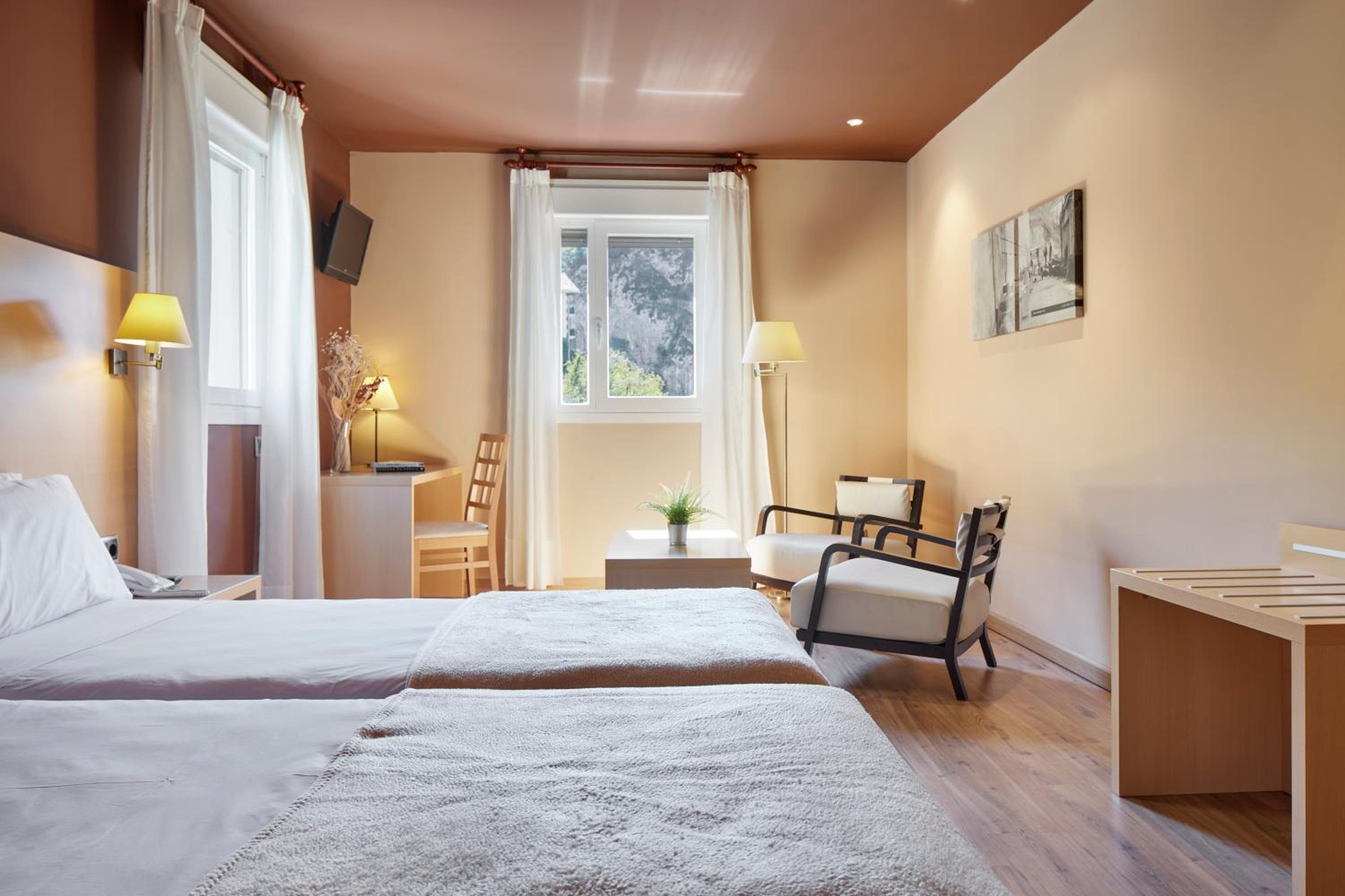 Habitación amplia, vistas muy buenas, personal muy amable desde el caballero de recepción a las señoras del segundo día. Los chicos del restaurante muy amables. Incluso me dejaron ocupar la habitación antes de la hora. La comida rica, parking cerca gratis. Hotel limpio, con calefacción y secador de pelo.