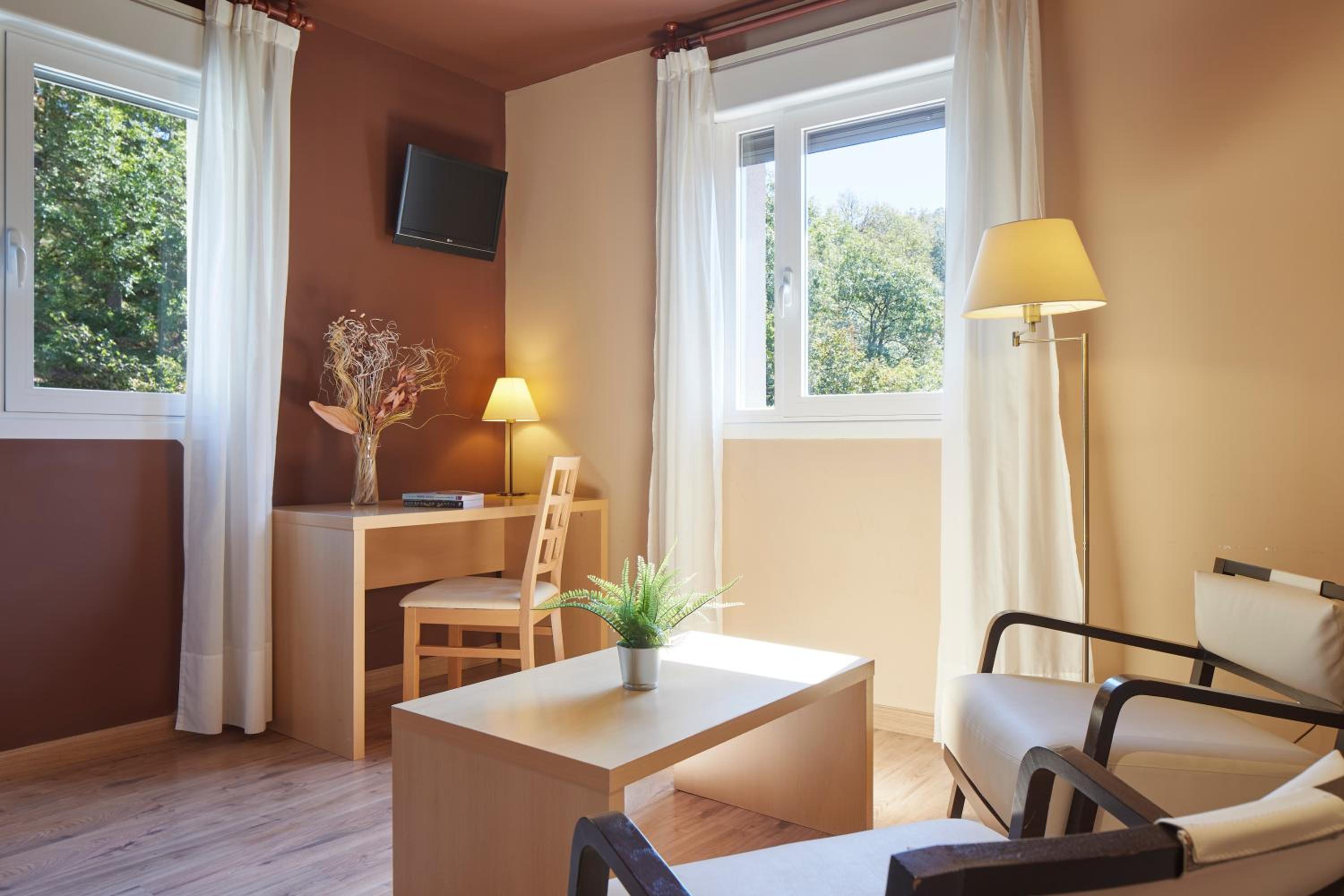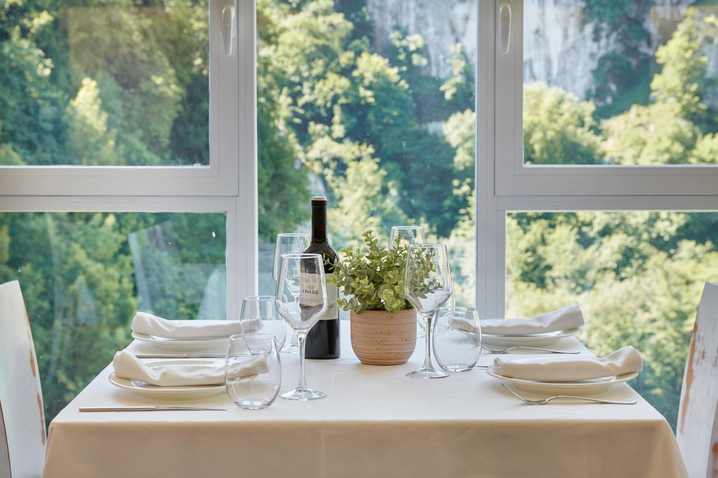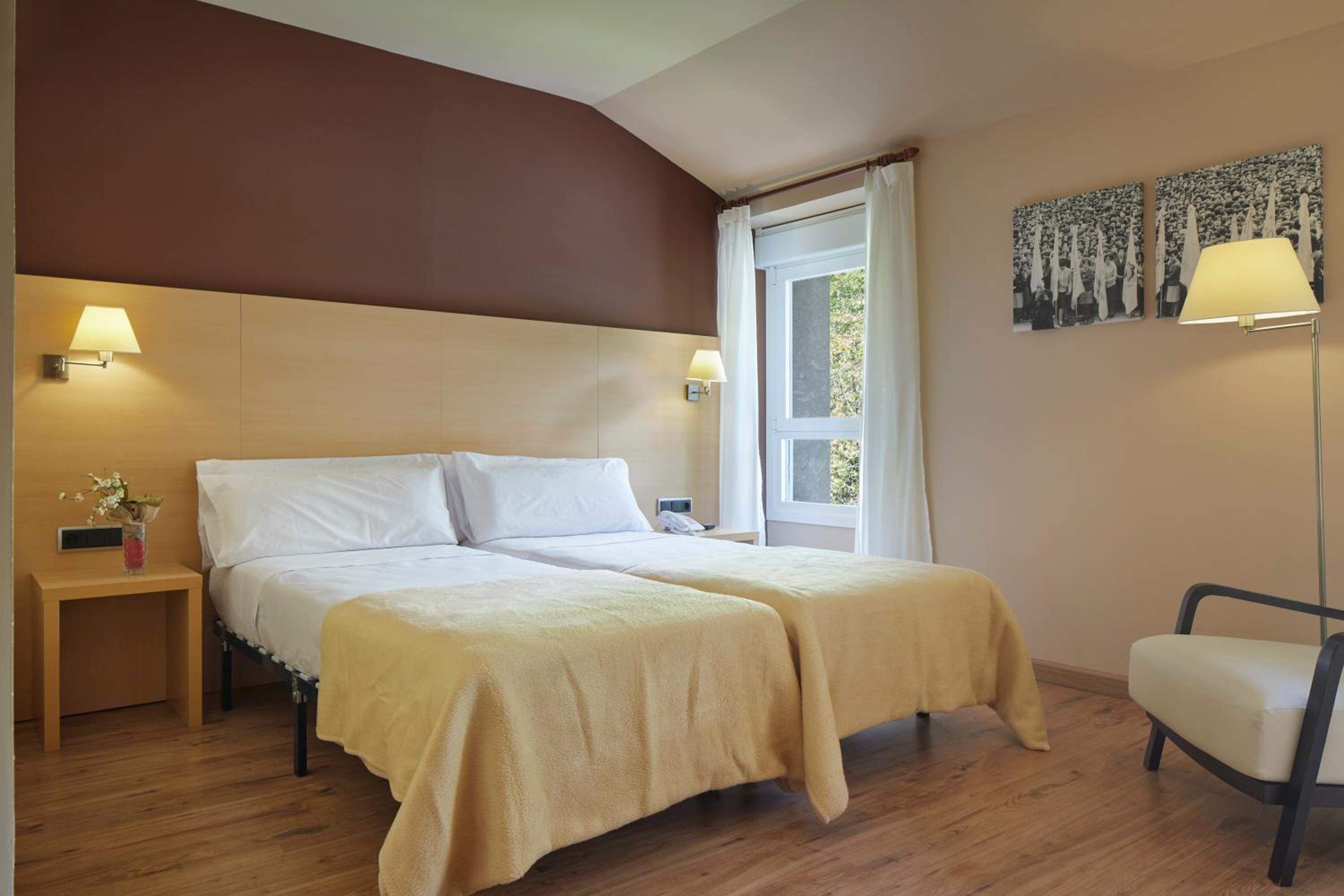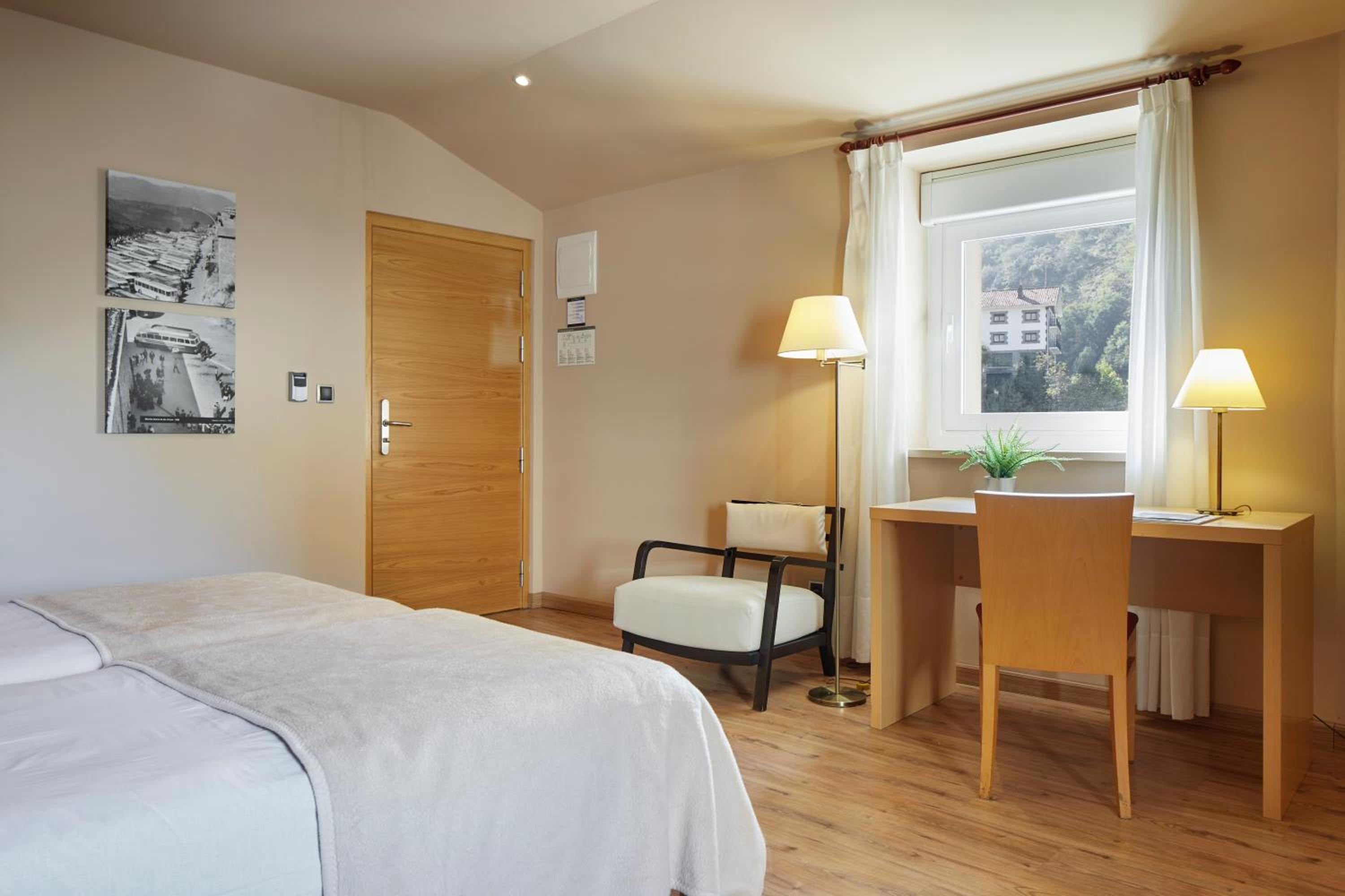 Immerse yourself in the unique charm of Hotel Arantzazu's typical stone architecture paired with elegant and modern interiors. Relax in the comfortable lounge area or indulge in delicious meals at the traditional restaurant and café-bar.