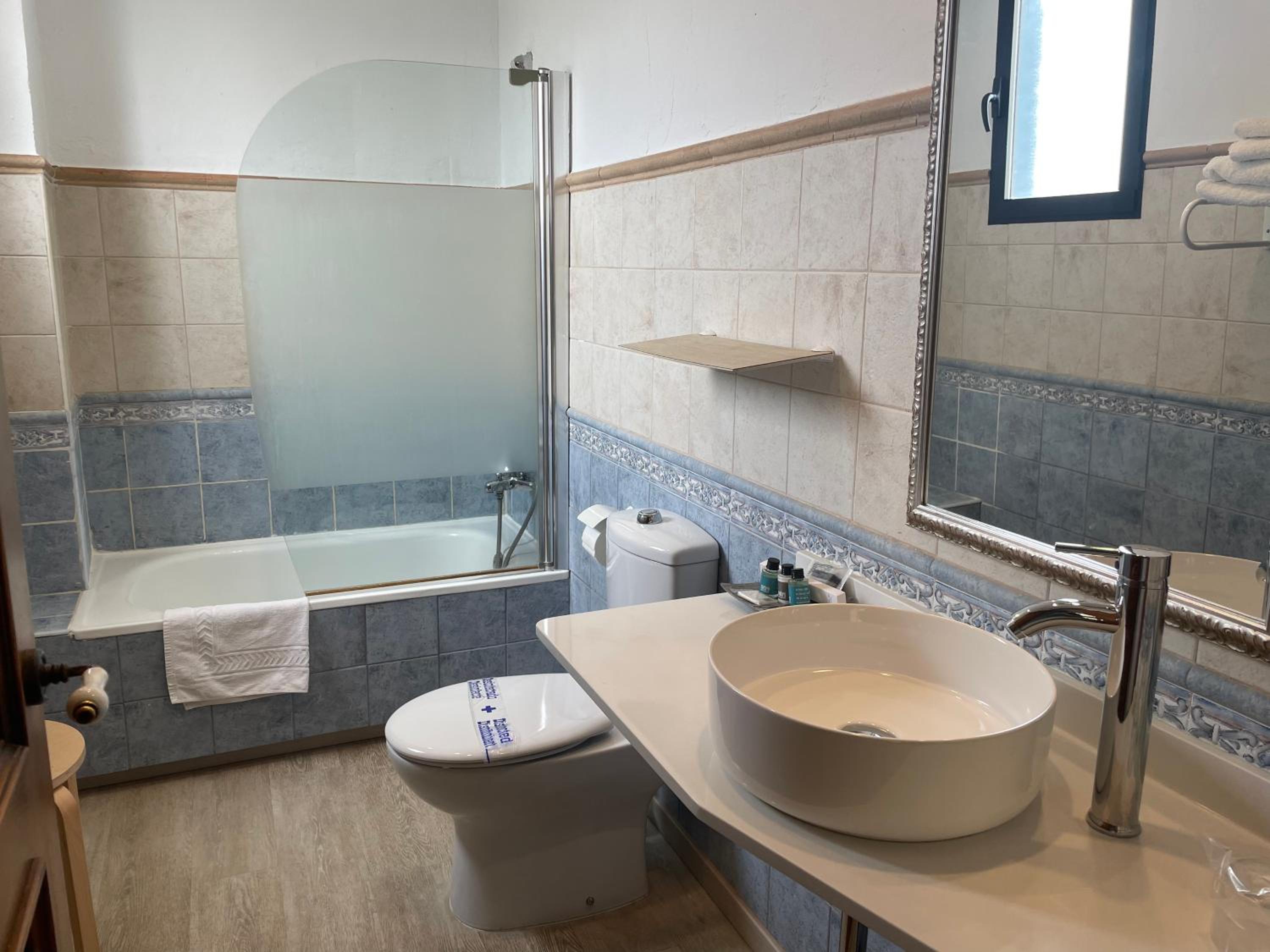 La bañera es incómoda, un poco alta y peligro de resbalar. La ducha muy calcificada