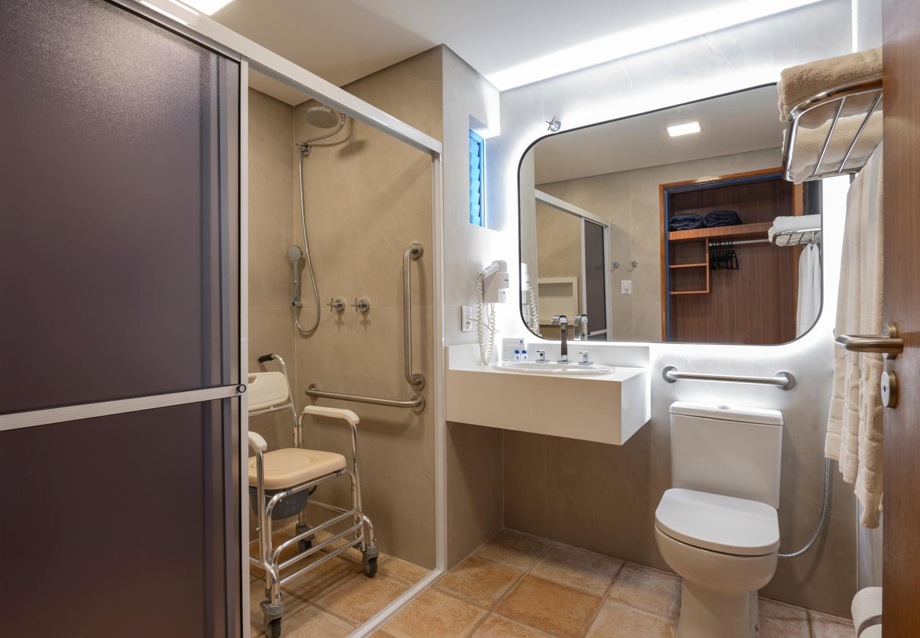 Hotel limpo, piscina térmica maravilhosa, com acesso por degraus e a externa também reformada e com fácil acesso com degraus e corrimão. Restaurante ótimo. Limpeza boa. De frente pro mar. Lugar sossegado. Lounges agradáveis. Pátio interno decorado muito bonito. Camas confortáveis. Adoramos.