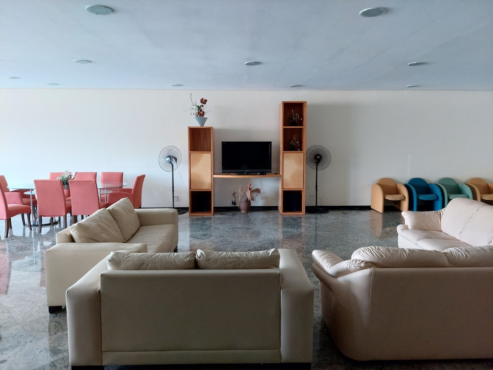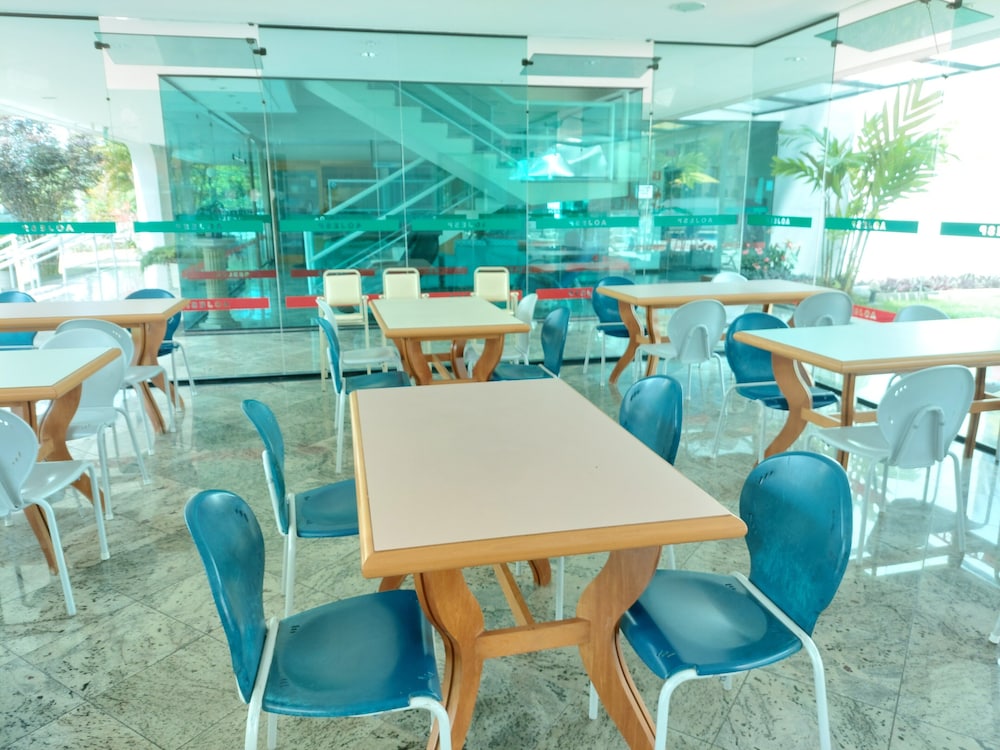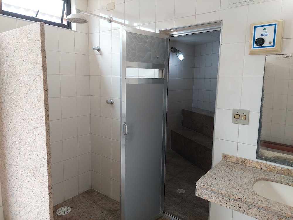 Vaso sanitário entupido (tivemos que improvisar um balde para jogar água e tentar desentupi-lo); chuveiro demorou um pouco para atingir a temperatura morna/quente; o frigobar estava desligado quando chegamos, então os alimentos e bebidas não ficaram em temperatura adequada o tempo todo; assim como o ar condicionado que estava fora da tomada - e estava escondida, então tivemos que perguntar ao recepcionista se havia algum problema -; o café da manhã tinha pouca variedade; o quarto intitulado “duplo”, na verdade, é um quarto pequeno, com uma cama queen size com duas camas de solteiro embutidas (que não abrem completamente); a TV só aceita streaming - sendo necessário acessá-los com os dados da respectiva assinatura do hóspede -, não pega canais fechados ou abertos. Pelo valor da diária, não valeu o custo-benefício. Obs.: não utilizamos a piscina (que pareceu bem funda), o bar da piscina e a sauna, portanto não pudemos avaliá-los.