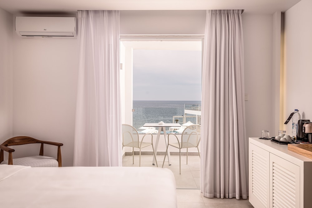 Beautifully renovated hotel, nice pool with a great restaurant and bar that’s looks over the sunset. Katerina at the reception is very helpful in any requests you may have! Traveling with mobility impaired grandmother is not an easy task in Greece, but Katerina and Stavro are both very kind and understanding and provide great customer service to help my grandmother navigate the hotel.