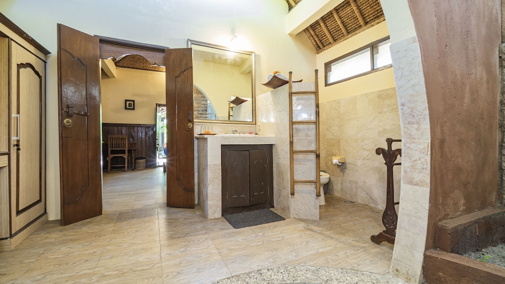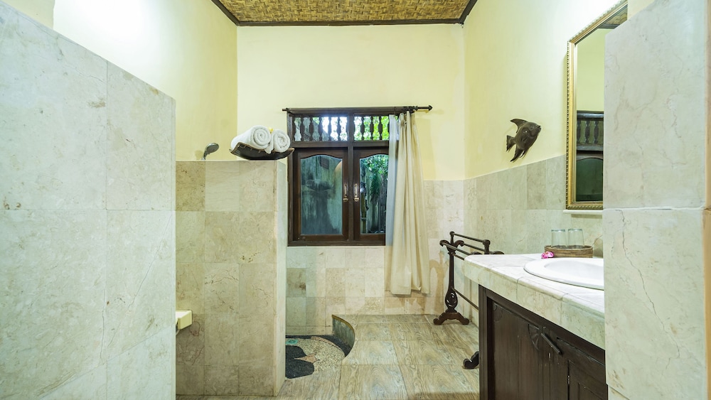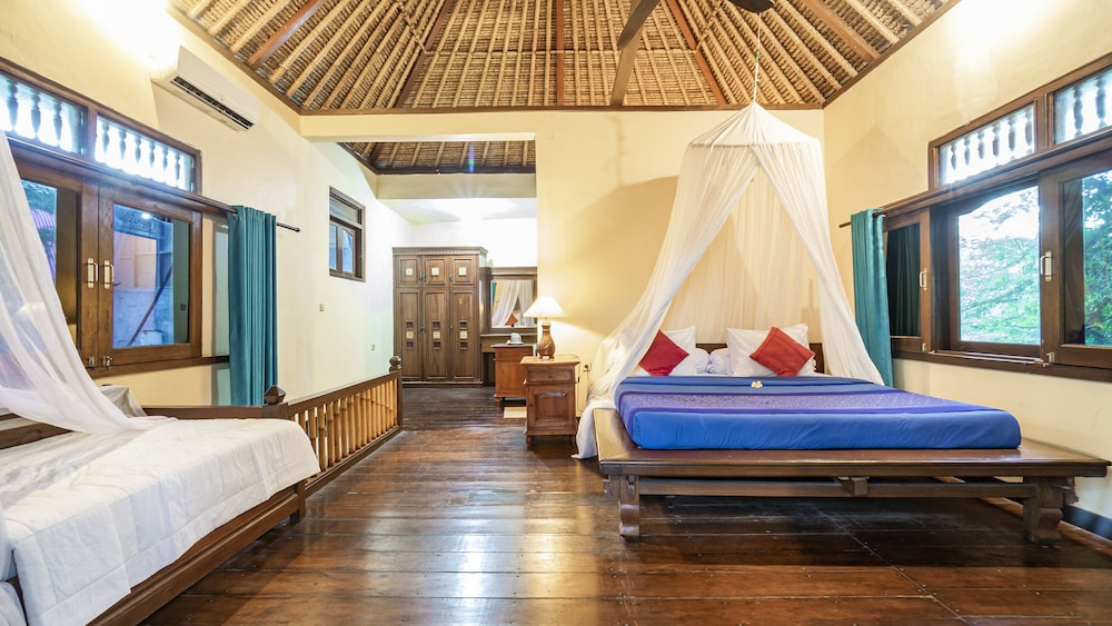 Two villas rented by our family and mine was the large upstairs one at the front, overlooking the beach. The rooms were spacious and clean and well air-conditioned. Lots of ants though so, you cannot leave any food for even the shortest moment. Mosquito nets were a great benefit and moreso for the flies. Our stay was very comfortable and there was access to hot water in the showers but, only just for a few minutes. Breakfast on site was delicious and prompt every morning. Swimming pool was cool compared to the sea water so, proved very refreshing. Afternoon tea and cake was most welcome and the team were always so very helpful. The villas are located close to turtle point and so just a short stroll to swim with turtles. Away from the busy-ness of town yet close enough to take a nice walk into town. Will definitely visit again. thank you Alam Gili