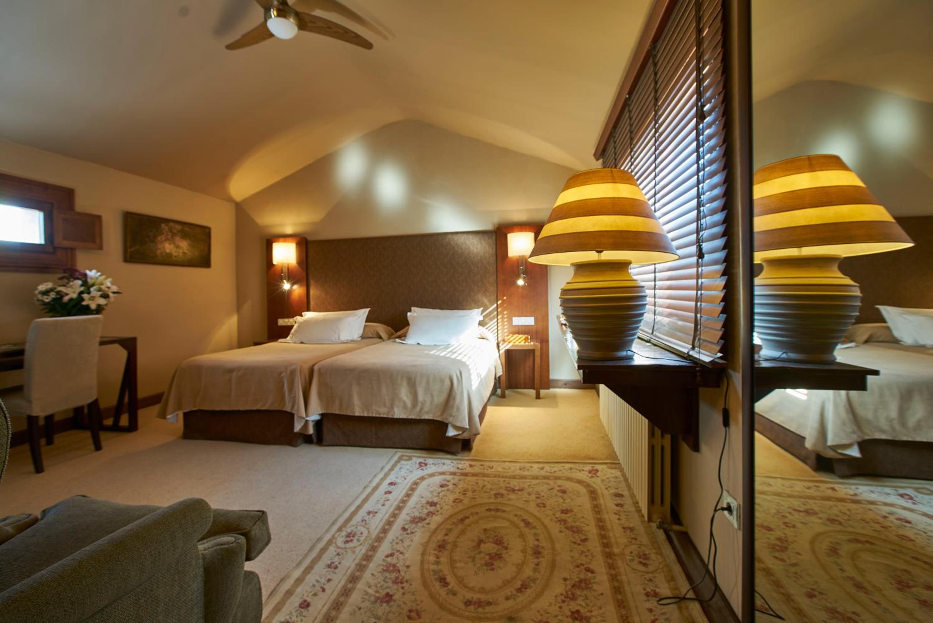 Indulge in the charm of rustic wooden finishes in our elegantly decorated rooms equipped with a TV, DVD player, and a private bathroom stocked with complimentary toiletries and a hairdryer.