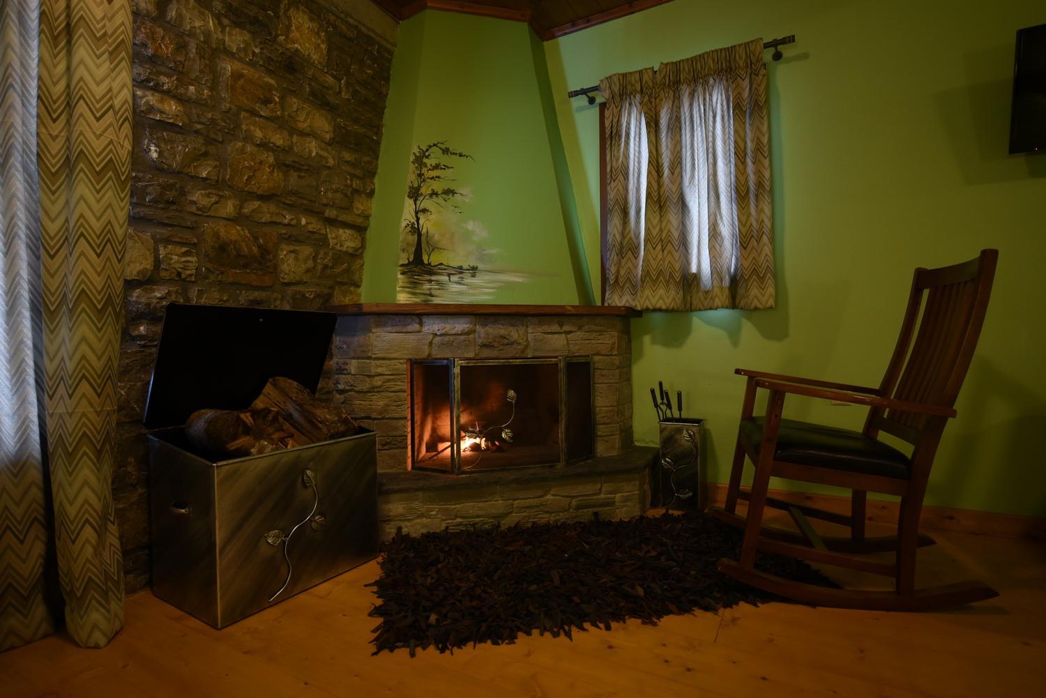 Cozy Common Areas: Unwind in our central building's lounge spaces with picturesque countryside views. Guests can gather around the fireplace, play board games, and enjoy the serene atmosphere.