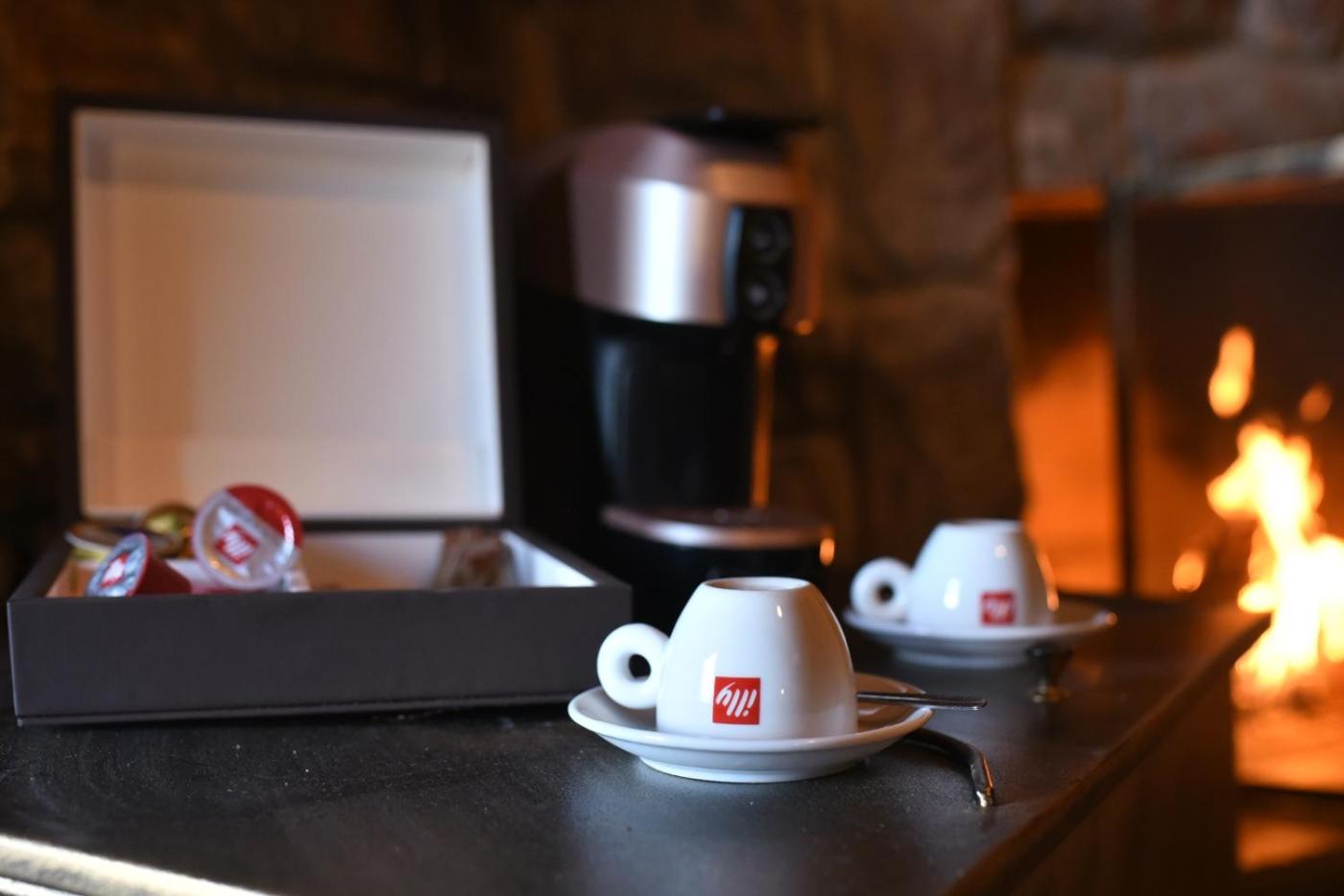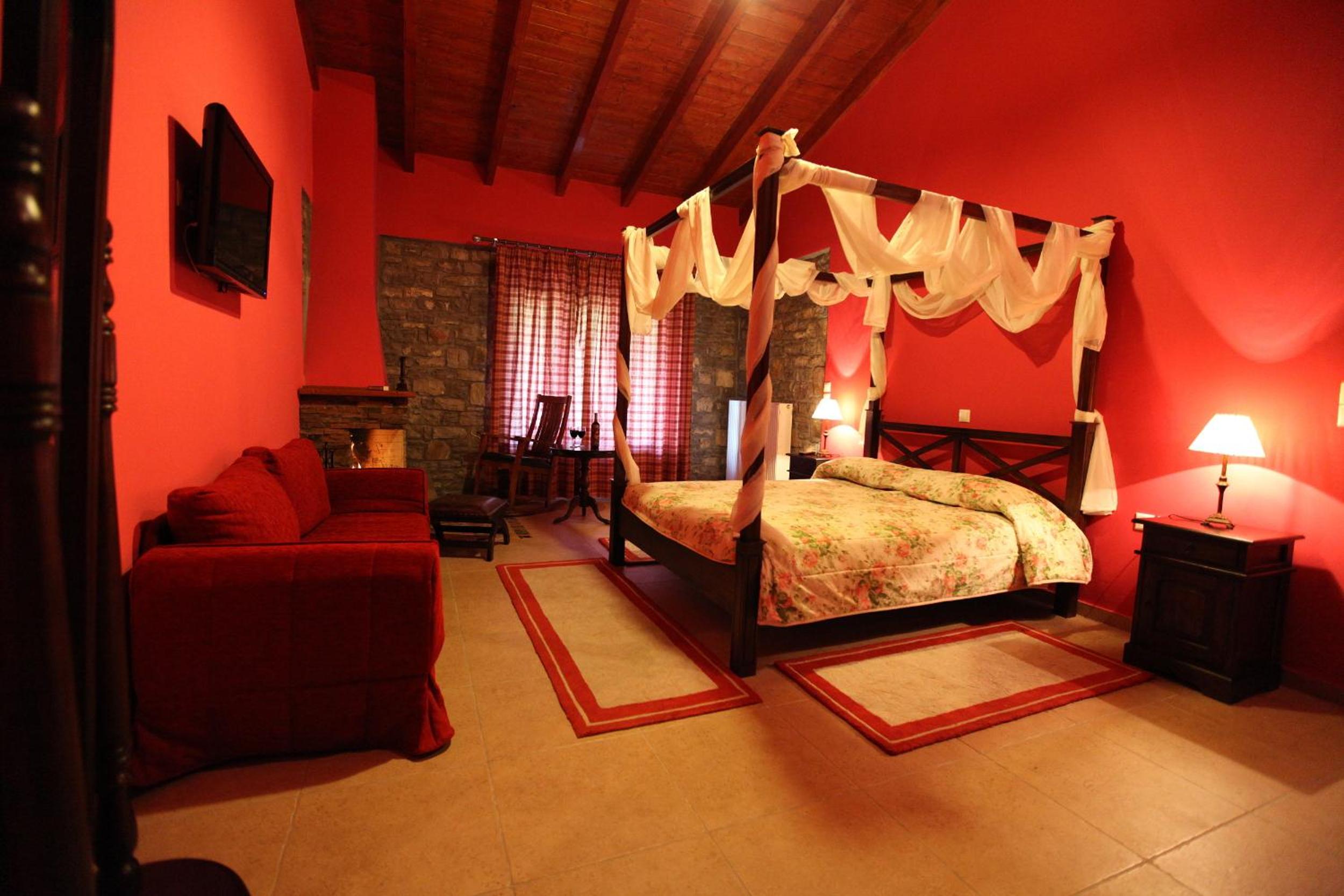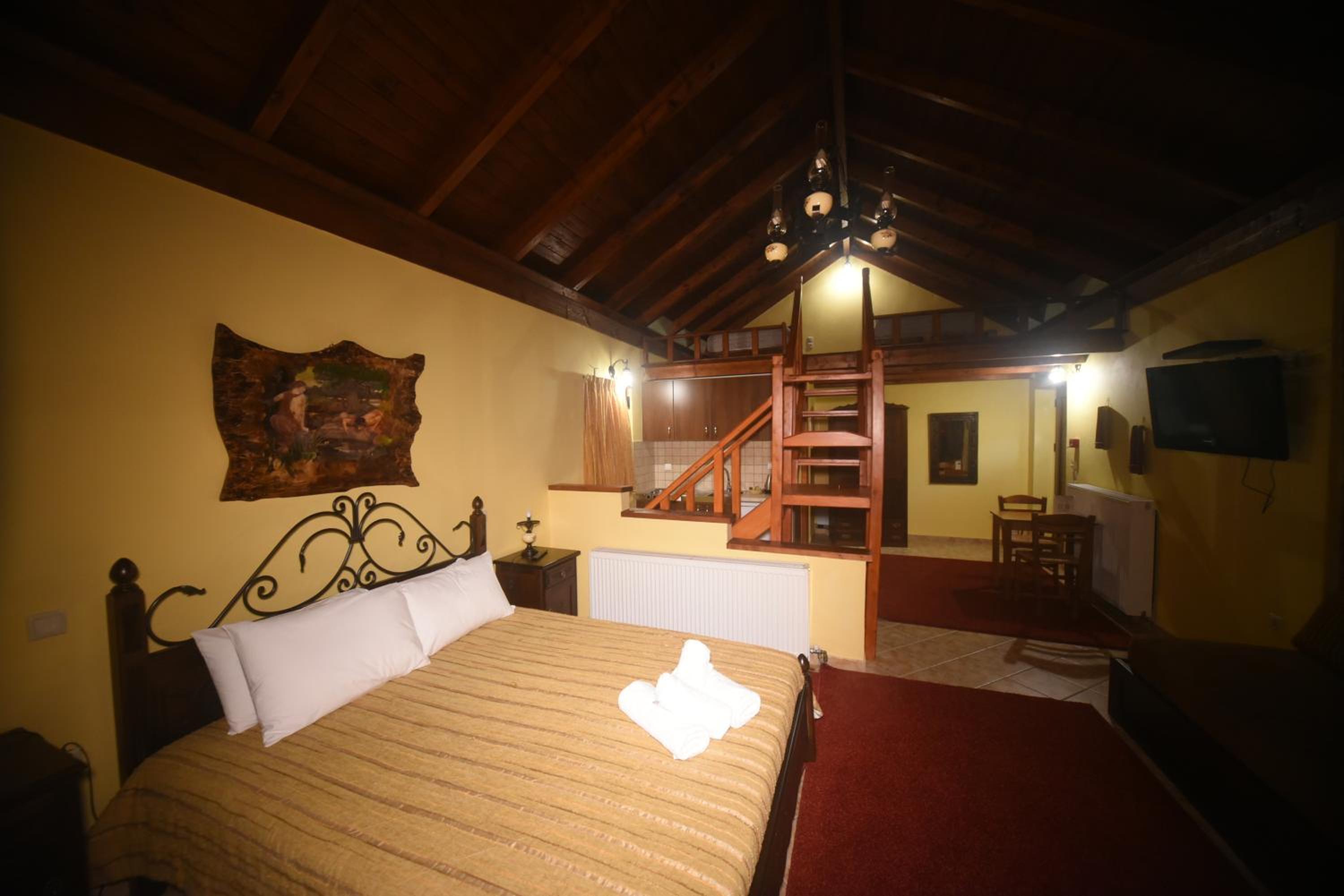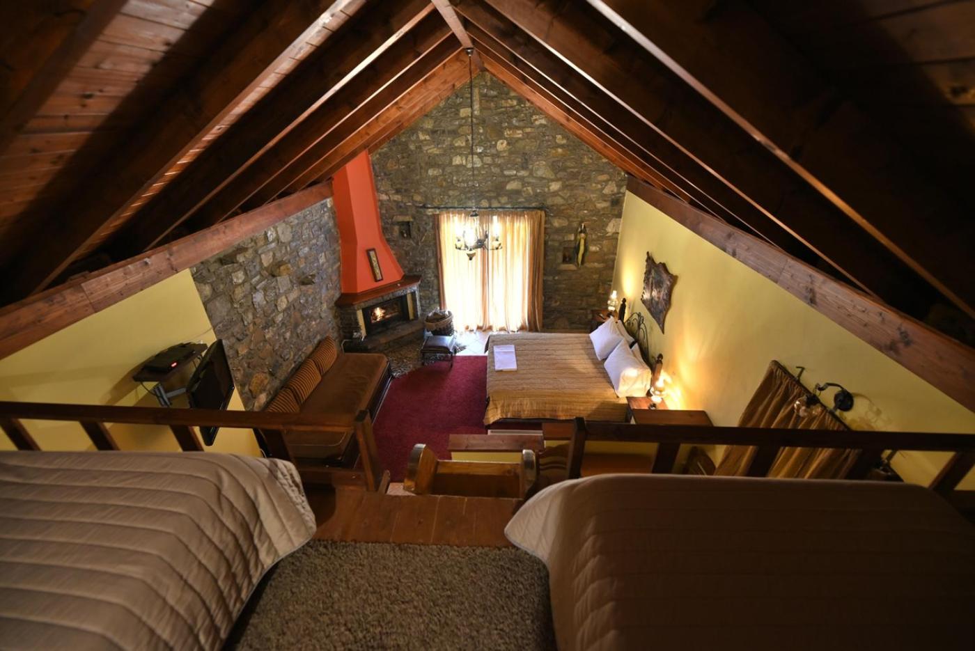 Traditionally Decorated Accommodation: Experience warm colors, stone walls, and wooden ceilings in our rooms, each equipped with an LCD TV and fridge. Select units feature a kitchenette and fireplace for added comfort.