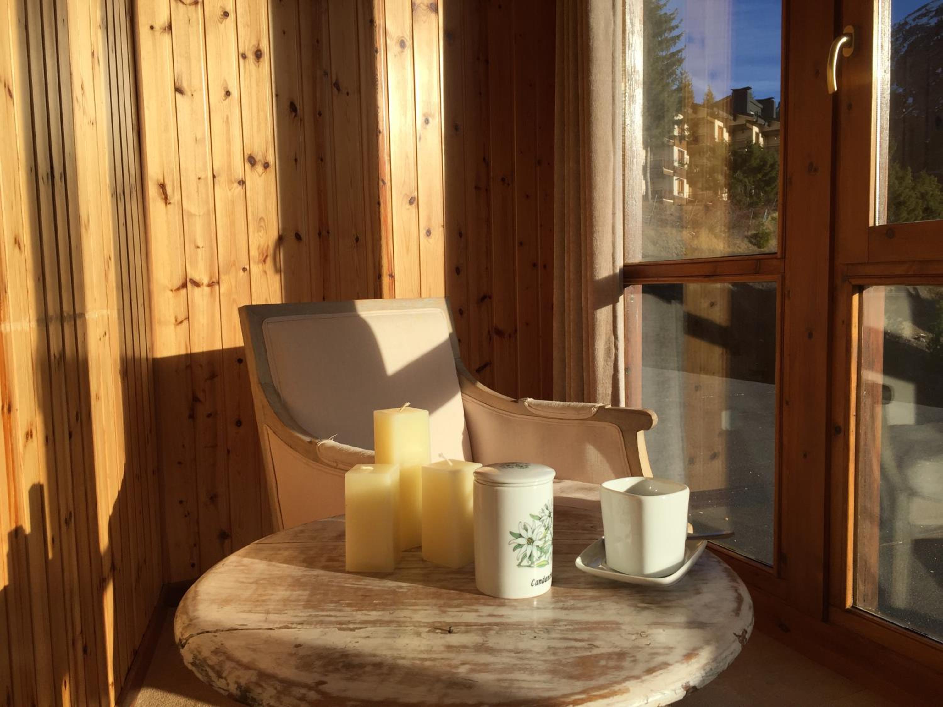 La cama era muy cómoda y la terraza acristalada con vistas a la montaña tenía mucho encanto.