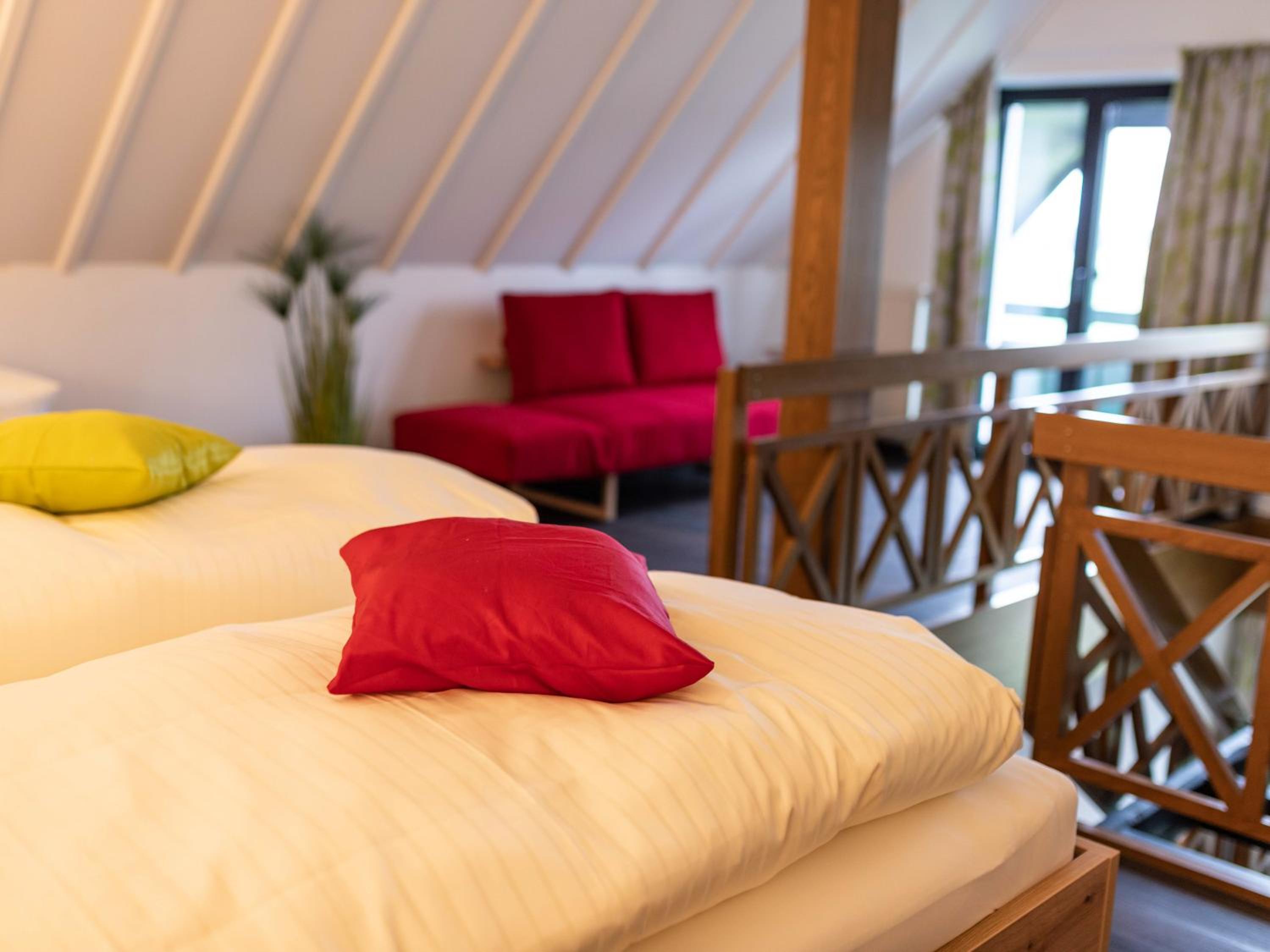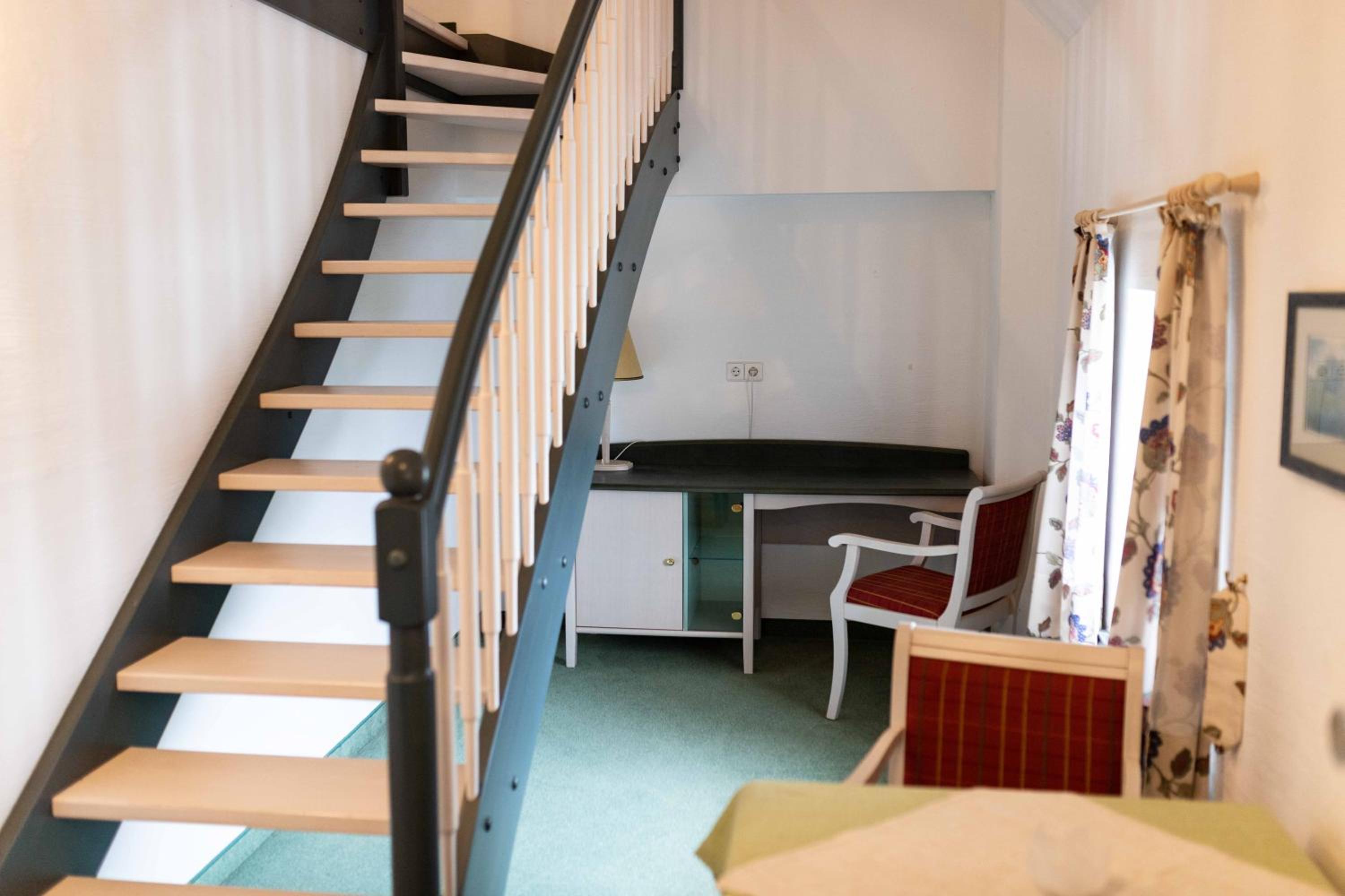Das Zimmer war vergleichbar mit einem Apartment. Auf zwei Etagen, mit einer Sitzgelegenheit für sechs Personen. Das war sehr praktisch, so konnten wir nach dem Klassentreffen mit allen, die dort übernachtet haben, einen Absacker trinken.