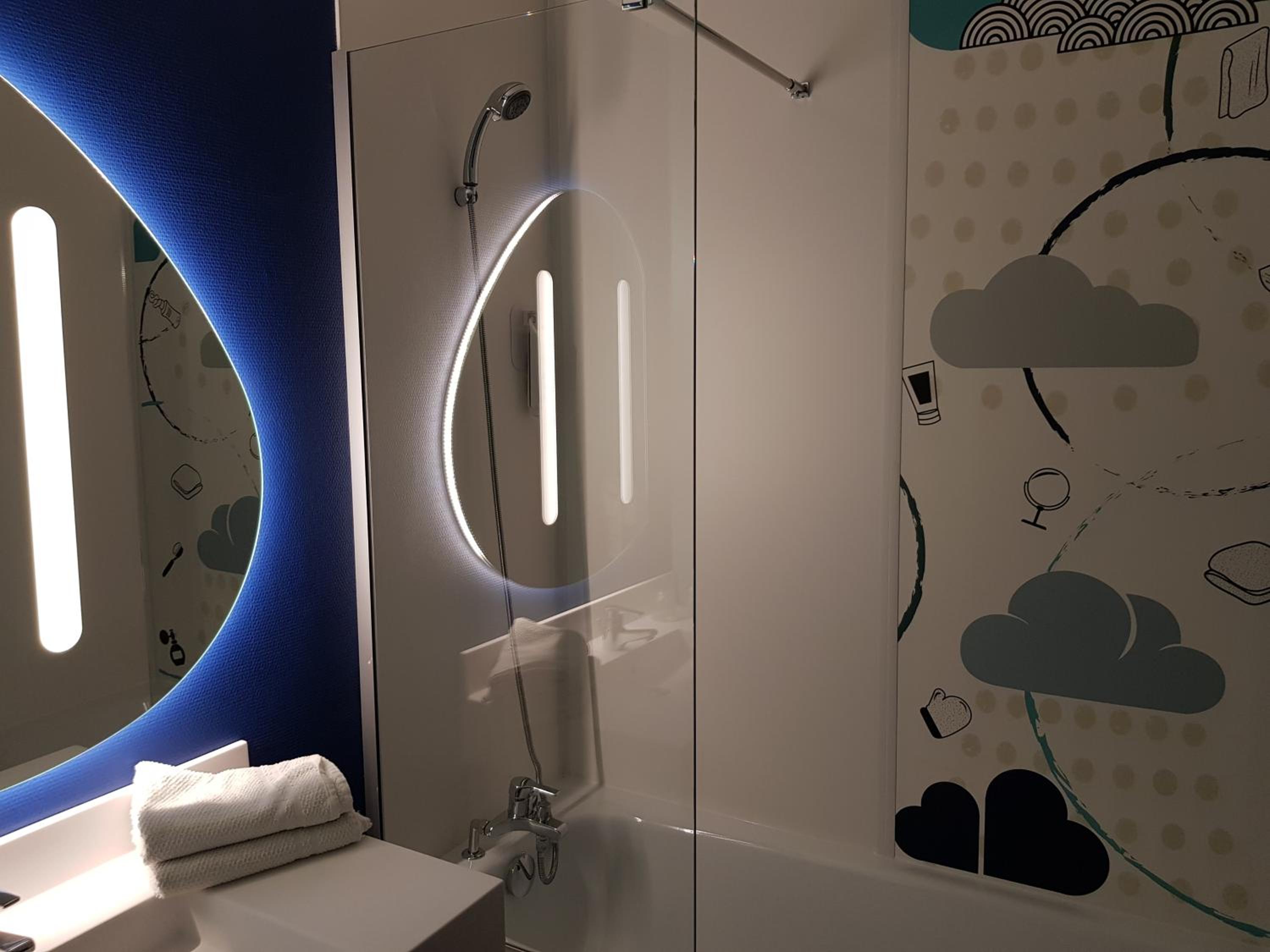 Manque d'équipements (pas de sèche cheveux, pas de porte serviettes, une serviette de toilette sale) matelas et oreiller très durs, peu d'espace de rangement.