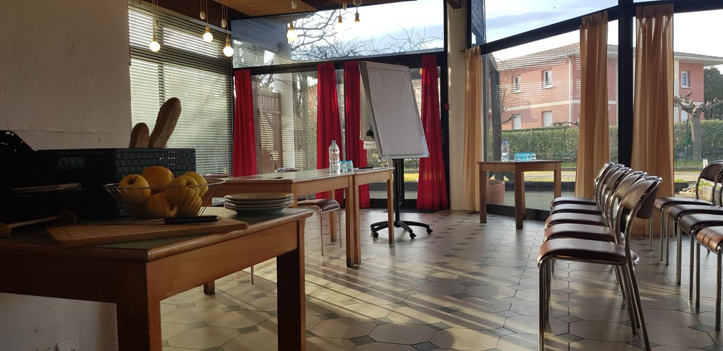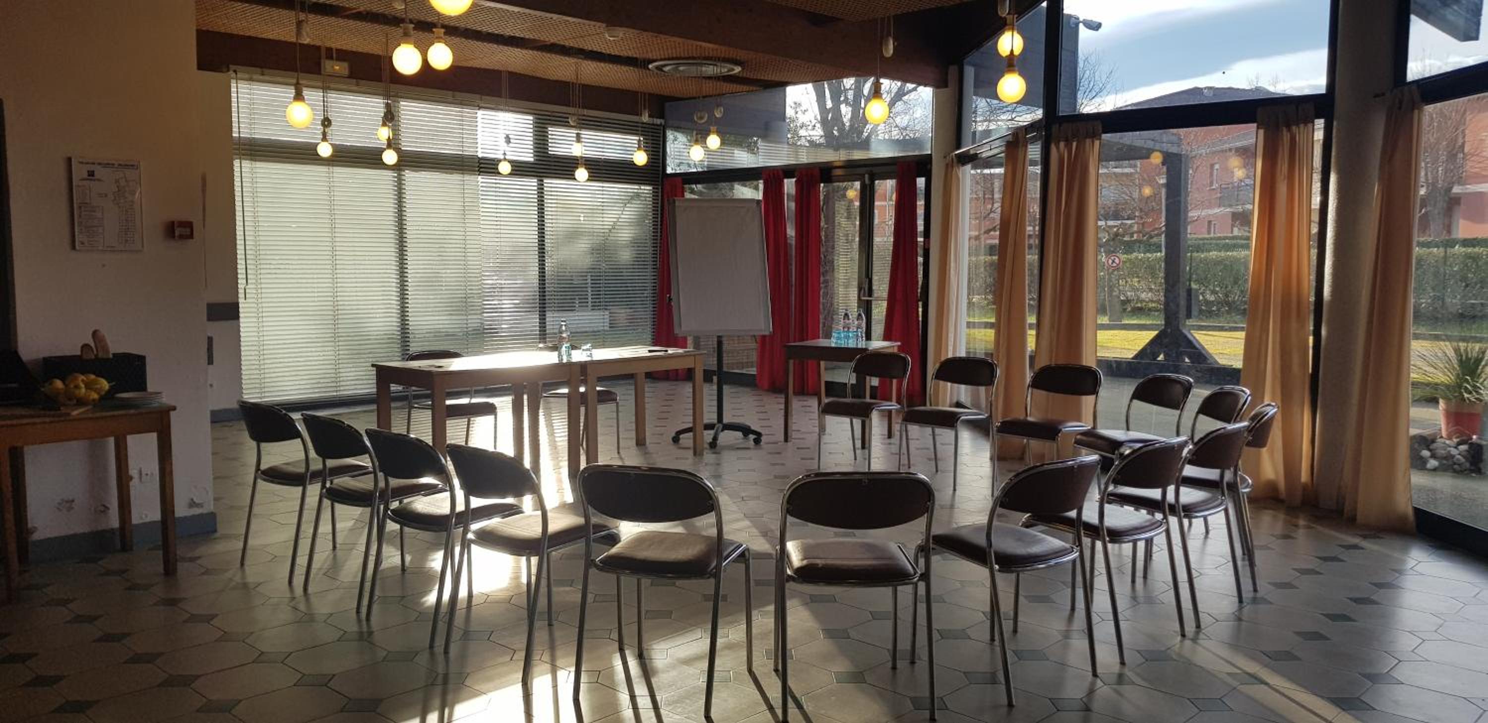 les aménagements des tables extérieurs pour petit-déjeuner qui pourrait être plus convivial.