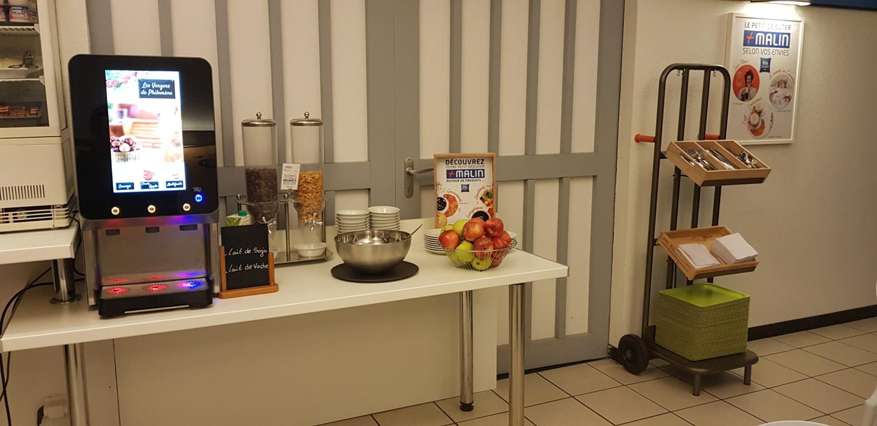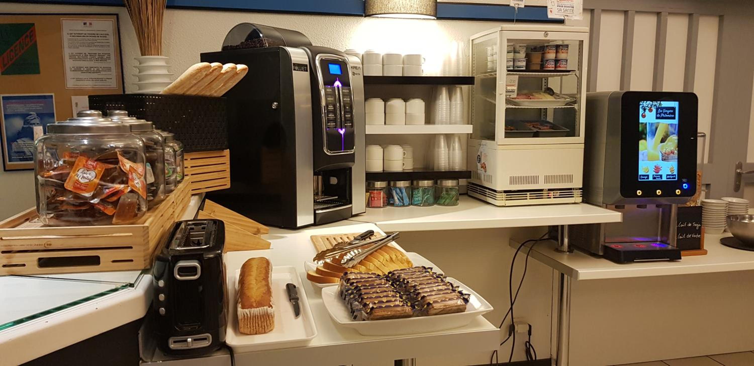 en général les équipements de la chambre et les distributeurs de café et boissons à l'accueil