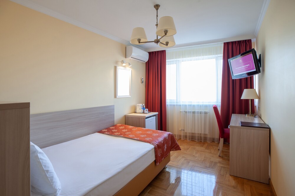 The hotel is right in the centre of Krasnoyarsk. The rooms are comfortable. The staff are very helpful, much more than the usual Russian regional city hotel staff. The orange decor in the lobby is outrageous. There are some surprisingly good restaurants in a complex just next door. I don't see why you'd stay anywhere else in Krasnoyarsk..