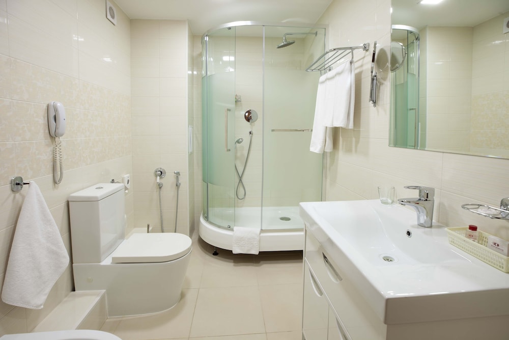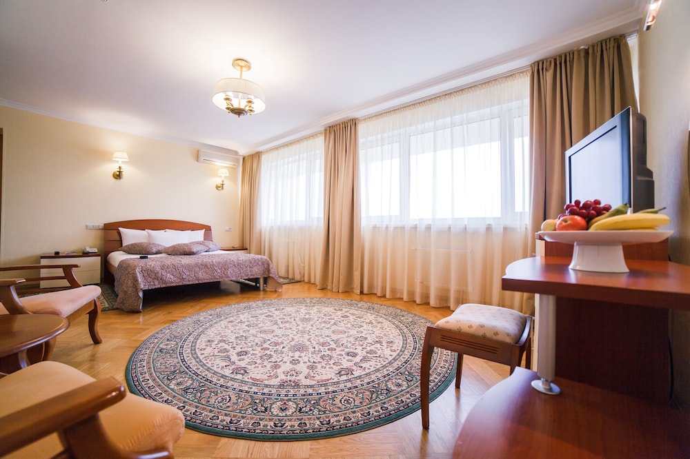 I stayed in this hotel recently and very much delighted from its stuff and hospitality. It has almost all the necessary facilities including business center, kids play room, beauty center, sauna, coiffure, ironing room, ATM's and even a dentist. I stayed on the 8th. Floor which has tremendous view of the river Yenisei, State Opera and the famous bridge. Room I stayed was quite spacious with a French bed. There is a safe and a fridge as well as a kettle is in the room. A bathrobe was also in the wardrobe. Very clean and no odour at all. The housekeeping team is really great and they do their best to feel yourself comfortable. The restaurant of the hotel has very delicious menus for lunch and dinner as well. Breakfast was very nice with varieties. I recommend this lovely hotel to all.