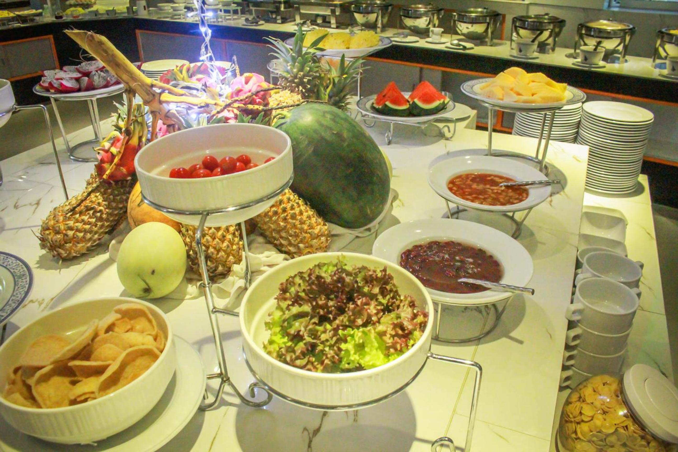 Das Frühstücksbuffet war nicht so toll. Das Weissbrot lag nicht abgedeckt da und trocknete vor sich hin. Der gekochte Schinken, die Würstchen sowie die Spiegeleier in den Warmhaltebehältern waren kalt. Die Thailändischen Speisen waren auch nicht warm sagte meine Frau. Die Teller am Tisch wurden erst abgeräumt nachdem man den Tisch verlassen hat und nicht zwischendurch so wie ich das von anderen 4 Sterne Hotels gewohnt bin. Als Obst gab es Ananas und Wassermelone das war ok.