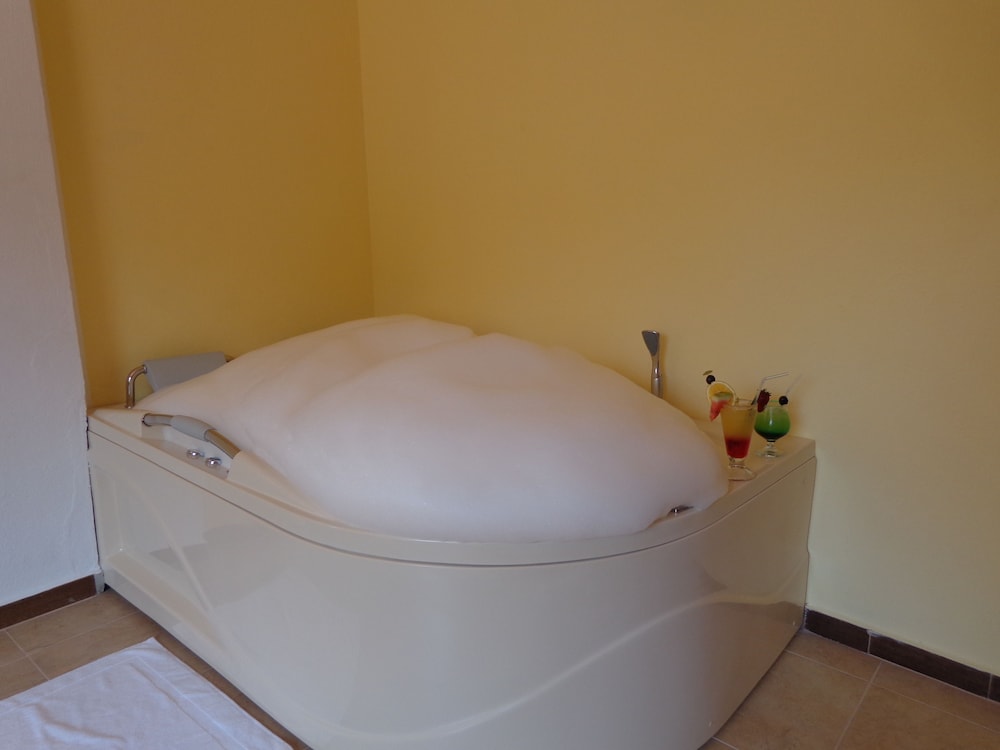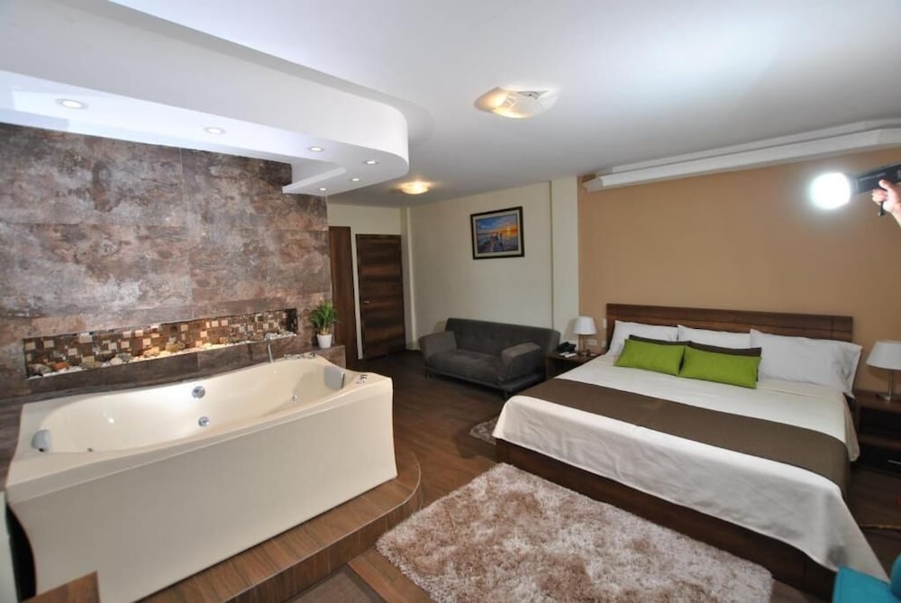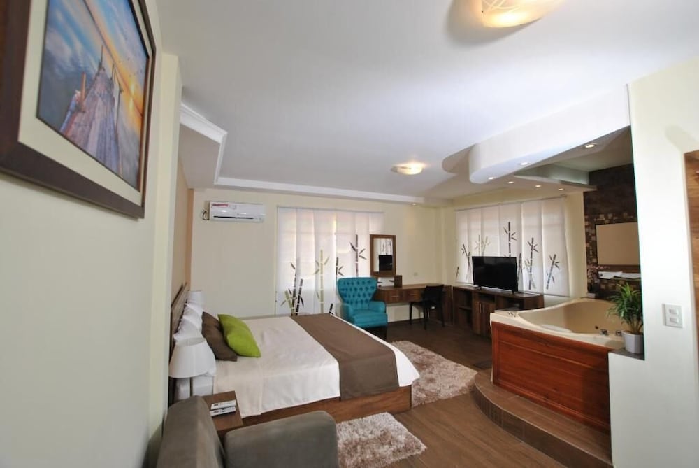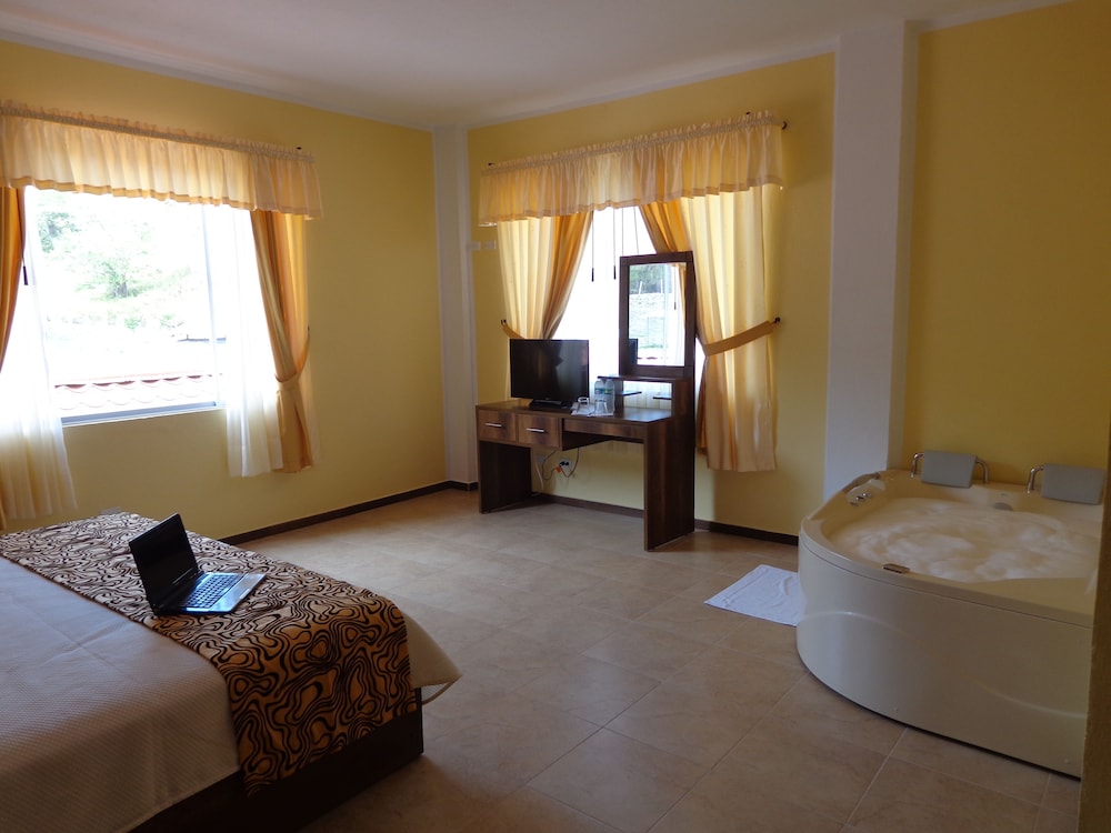 El lugar es bonito, pero no había comida pasado las 21H00, nuestra habitación tenía jacuzzi y estuvo bien sucio. El personal del hotel muy amable.