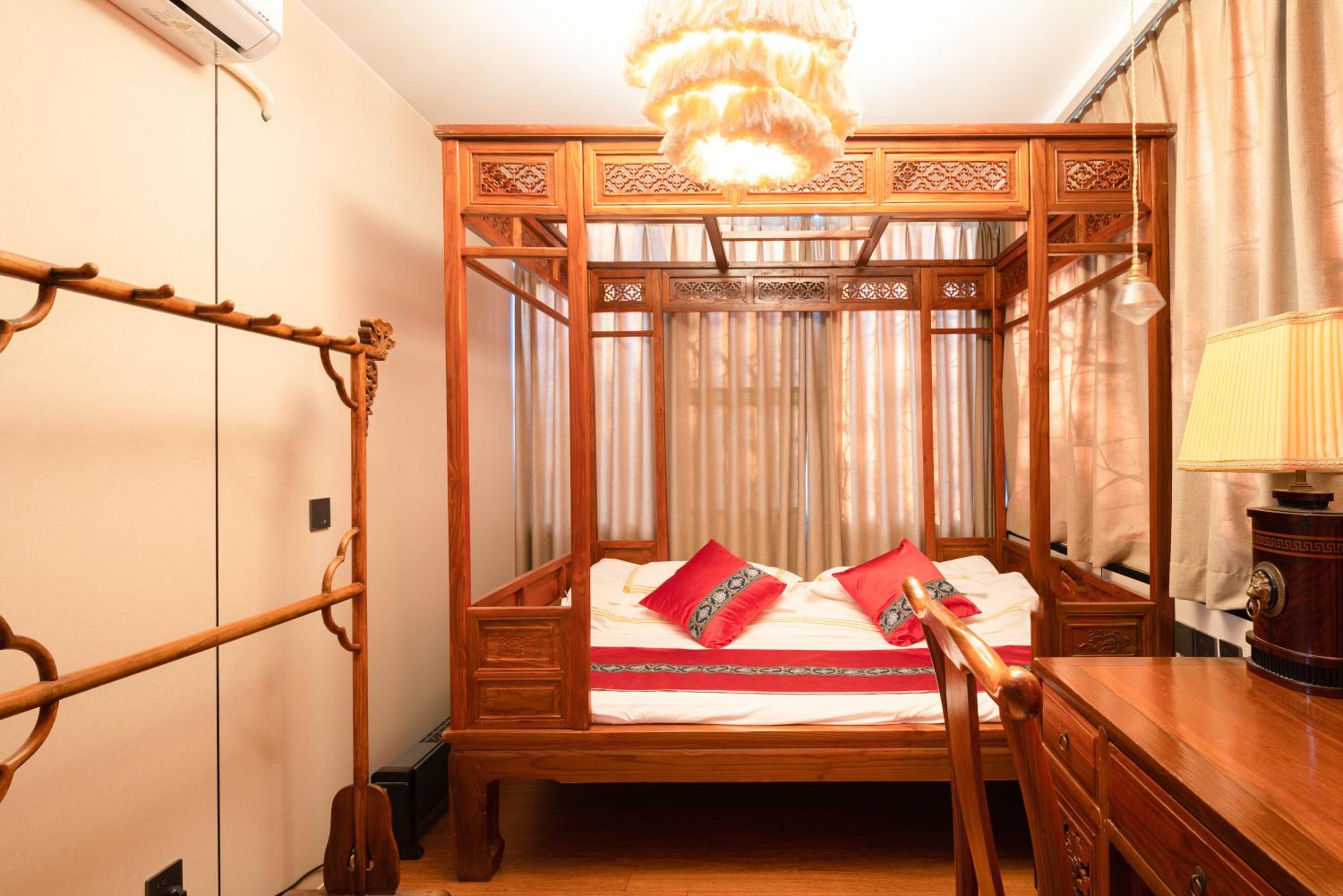 Elegant Accommodations: Immerse yourself in traditional Chinese decor with hand-carved Dynasty-style furniture. Enjoy modern amenities including free WiFi, air conditioning, and a private bathroom with complimentary toiletries.