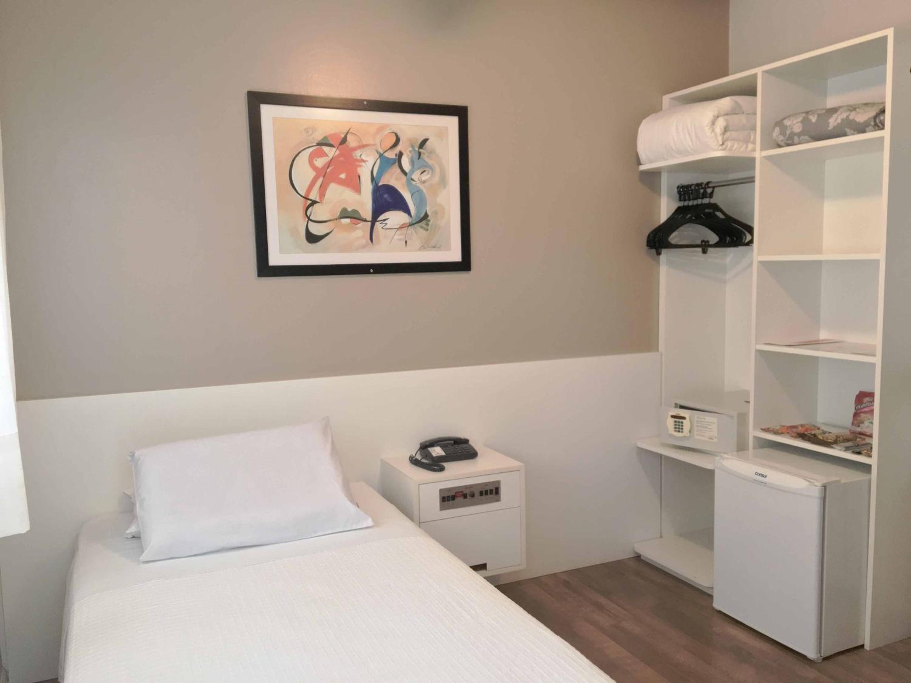 Café da manhã muito bom, com grande variedade de frutas. Ovos mexidos, salsicha com molho, pão de queijo, variedade de frios, pães e bolos. Limpeza impecável, toalhas e lençóis de algodão, Tomadas ao lado da cama, controle de luzes em painel na cabeceira, frigobar, secador de cabelo, split, mesa e cadeiras, quarto amplo. Minha nota tem como base também a classificação como hotel 3*. Todo o staff gentil e atencioso, as meninas do café da manhã uma simpatia , com reposição impecável. O hotel não tem bar nem restaurante, mas conta com venda de bebidas/ salgadinhos e dispõe de chá e café para os hóspedes no saguão.