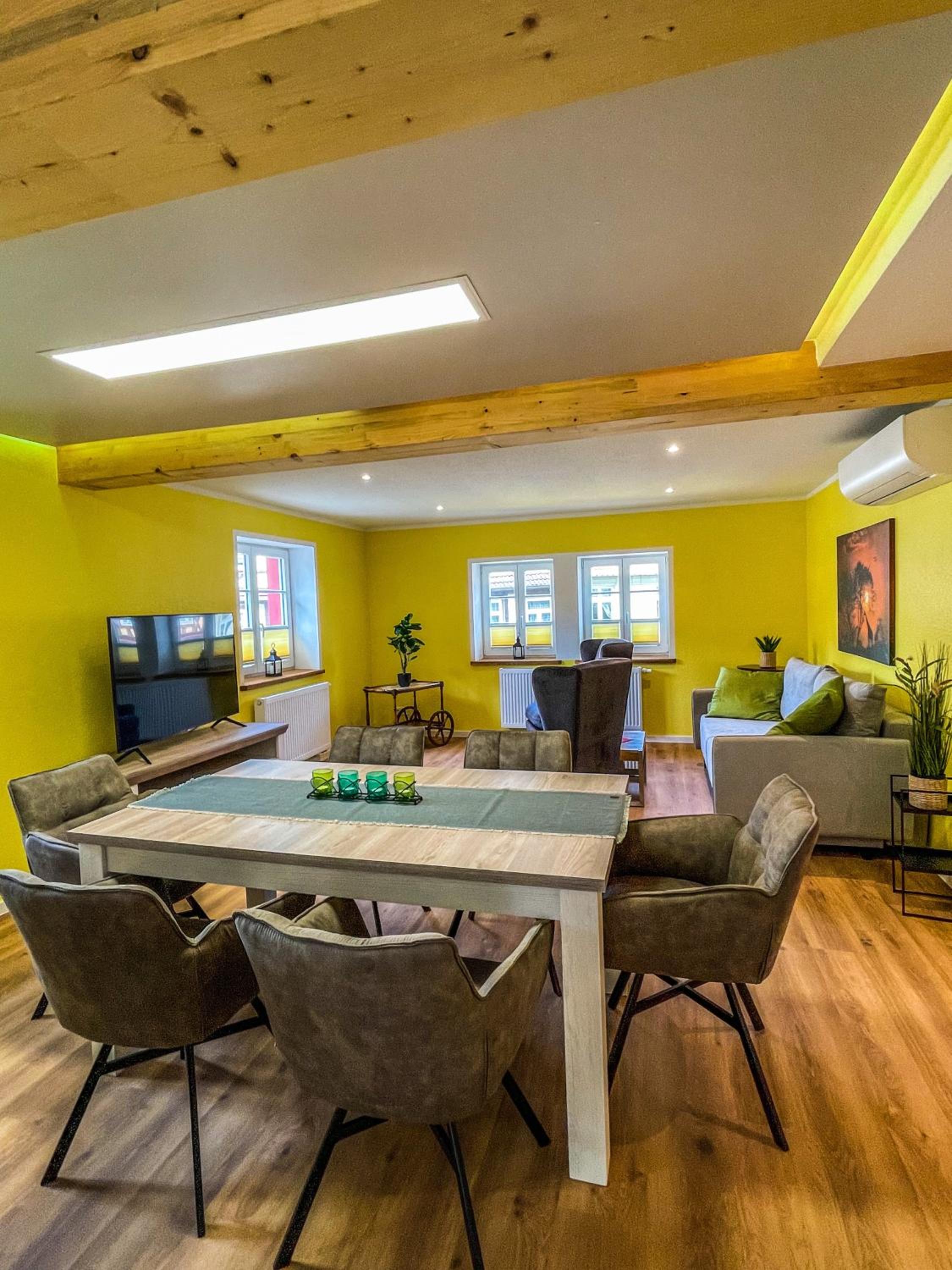 Die Möbel sind leider in die Jahre gekommen, und das Sofa etwas klein. Ein zusätzlicher Sessel wäre schön gewesen um es gemütlich zu haben.