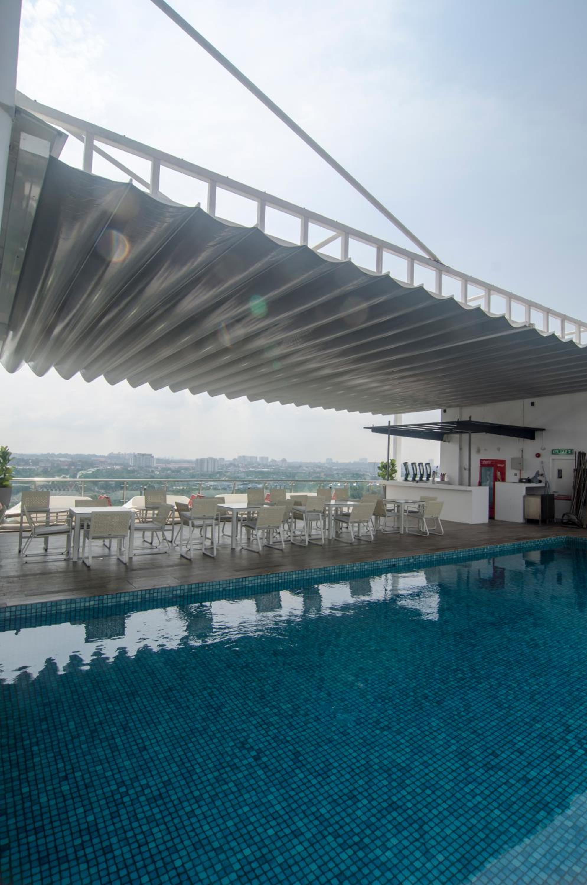 The small swimming pool looks greenish as if full of algae BUT it was not slippery. Guess it might be the design of the tiles used. But there were definitely full of dead flies in the pool. Pool looks unmaintained. I also do not see any attendant during my visit there. Not sure if they offer pool towel. Location was a bit off. Need to drive or take a cab to big shopping mall.