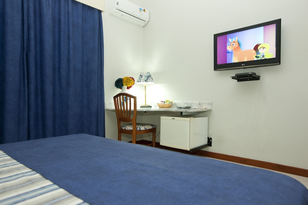 Hotel deixa a desejar. Primeiro que quando eu cheguei, não localizaram a minha reserva, tive que estacionar na rua para minha esposa fazer a confirmação. Em seguida a recepcionista saiu correndo atrás da gente para informar que havia localizado. Falando da estadia, a forração da cama toda amassada; o cobertor com cheiro de mofo, certamente não é lavado há tempos; o sabonete e o shampoo estão no mesmo recipiente, isso é péssimo;descemos para tomar o café da manhã às 8h45, alguns itens já tinha acabado e não foram repostos, pudim de leite por exemplo. Considerando que o café vai até às 10h, deveria ter sido reposto. Ovos mexidos a mesma coisa, se o pedido não tivesse sido feito ao pessoal da copa, também não seria reposto. As mesas do café são muito próximas umas das outras, as pessoas se esbarram para se movimentar. Acredito que são oportunidades que o hotel deveria considerar e rever. As imagens são bem diferentes do que é entregue.