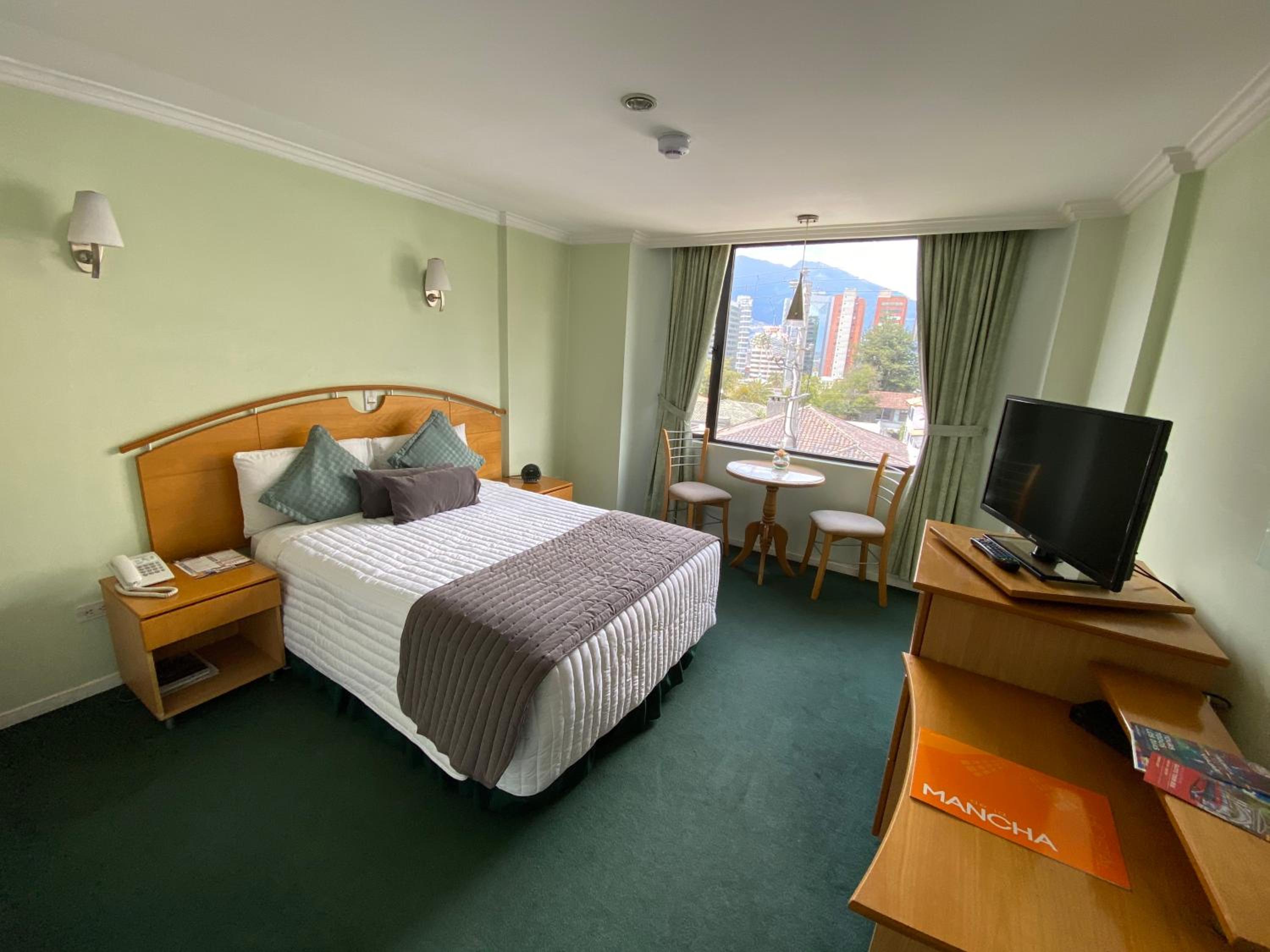 Experience the charm of Quito at Hostal de La Mancha, just a short walk from the picturesque Bellavista Metropolitan Park. Relax in rooms adorned with pink hues and city views, complete with cozy seating areas. Start your day with a tasty American breakfast and unwind at the on-site bar. Don't forget to explore the nearby Botanical Garden and take advantage of the convenient laundry service. Book your stay now and make the most of your time in Quito!