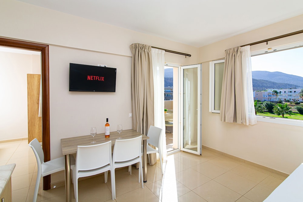 De appartementen zijn wat gedateerd of toch de leefruimte en vooral de badkamer. Maar alles wat je nodig hebt is er en het is proper. Wel hebben we afwasmiddel gekocht en een keukenhanddoek gevraagd want dat is niet standaard voorzien in de kitchenette. Prachtig zwembad, leuke resto en de ligging en uitzicht zijn subliem.