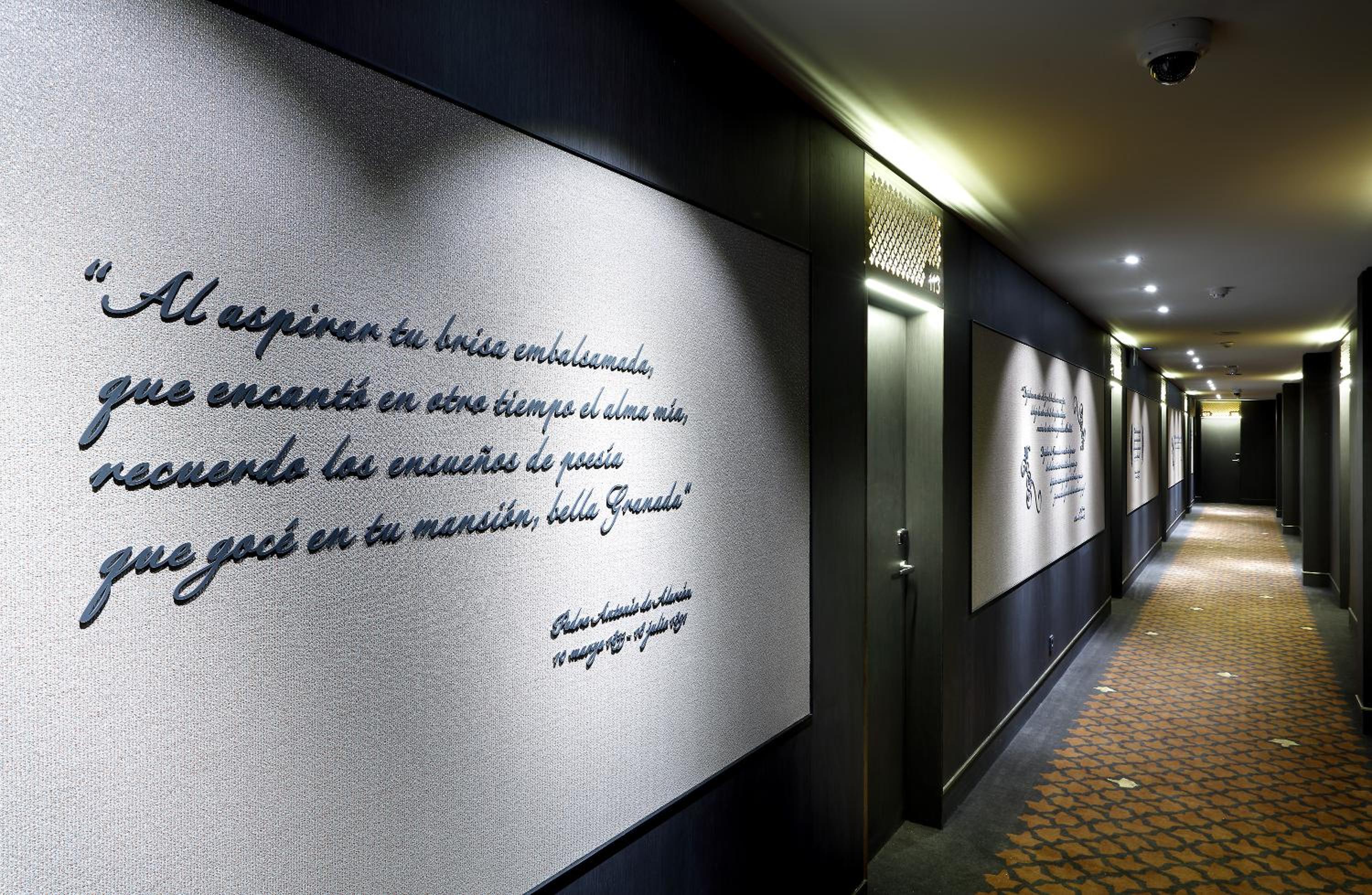 Explore our library showcasing first editions of Washington Irving's books and enjoy stunning views of the Alhambra from various parts of the hotel.